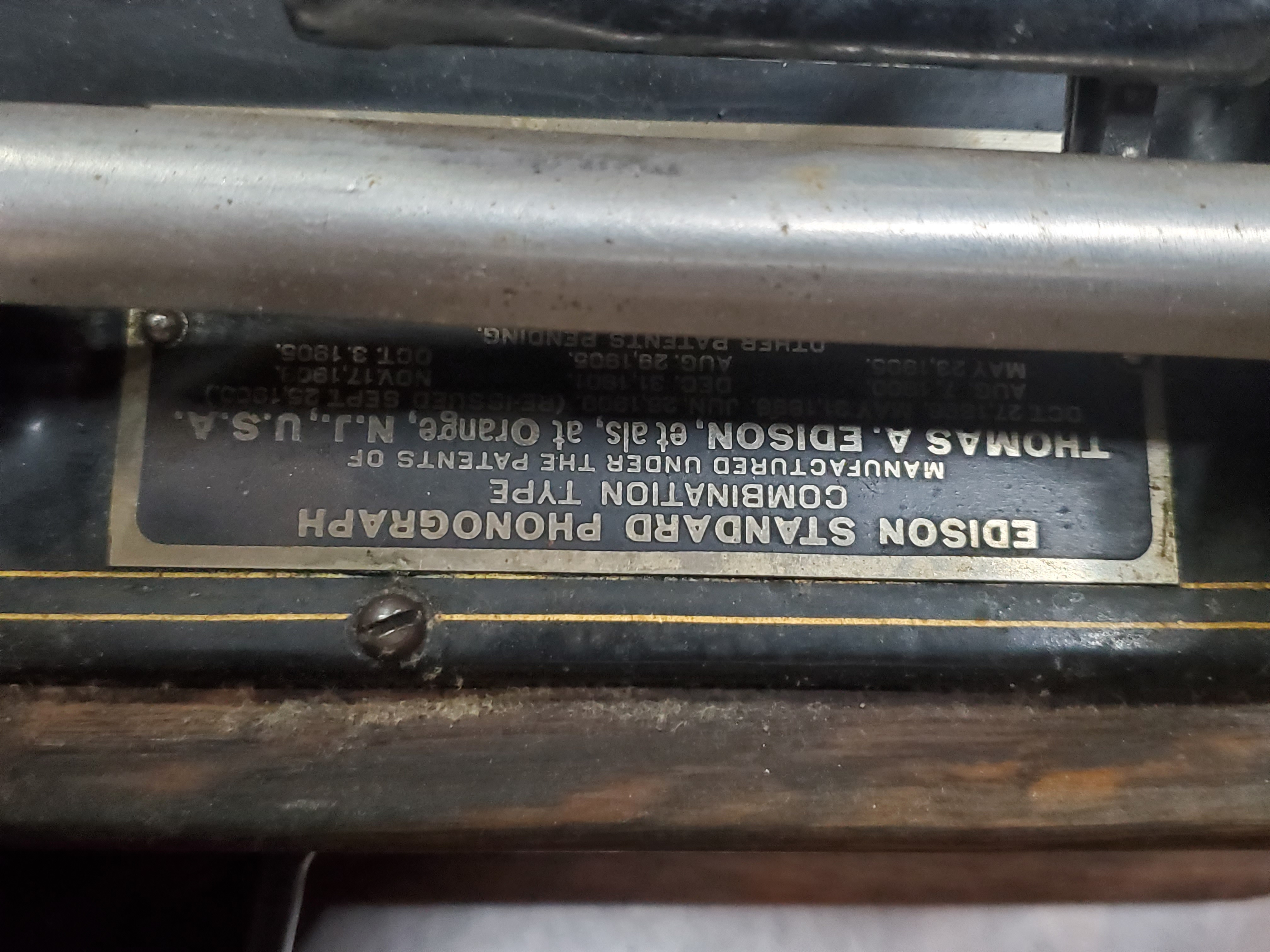 Edison was one to never waste anything…As the model D was being phased out, he used up all of the parts from previous machines on the newer models. In your case, he had the data plates crossed out as on your machine to use them for later models such as this F model…nice novelty with a good story…Congrats!