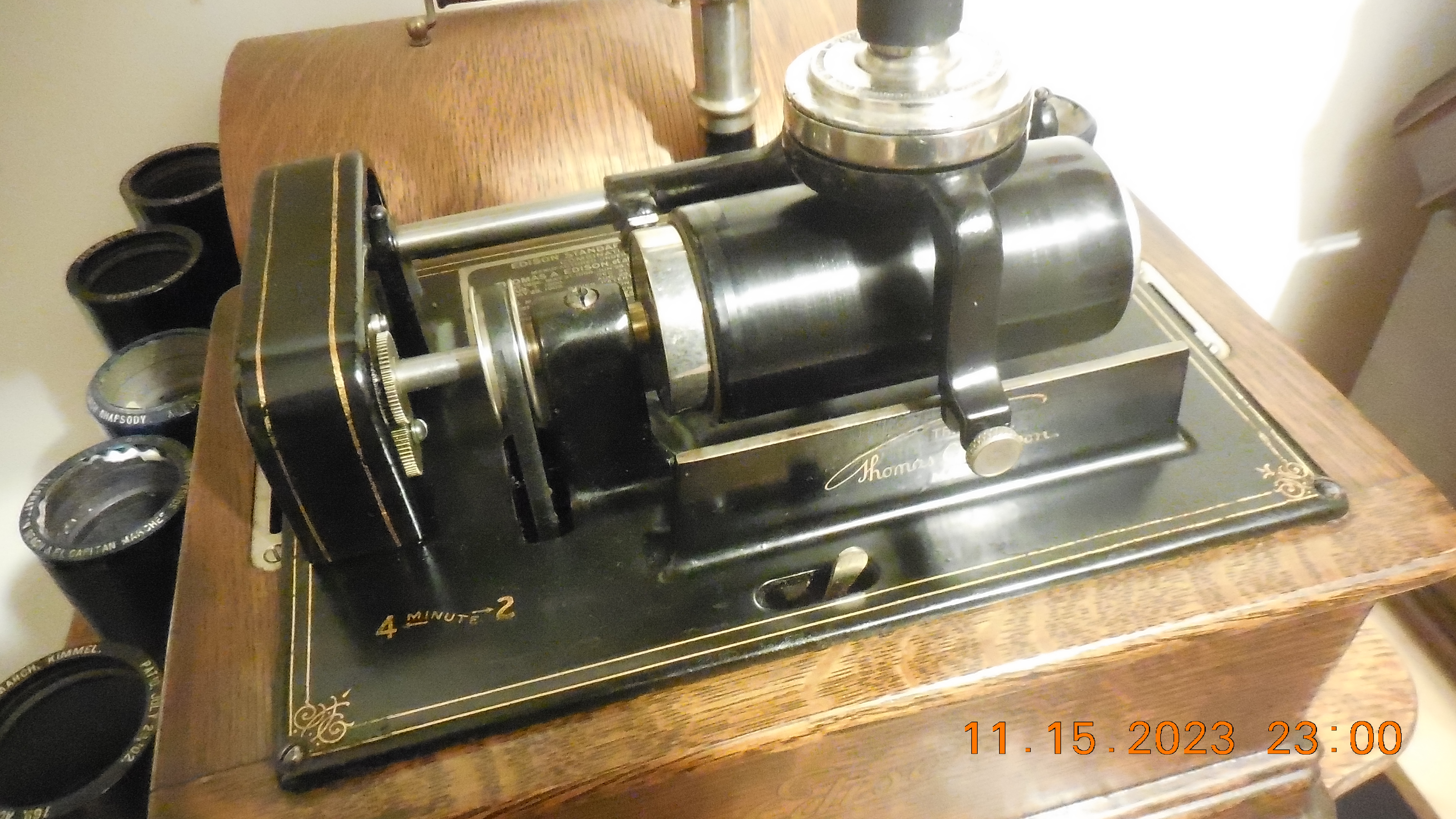 My Edison has the horizonal carriage with a k reproducer and cygnet horn. The mandrel was missing. And I had an E in a poor cabinet, with the spare parts. Only to realize the E is 4 minute and F is 2/4 minutes. I haven't begun swapping parts to see if it worksoutune wrote: Wed Nov 15, 2023 9:37 pm Hi Tim- Can you show a pic of the carriage? The "F" came with a unique, horizontal carriage and was equipped with a Model "S" reproducer and cygnet horn. I've seen a few over the years that have been converted to a slant front carriage.