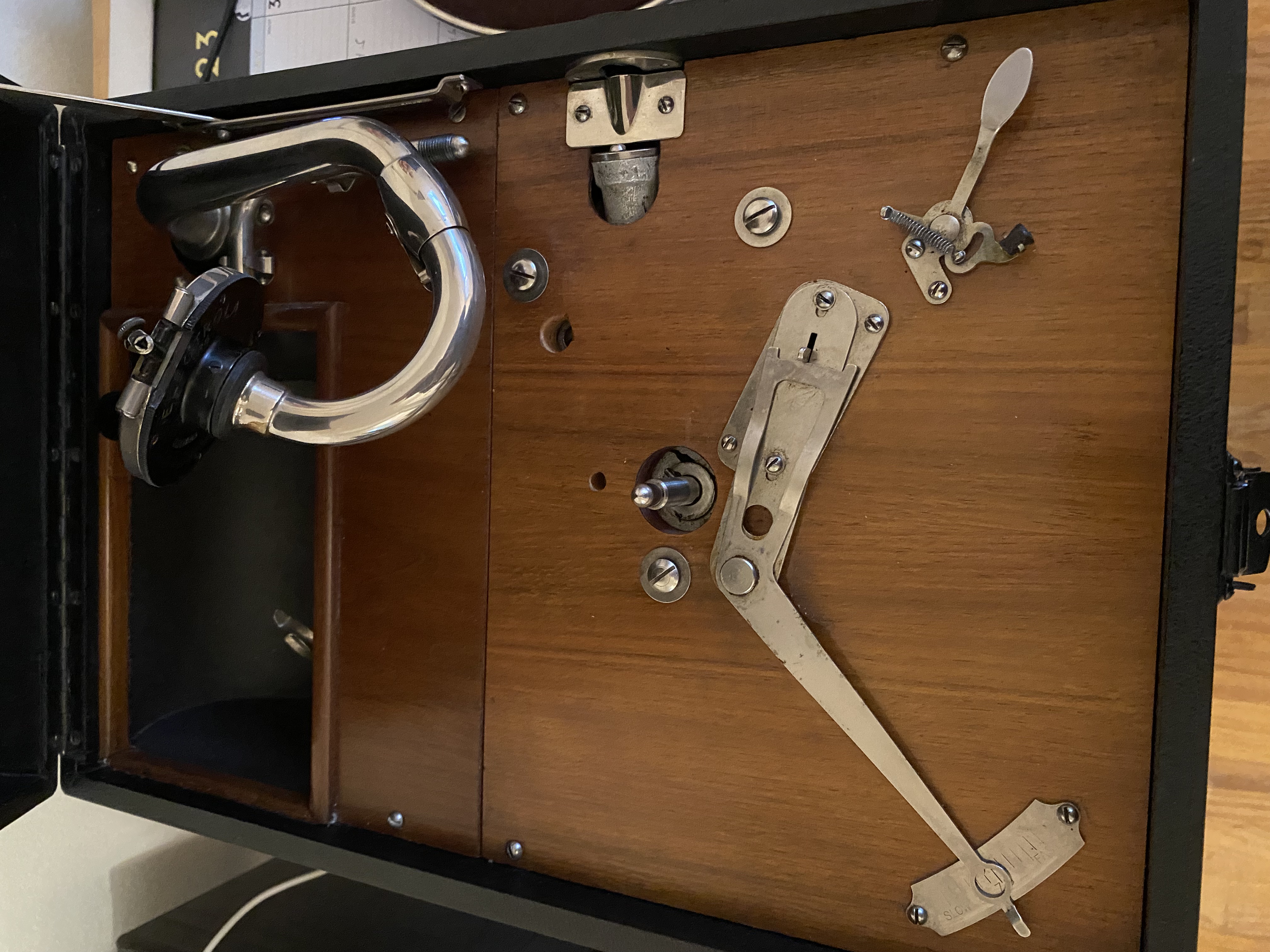 The biggest difference between Electrola 106 series and earlier 101&102 is the fact that HMV seemed to have stopped supplying machines and parts to Germany by then (was it because of the import tariffs by Nazi Germany?) and the 106 was all German design utilizing various surplus HMV parts. Some of the early side winding 106 still had HMV motors, later ones German made ones. All the front wind U&UP had the beautiful Dual-motors from the start. Most of the metal parts were manufactured by Brandenburgische Metallwarenfabrik after they run out of UK made parts and I believe the wide bore 4A was made by Electrola’s sister company Lindström. My 1937 106UP still has English made Pakawa handle parts. Interesting also that the 4A:s I have still sport pliable and usable orange rubber seels vs totally hardened HMV ones.