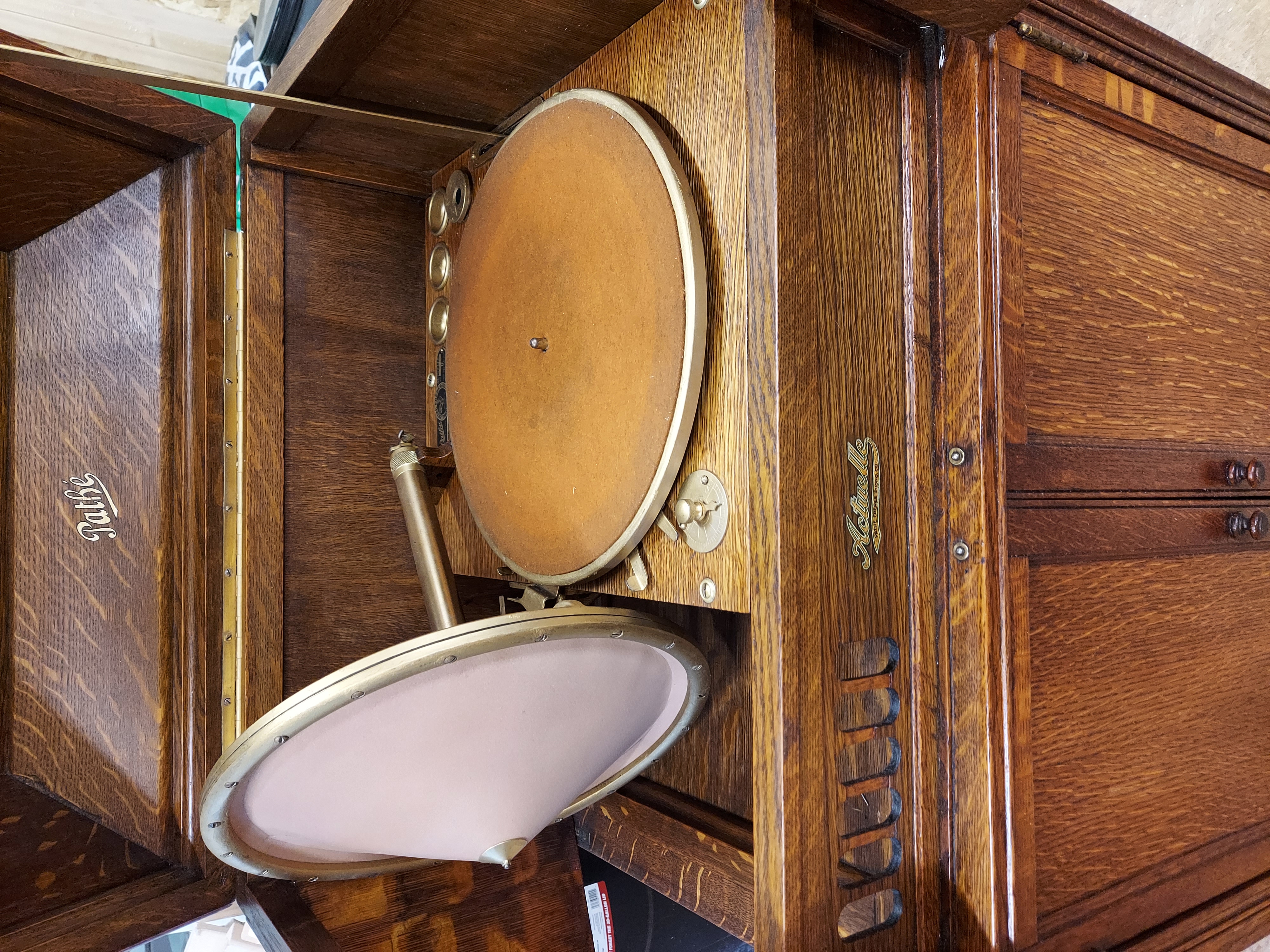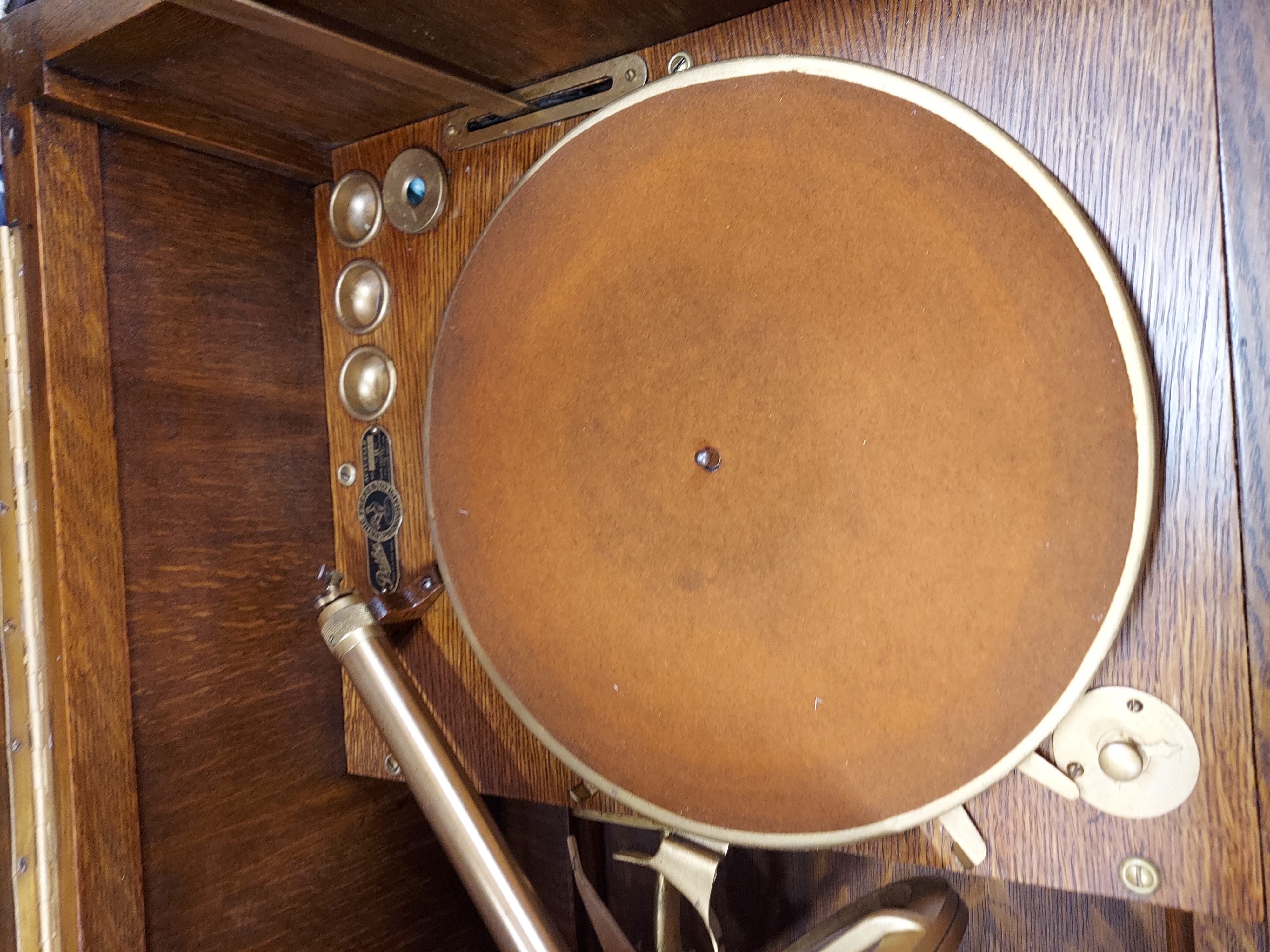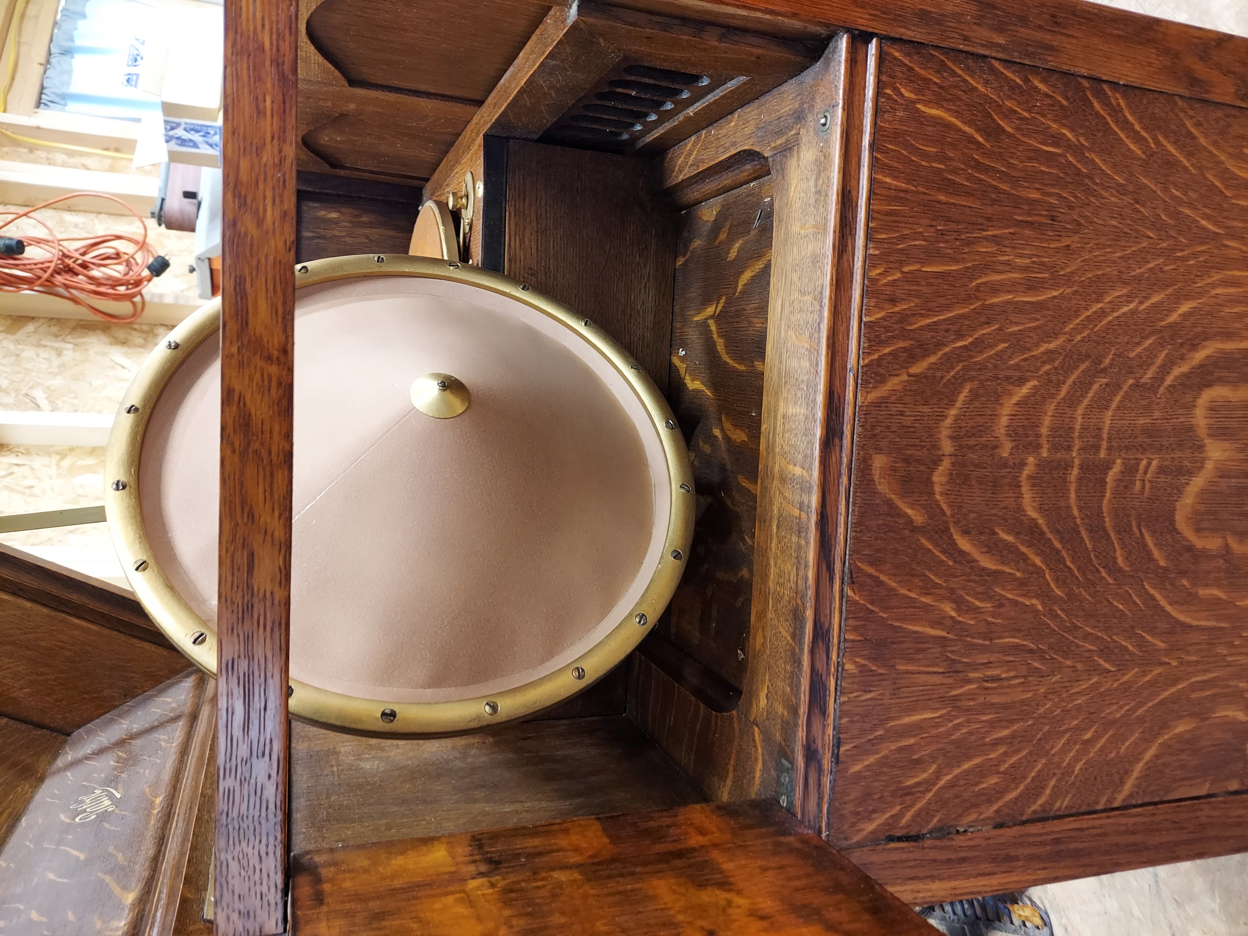 It's time for someone else to enjoy this lovely Actuelle. It has a brand new cone for excellent sound. It is solid and ready to go. The auto-stop works well. Unfortunately it does not have a stylus for Pathé or Edison records. Please let me know if you need any more information or pictures. I live in mid-Ohio (Wilmington). I'd be willing to meet you within 200 miles. I can deliver to Stanton's in April.