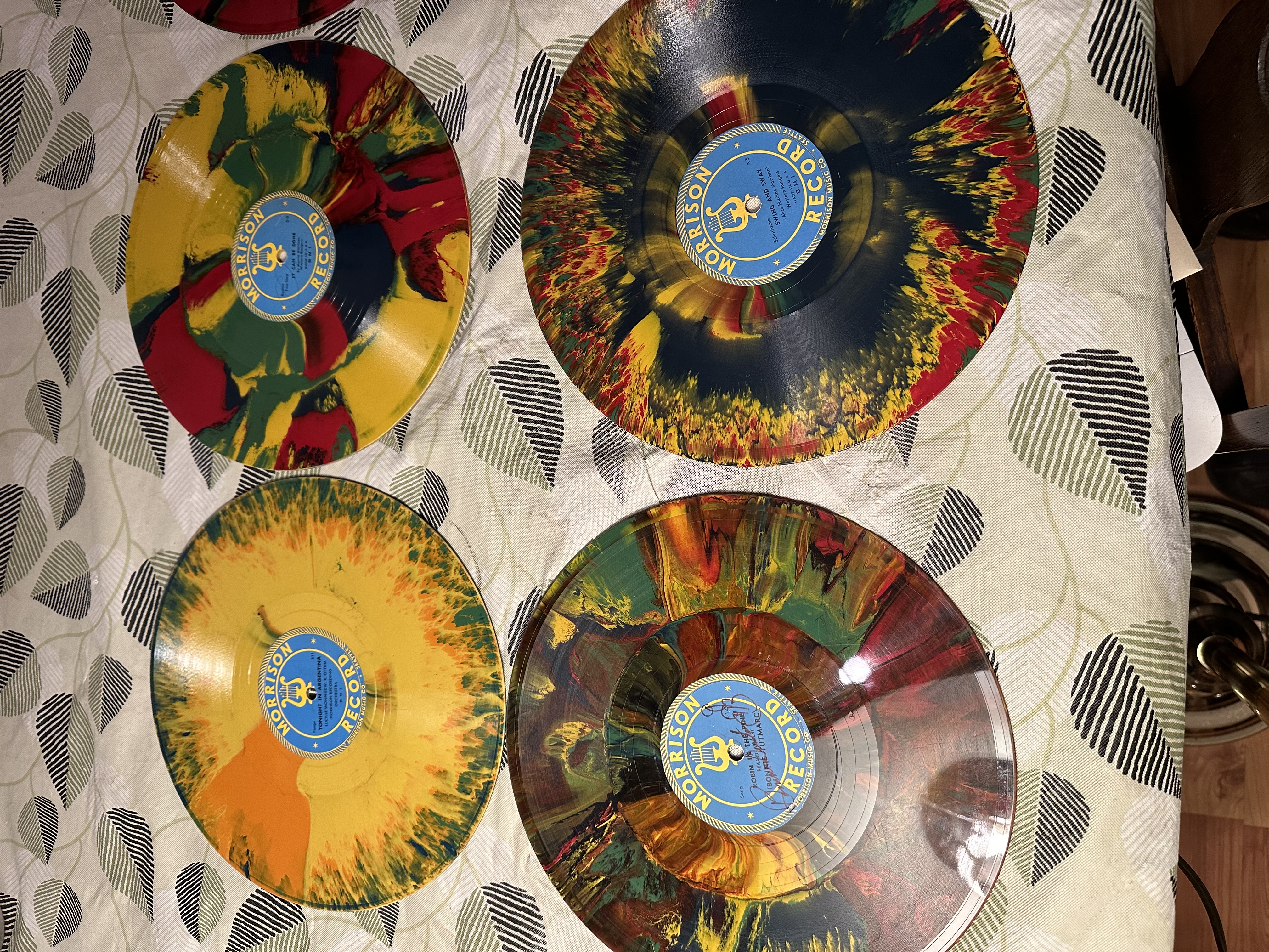 Lot 5: YUGE lot of 32 "Morrison" splatter vinyl records! West cost postwar pressings- you won't buy them to listen to- you'll buy them for display! $525.00 NEW PRICE $420 SOLD!