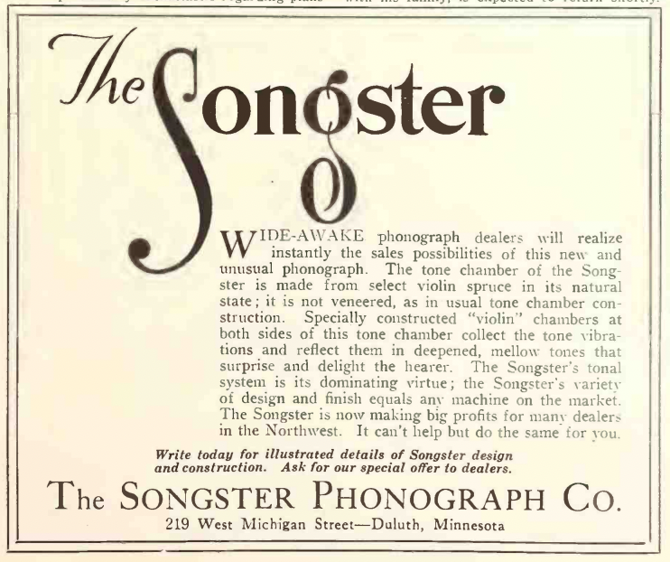 About the company ... I only found this one newspaper ad with an image and information about the Songster ...