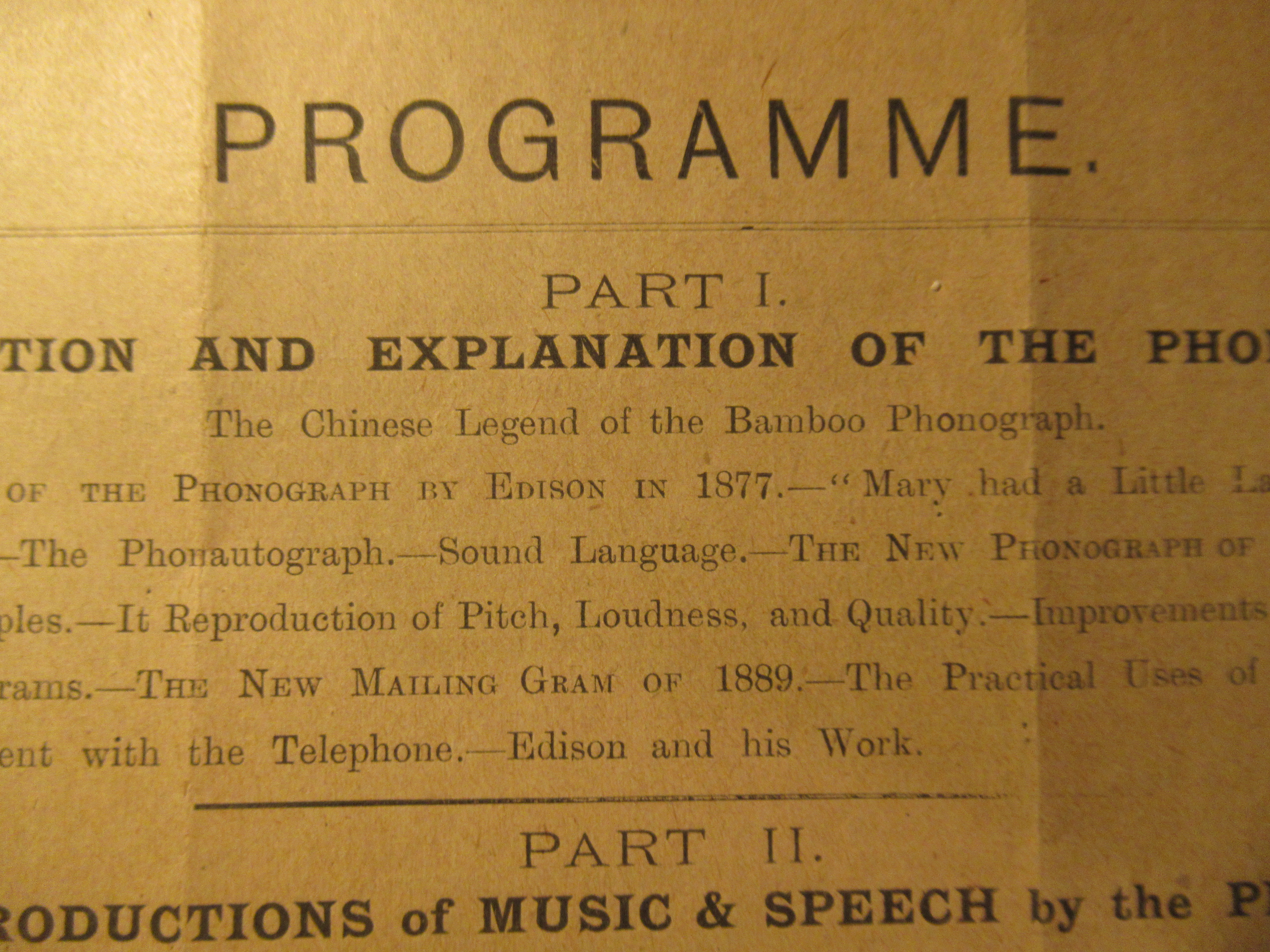 Gramtastic wrote: Mon Feb 26, 2024 1:35 pm I recently acquired this programme form December 9th 1889 for a public demonstration of "Edison's (latest) Phonograph" in the Public Hall , Warrington. While it is all very interesting, there is something I have never come across before.....The talk on how the phonograph works begins with "The Chinese Legend of the Bamboo Phonograph". I assumed Google would tell me something about an early Chinese invention which used bamboo to reproduce sound but it came up with absolutely nothing !