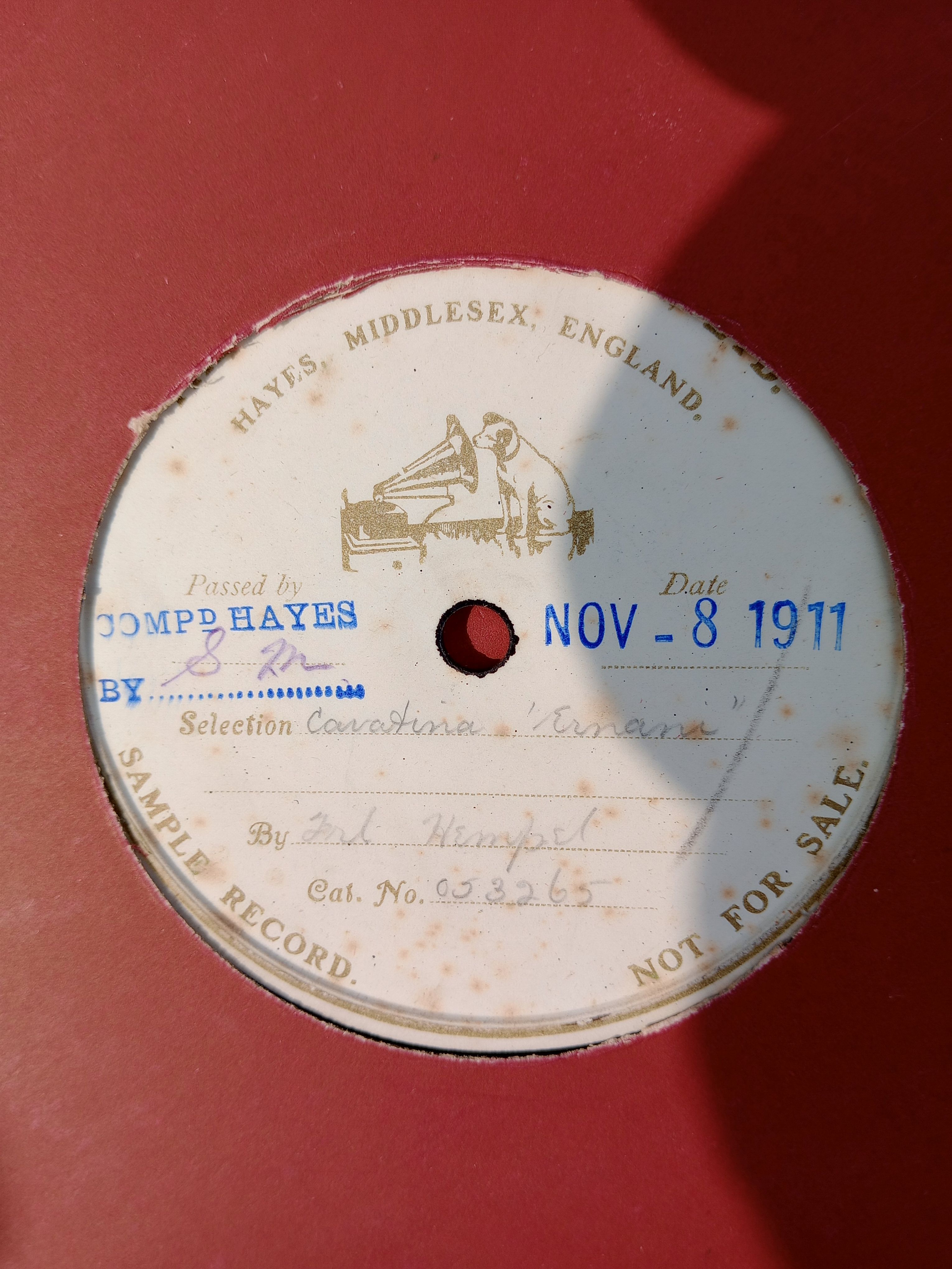 It has the usual gramophone co. cherubs on the reverse and seems to be dated just before the launch of the HMV name although nipper is featured.