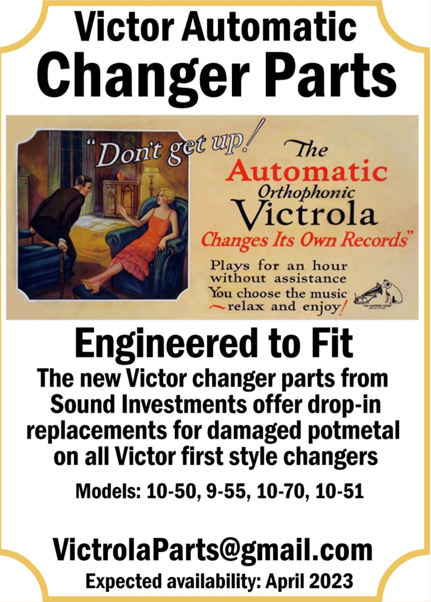 Thanks for your interest. We can supply complete potmetal elimination kits for your 10-50 changer including newly cast turntables. Send an email to [email protected] By the term “engineered to fit” we mean that these parts are fully finished and don’t require the tedious hand filing, trial fitting and painting of some of the earlier attempts. They are truly ready to install and match the quality that Victor intended.