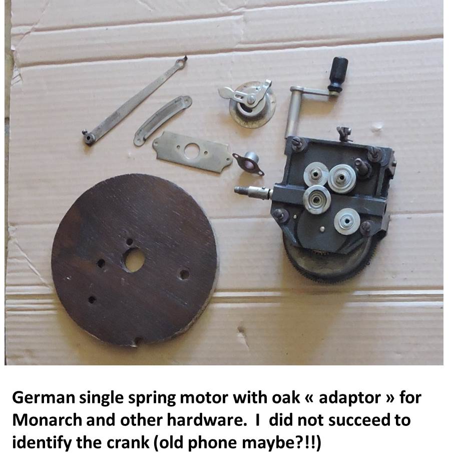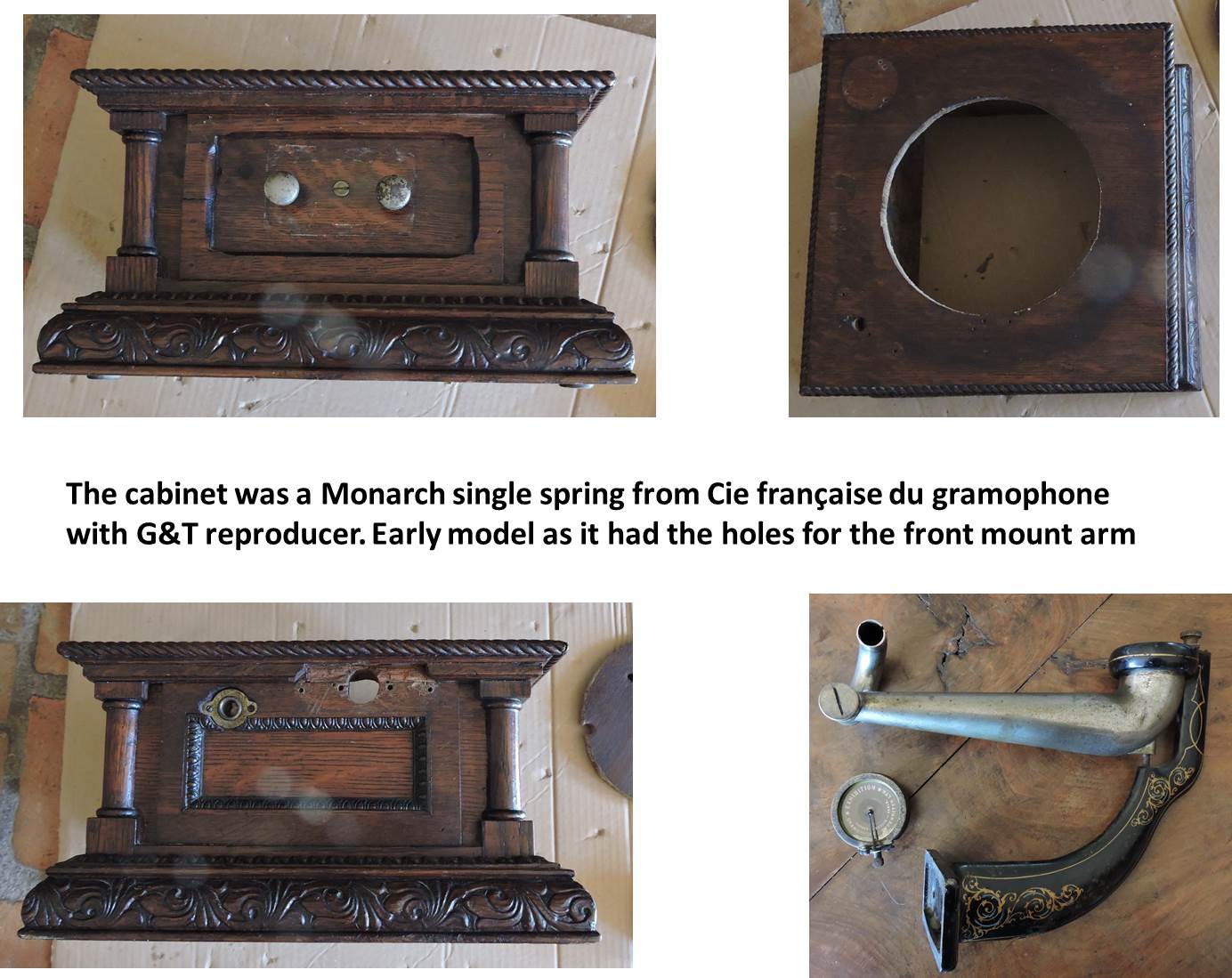 The back bracket is suitable for most earlier 10” (25cm) turntable Gramophone Company (includes associated companies) machines. The black and gold stripe finish is typical for American machines but generally only found on earlier European machines (later ones were nickelled). It has probably always been with this early base.