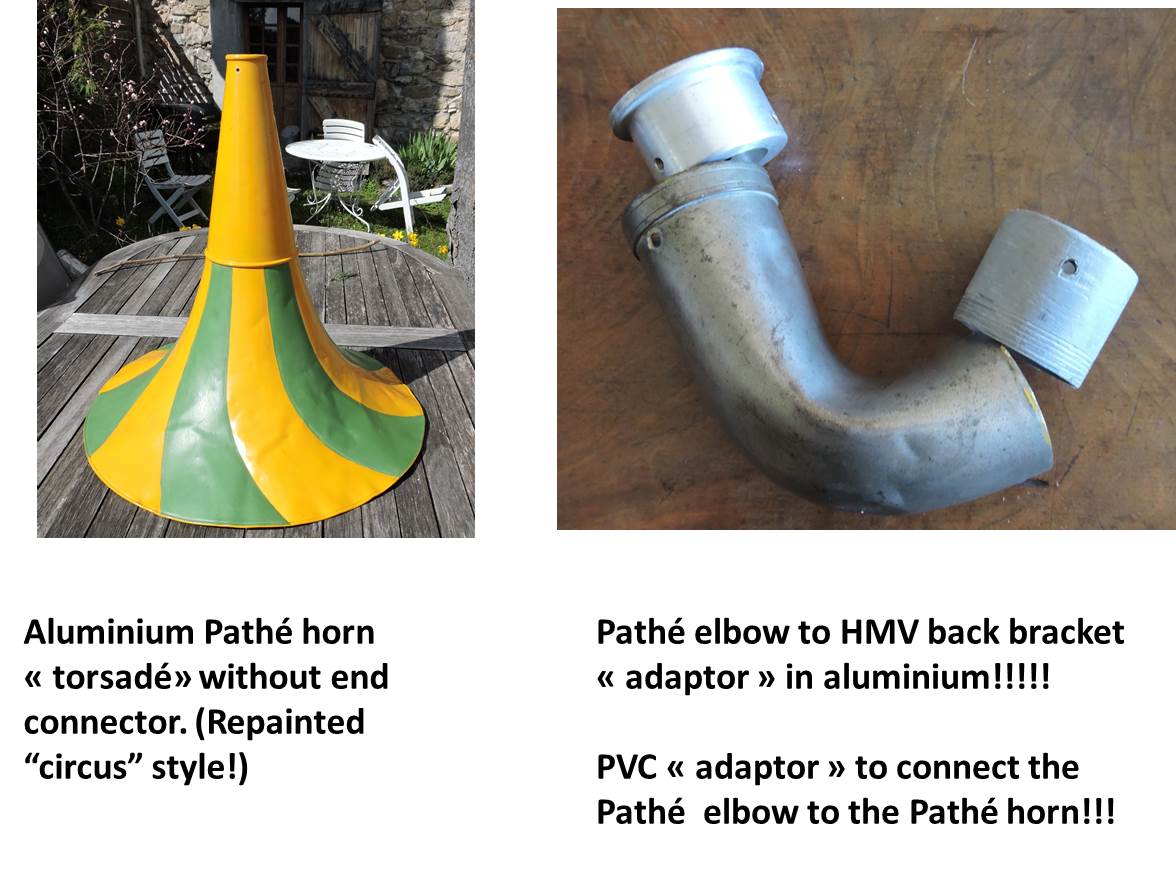 You need to strip that paint off the horn and see if you can mould the scalloped shape back. Pathé horns normally screw into the elbow.