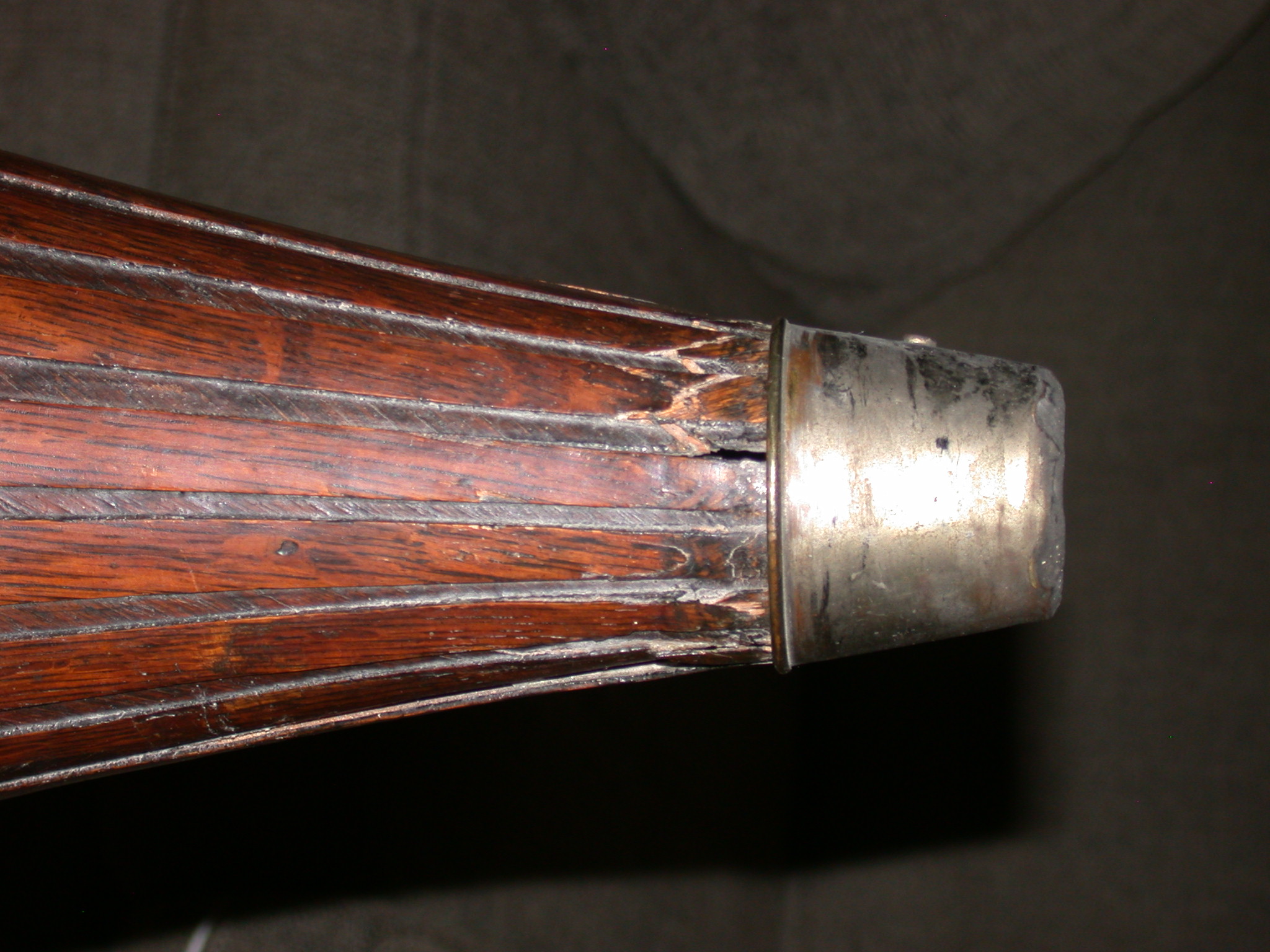 I have 2 spearpoint horns that need work on the small ends. One suffers from horn sag but doesn't seem damaged. The other is damaged by what looks like would happen if someone leaned on the horn rim and caused a partial wood fracture at the edge. Both of the metal ends do engage their elbows correctly.