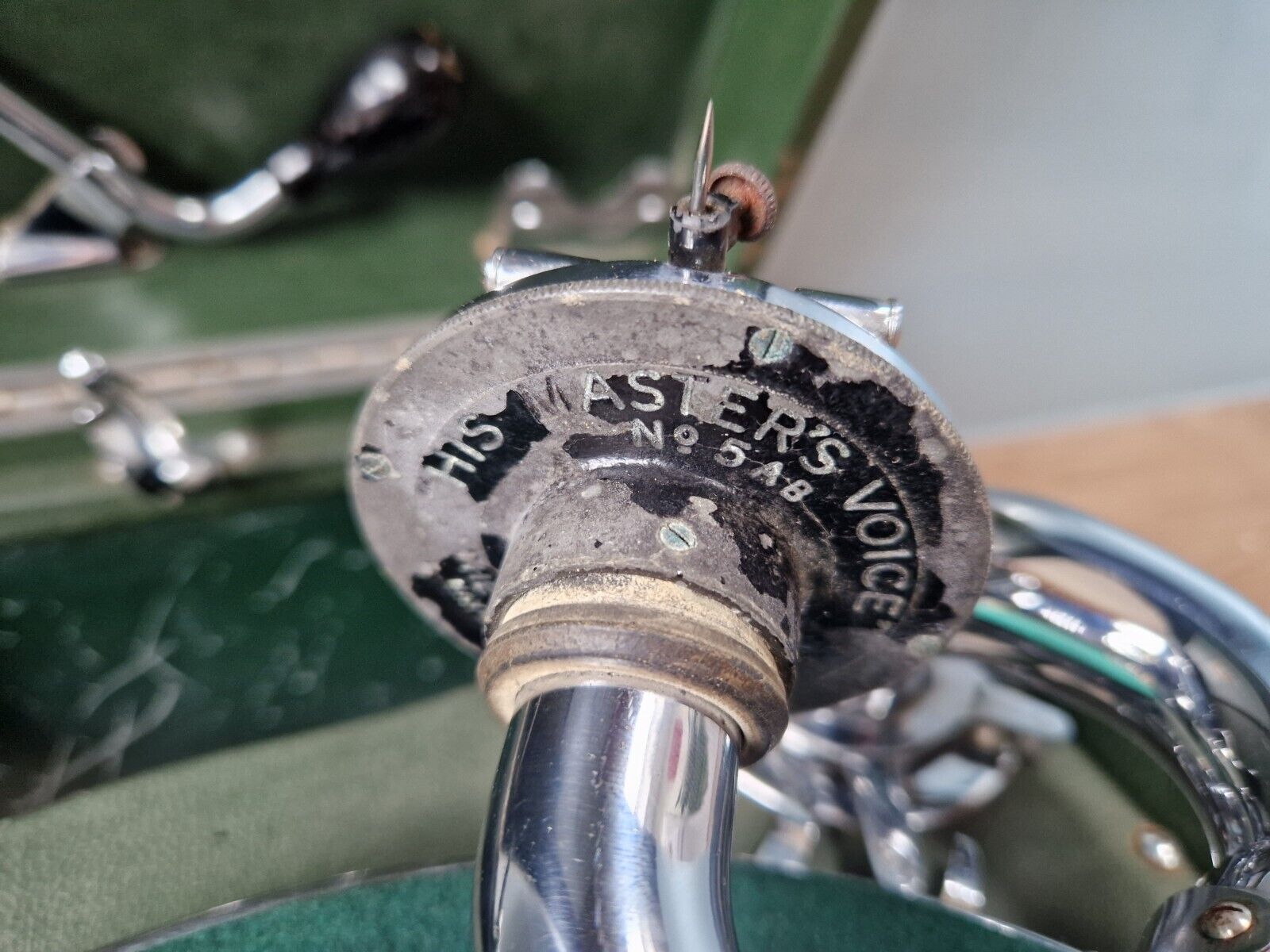 During the production life of the No.4 soundbox, HMV regressed from brass to pot metal. All 5A's and 5B's are pot metal.