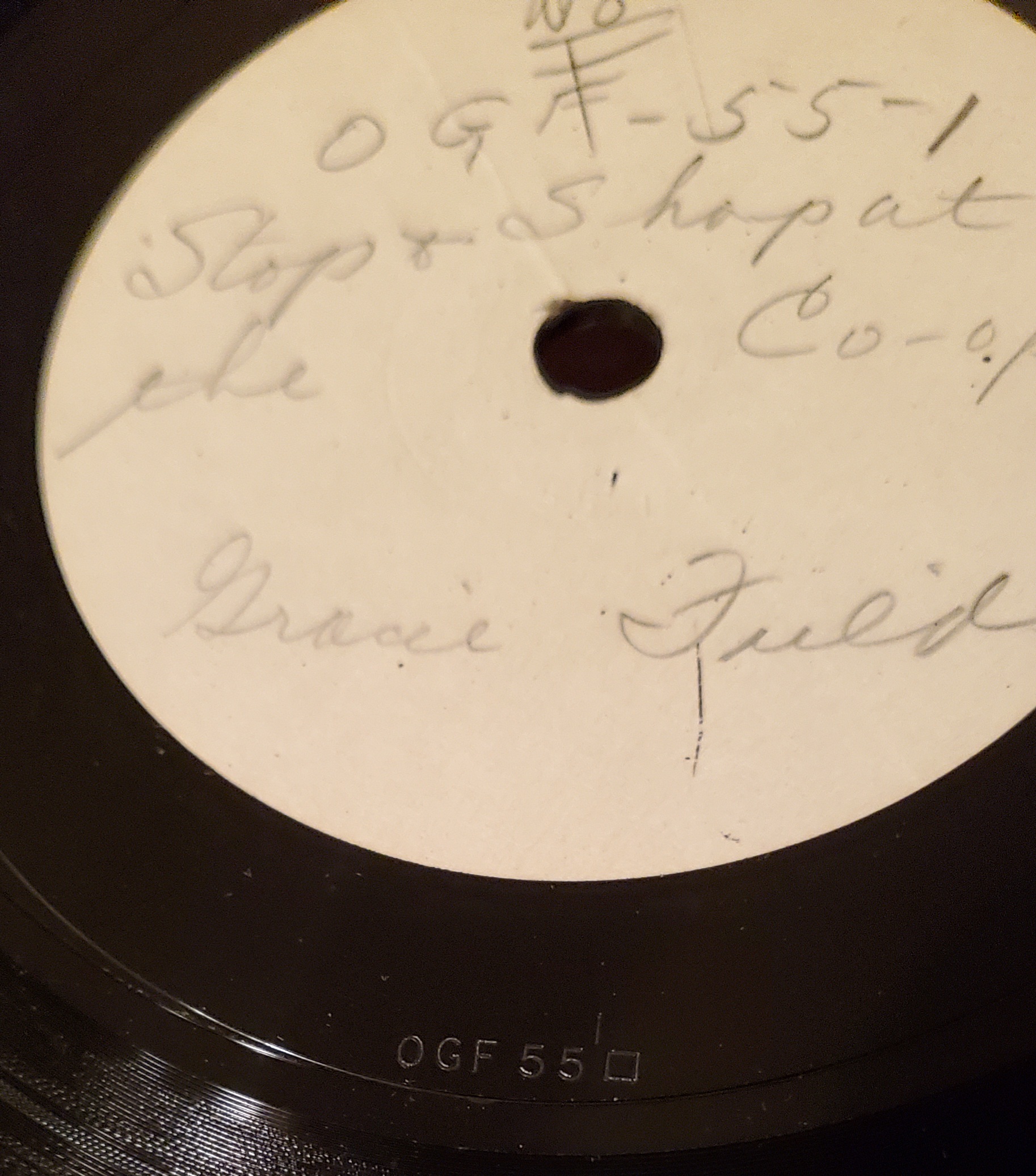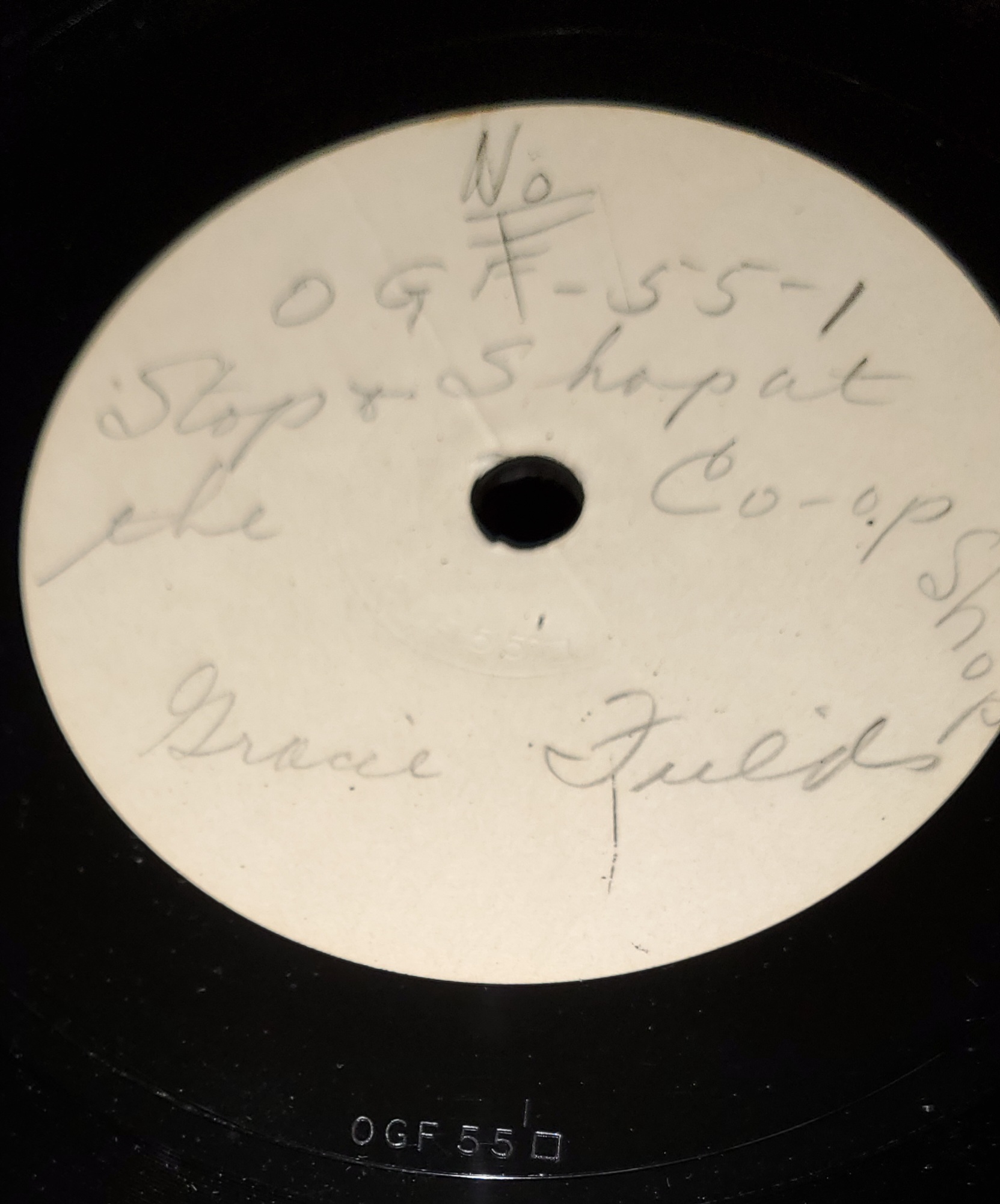 The 0GF matrix code could mean 10" Gracie Fields, and if it is no.55, it means that there are other 54 previous recordings by Gracie?