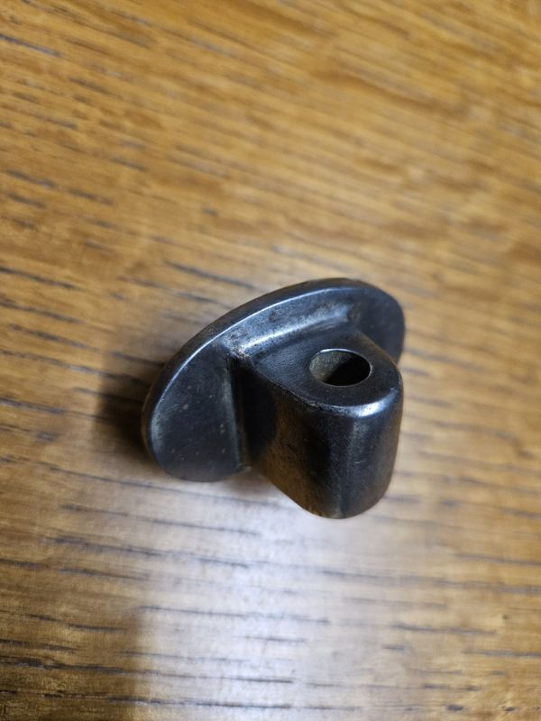 I've collected for fifty years and for forty-nine years I've had the same question. Why the hole? Also, why is that part a cast piece that's so heavy? A little stamped plate would accomplish the same thing.does anyone know what the hole in it is for?