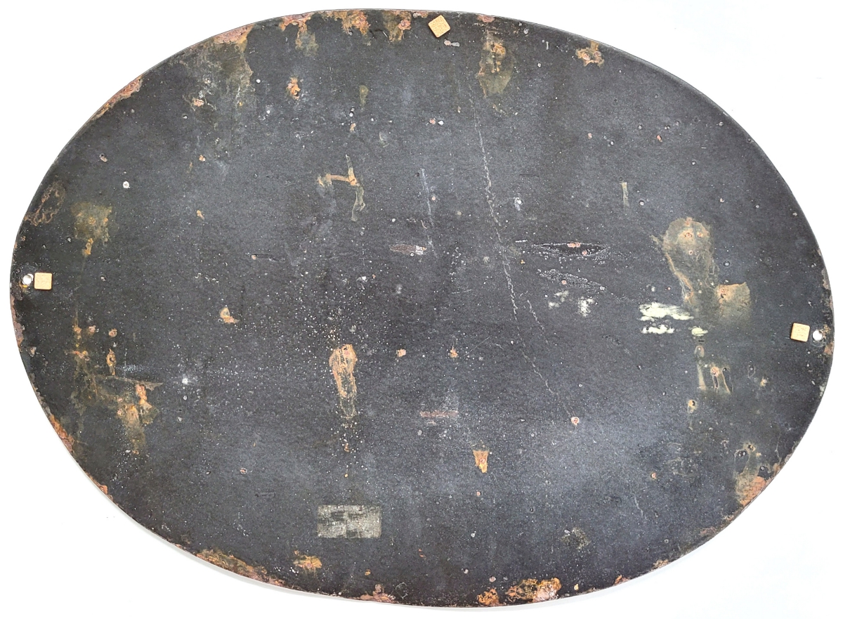 One sign is a 26"x19" oval. It is in good clean condition with a few small chips on the lower edge.