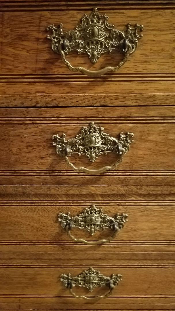 **I've included a scan of a picture I took just after purchasing the cabinet- It shows the top Home A frame with the same finish/patina as the rest of the cabinet.