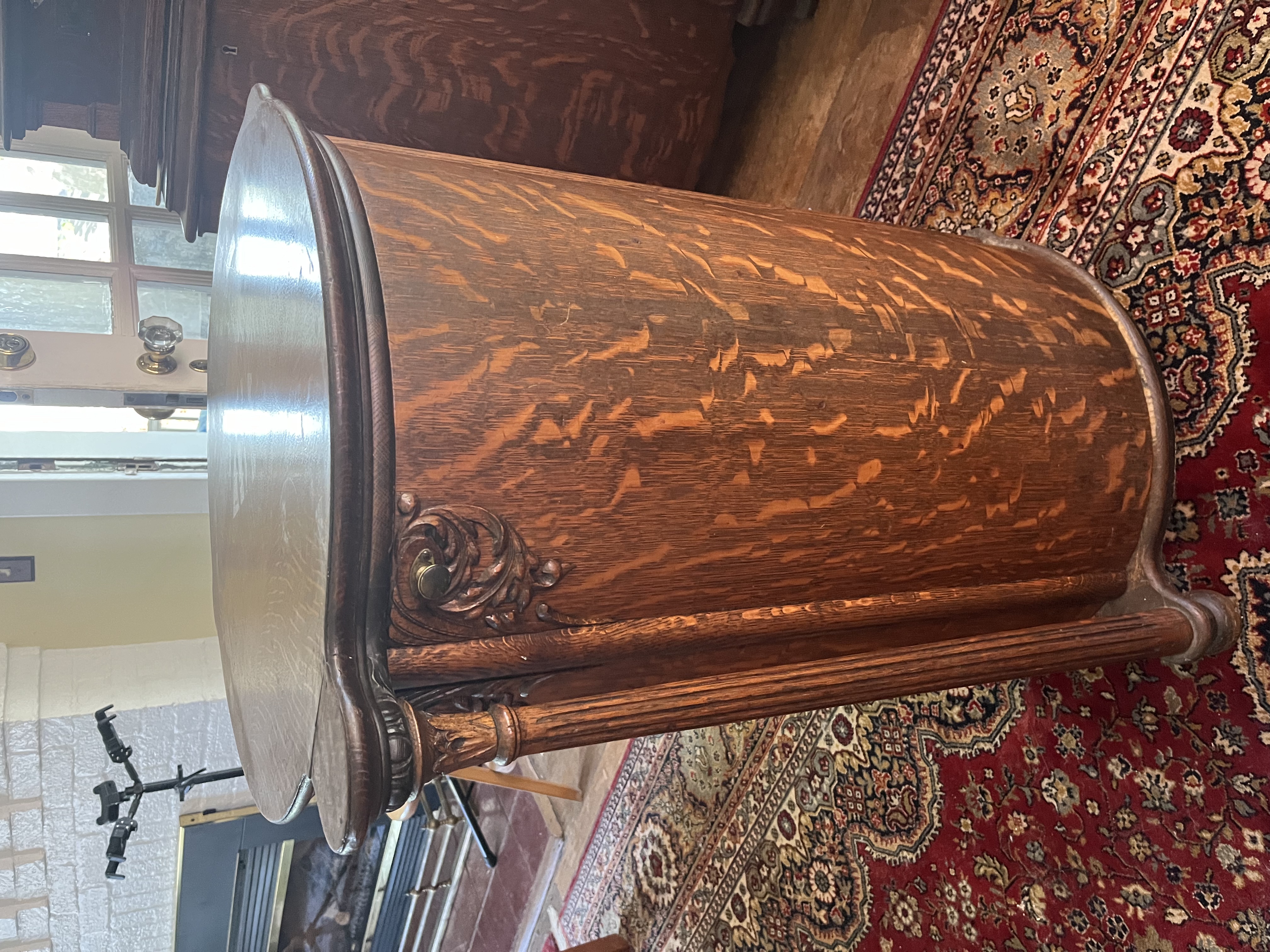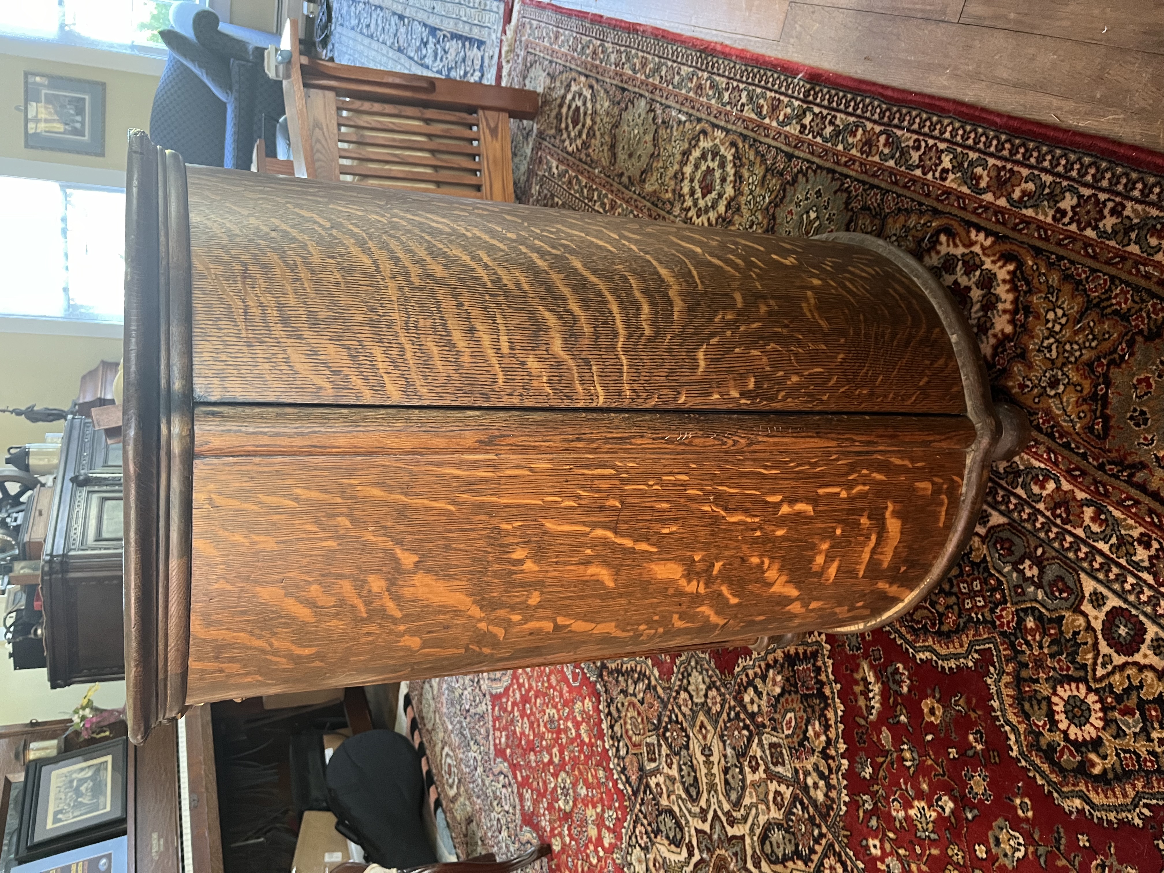 This Herzog full barrel cylinder cabinet has beautiful figured oak veneer and original finish and hardware.