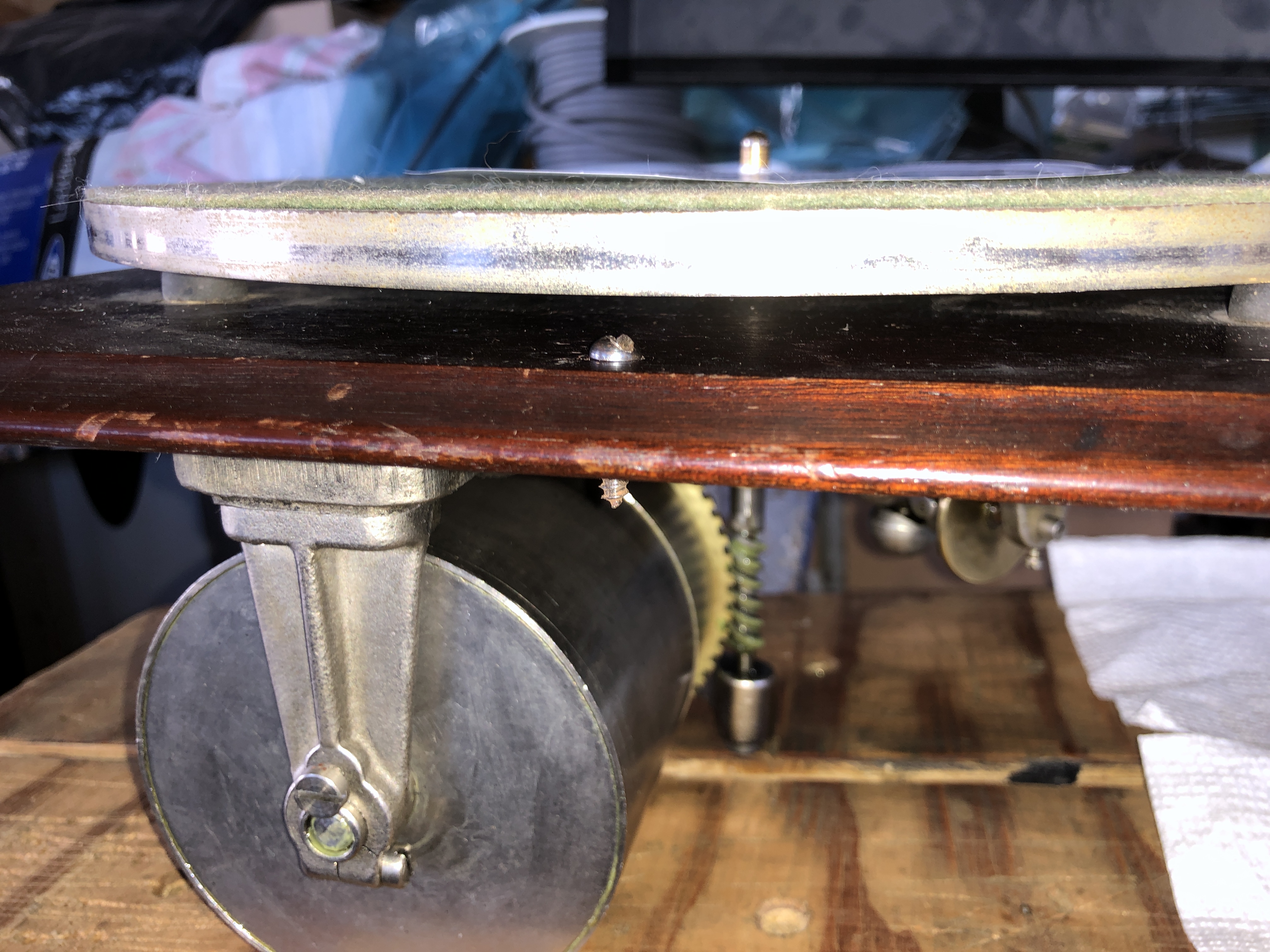 Hello, I have 1909 VV-XVI Victrola. It uses two screws just under the platter to hold the motor board to the case.