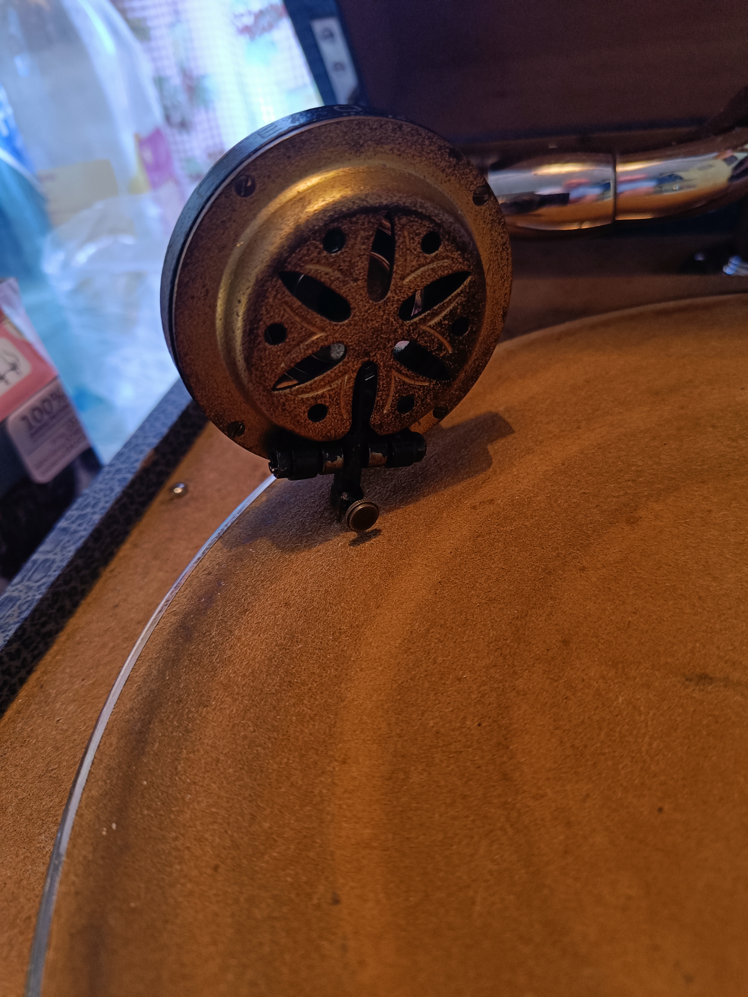 It would be interesting to see the internal horn. Speaking of which, if that round lid to the right of the tonearm is for the needle container it would be all too easy to spill needles down the horn!