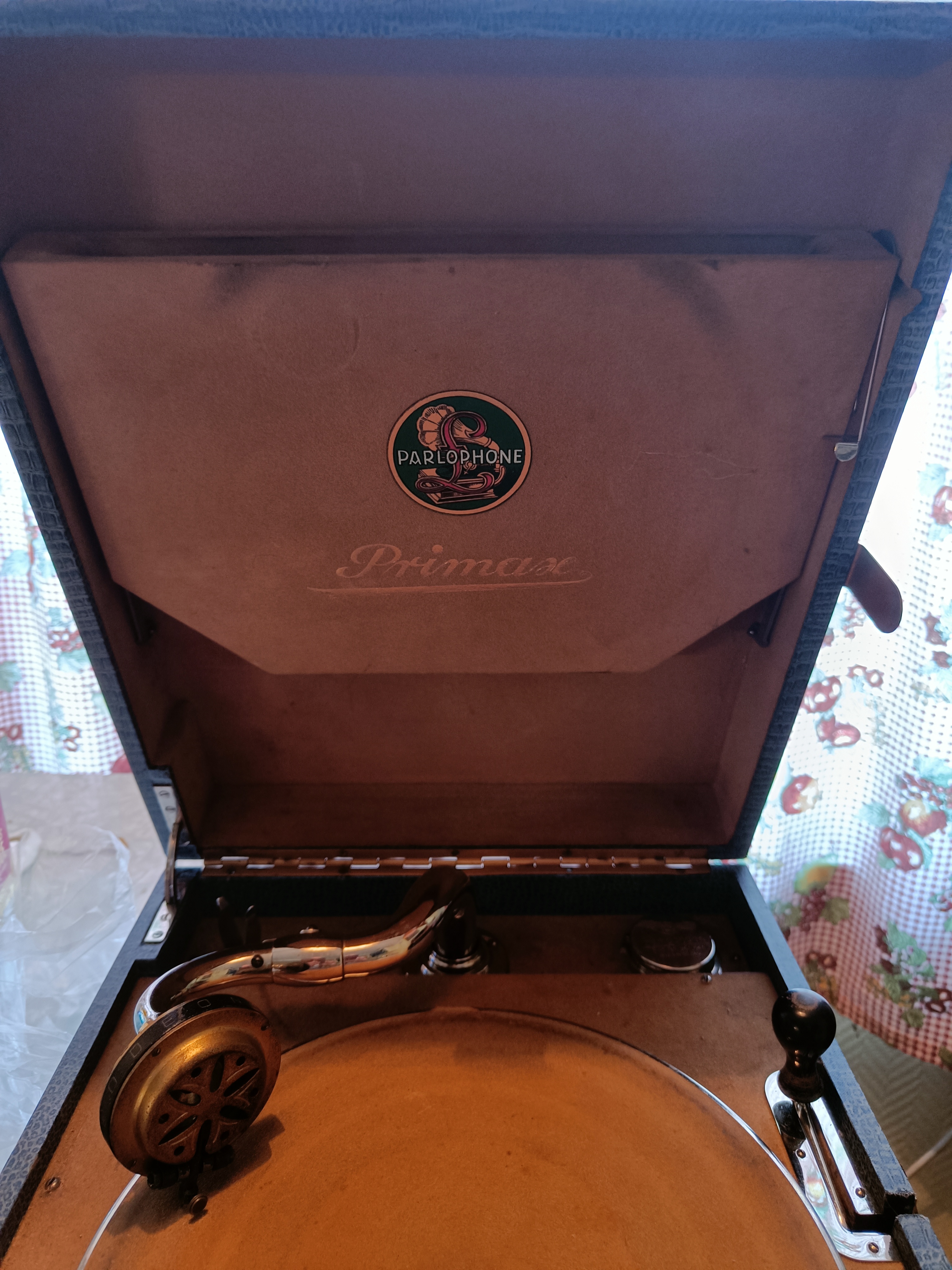 I share some photos for rererence of a Parlophone Primax portable that came my way yesterday. I really have tried to stop buying more portables, but I wanted two records that came along with it, and the seller wanted to get rid of the portable..so well, then it ended (again) in my car. I have not yet checked the motor, if it is a single or double spring, it however runs and plays well...