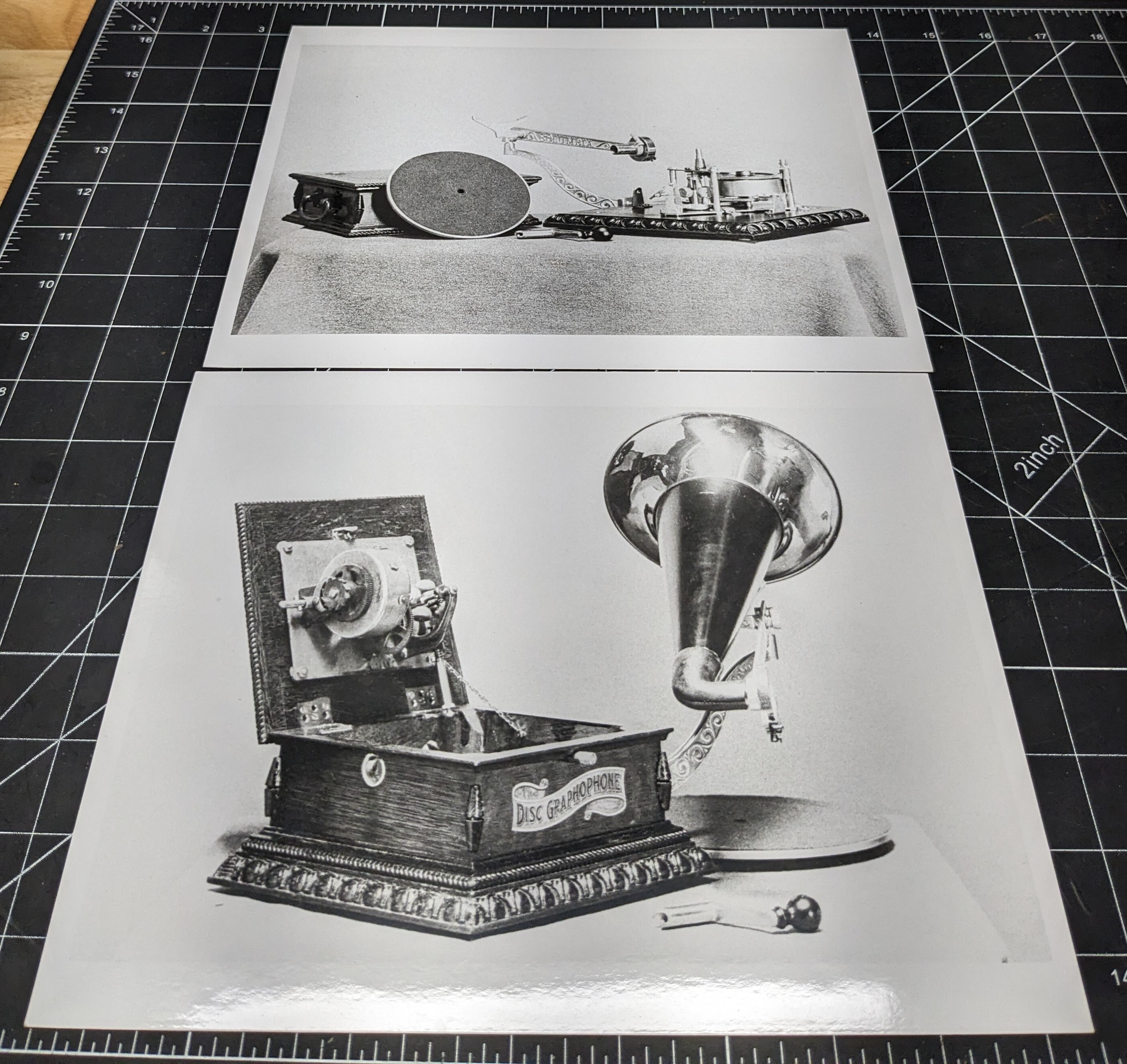 Here are two vintage photos, printed on Kodak paper, of a Columbia AJ phonograph. They look like they were for a sale catalog????