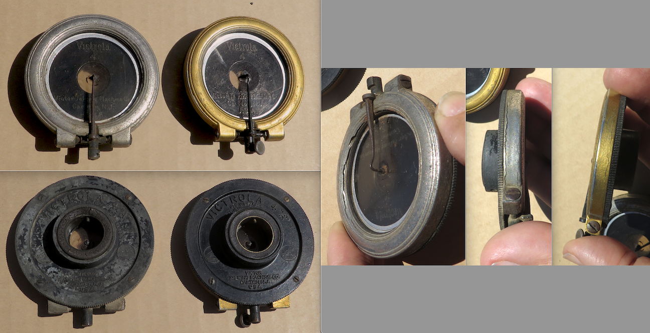 15) Two Victrola 4A Reproducers, the gold should rebuild fine, silver for parts