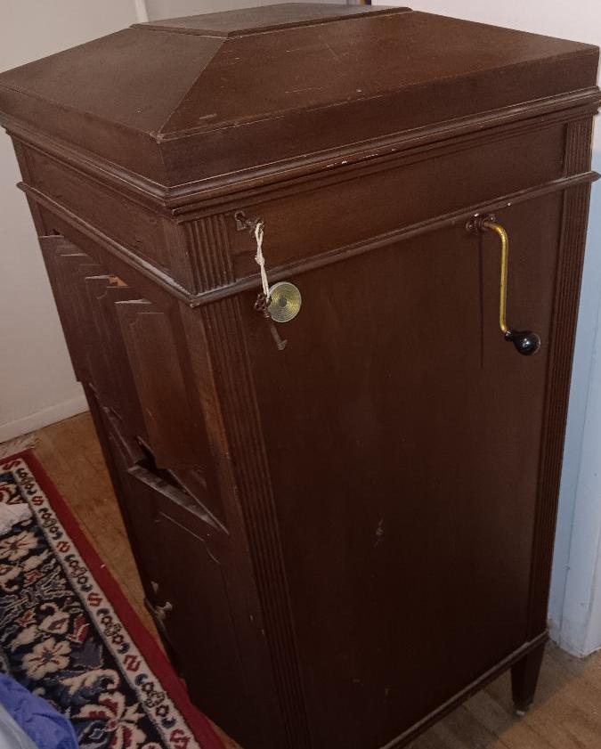 I am offering 2 Columbia upright machines for free. I am planning on relocating and will not take everything with me. If you're local and want theses phonographs for parts or whatever, come and get them. The machines are located on Staten Island, NY, close the the Verrazano bridge. They need to be carried down from a second floor with no elevator, so bring a hand truck or a helper. I have limited mobility and can only help somewhat.