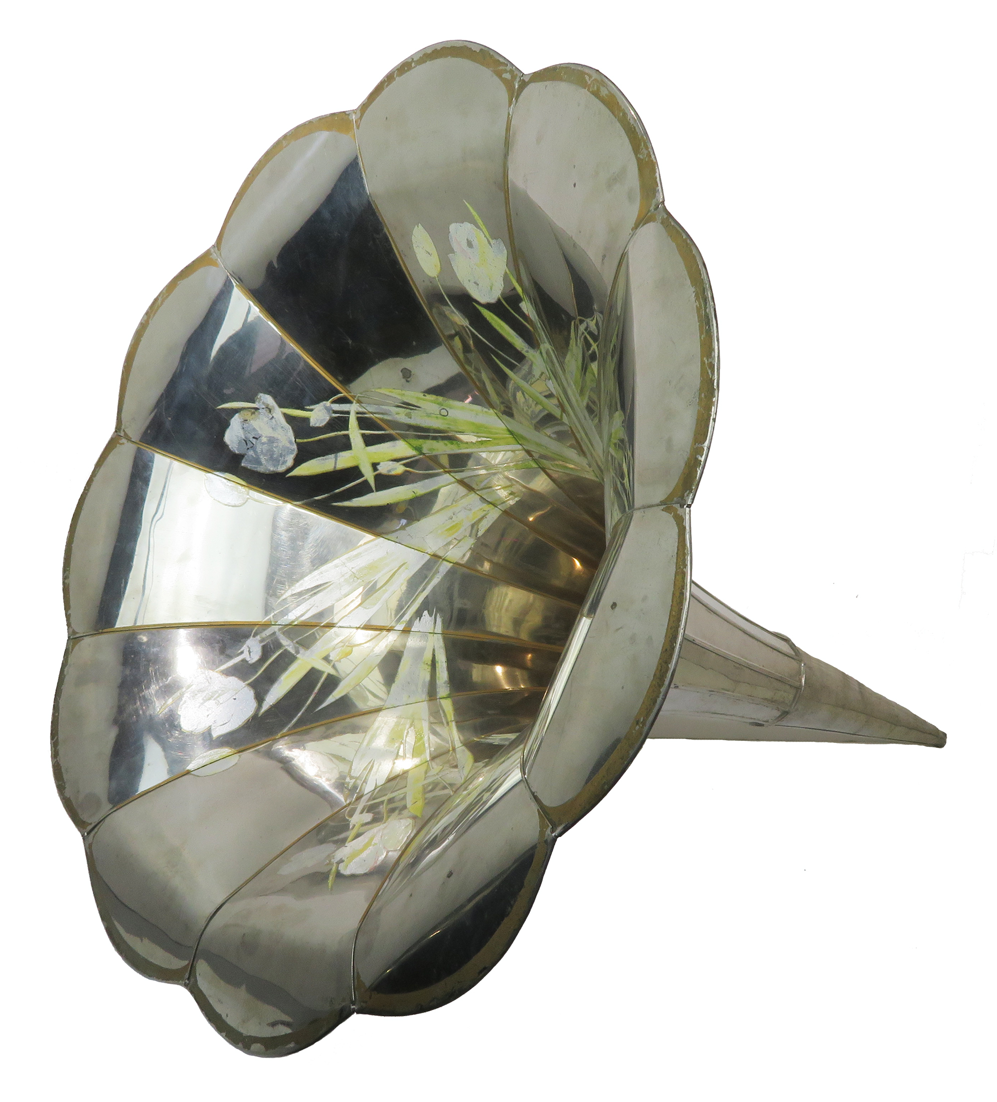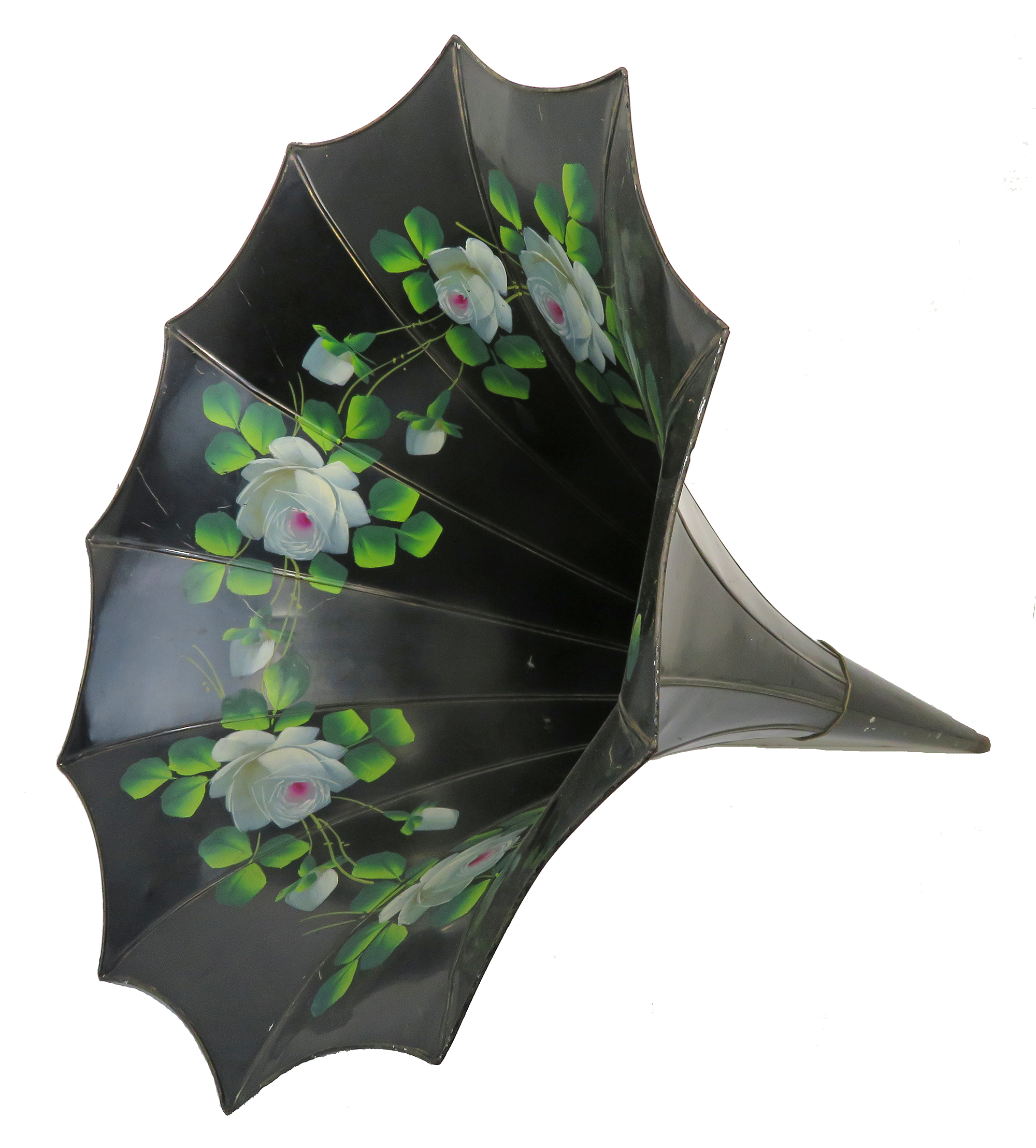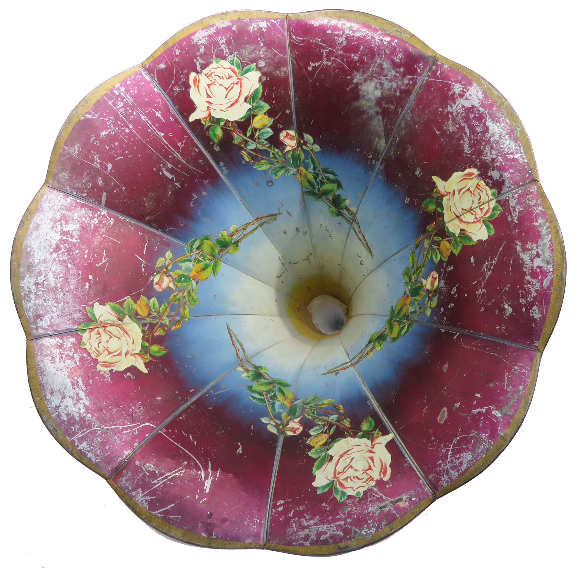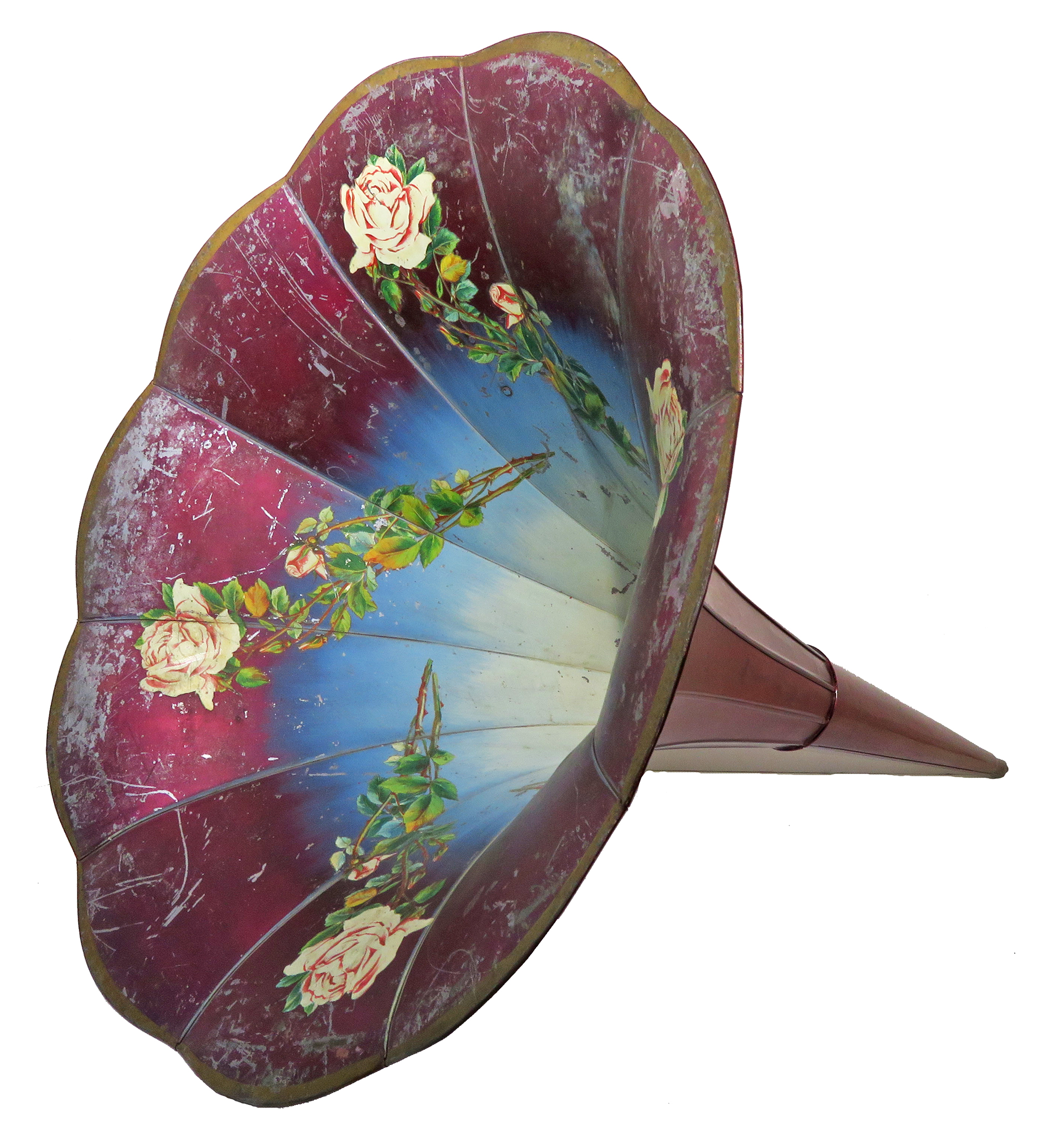 Offering a beautiful Tea Tray Company (TCT) cylinder phonograph horn. The horn measures 31” high x 22” wide. This horn is in magnificent original condition with no dents or dings, just less than normal wear and tear.