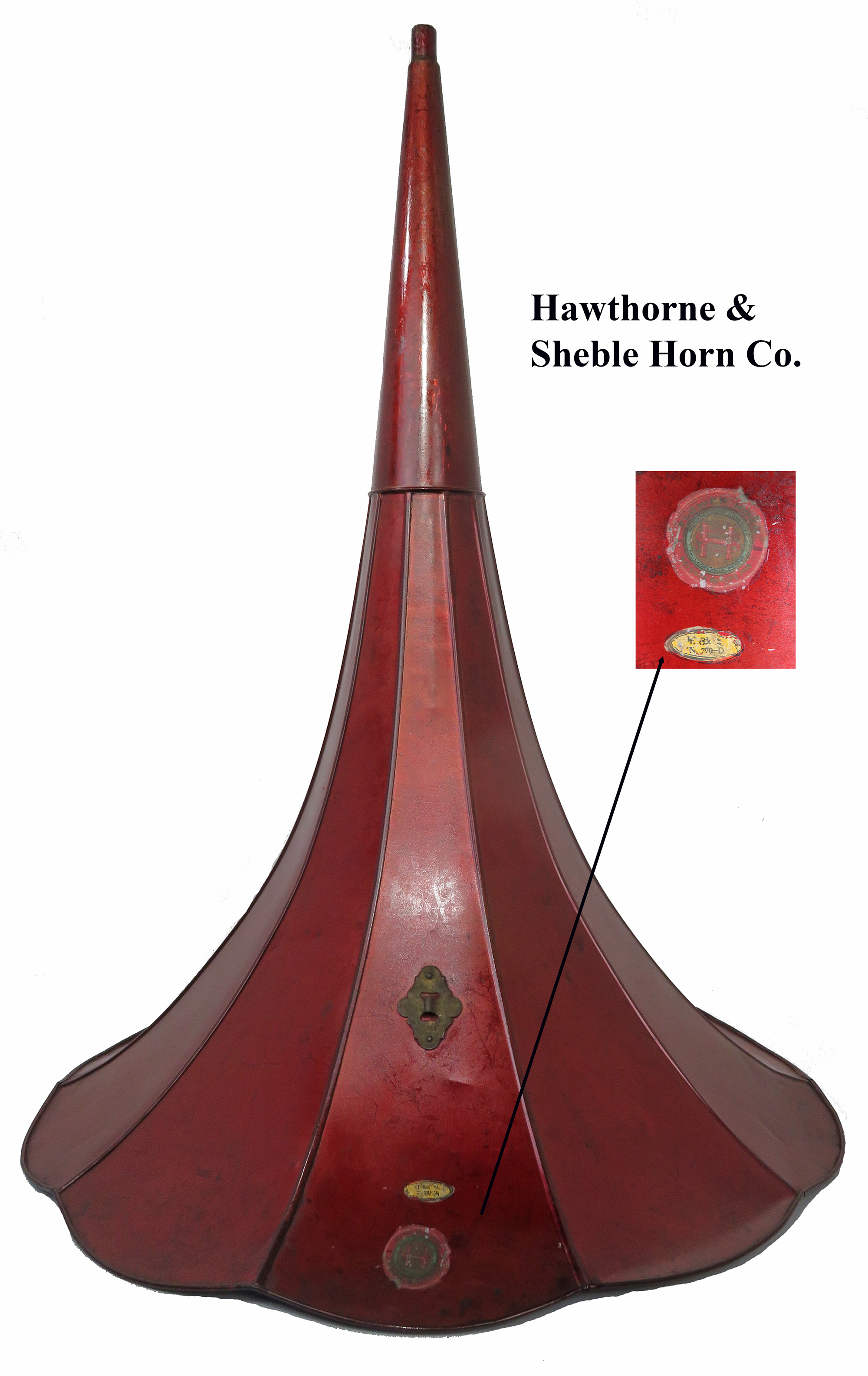 Offering a beautiful Hawthorne & Sheble cylinder phonograph horn. The horn measures 31” high x 22” wide. This horn is in good original condition with no dents or dings, just normal wear and tear with some obvious paint loss.