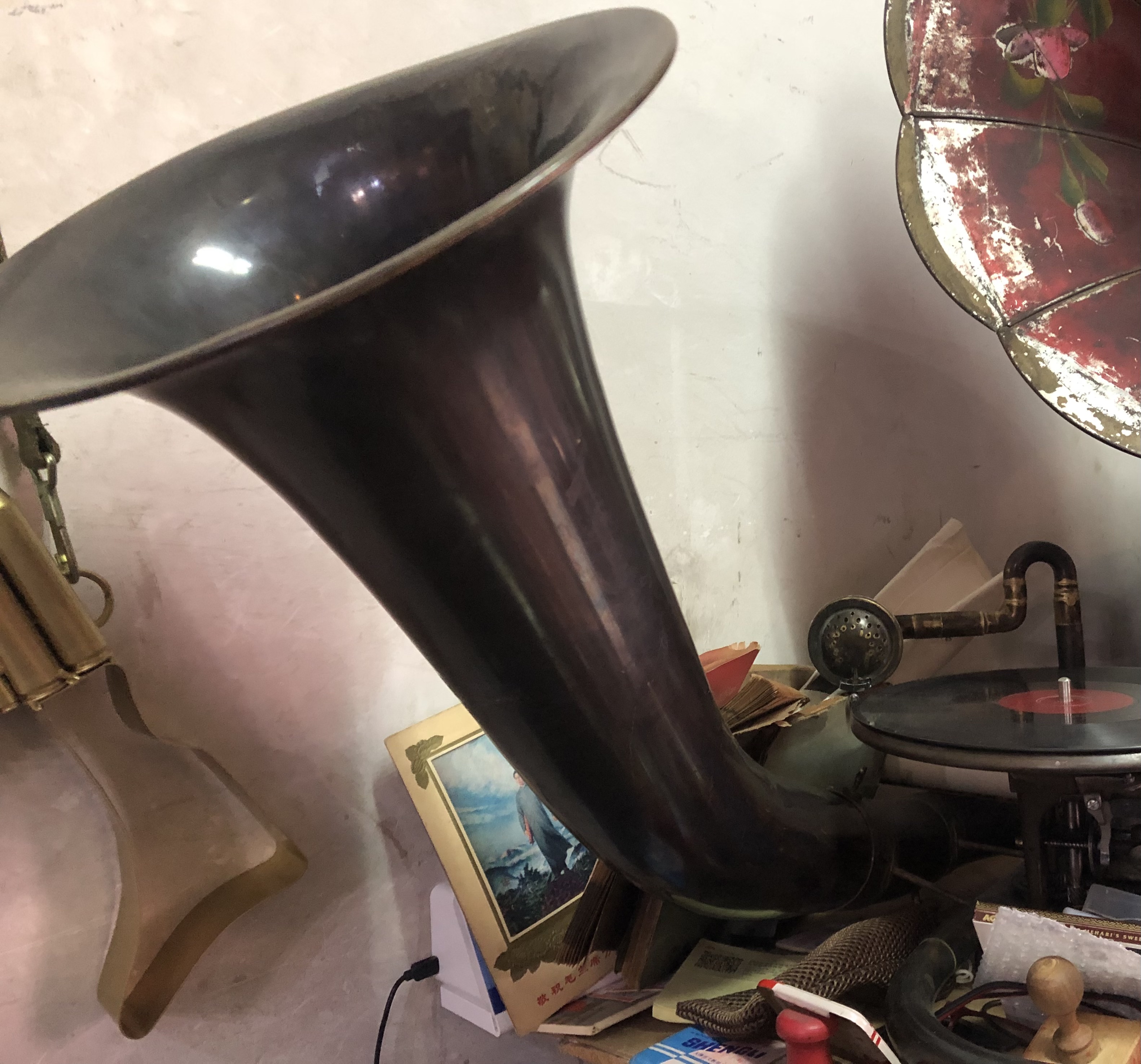 A couple of days back, I spotted a very solid and heavy gramophone motor fitted over skeleton of a modified tuba- an instrument in the brass band family. Its soundbox stemming out of a sturdy brass tube was connected to the horn unsupported by any bracket. The governor was dry and there were no traces of grease anywhere on the gears, yet the motor very ably played a full record without any variation in the speed. Neither the motor nor the soundbox bore any brand name or sign. The uniqueness of the gramophone design was quite appealing and I took pictures for sharing it on the Forum.