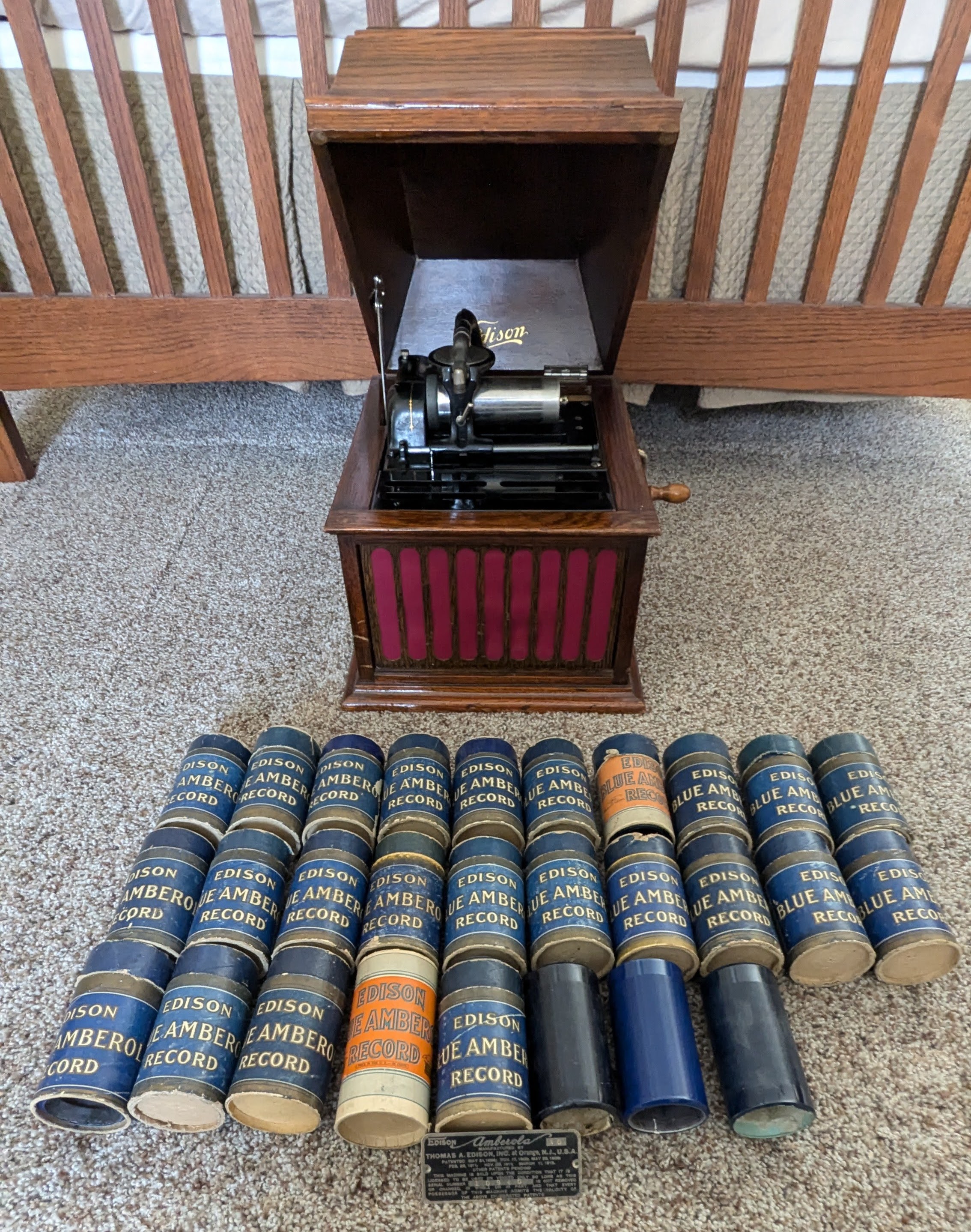 I joined this forum with the hopes of selling an Edison Amberola 30 phonograph along with 28 Blue Amberola Records. I inherited this from my grandparents. It spent it's existence in Western Canada, in a semi-arid climate. (grassland plains). The phonograph does not represent any nostalgic value to me, and I just don't value holding on to it. I would prefer it is in the hands of someone who values it.