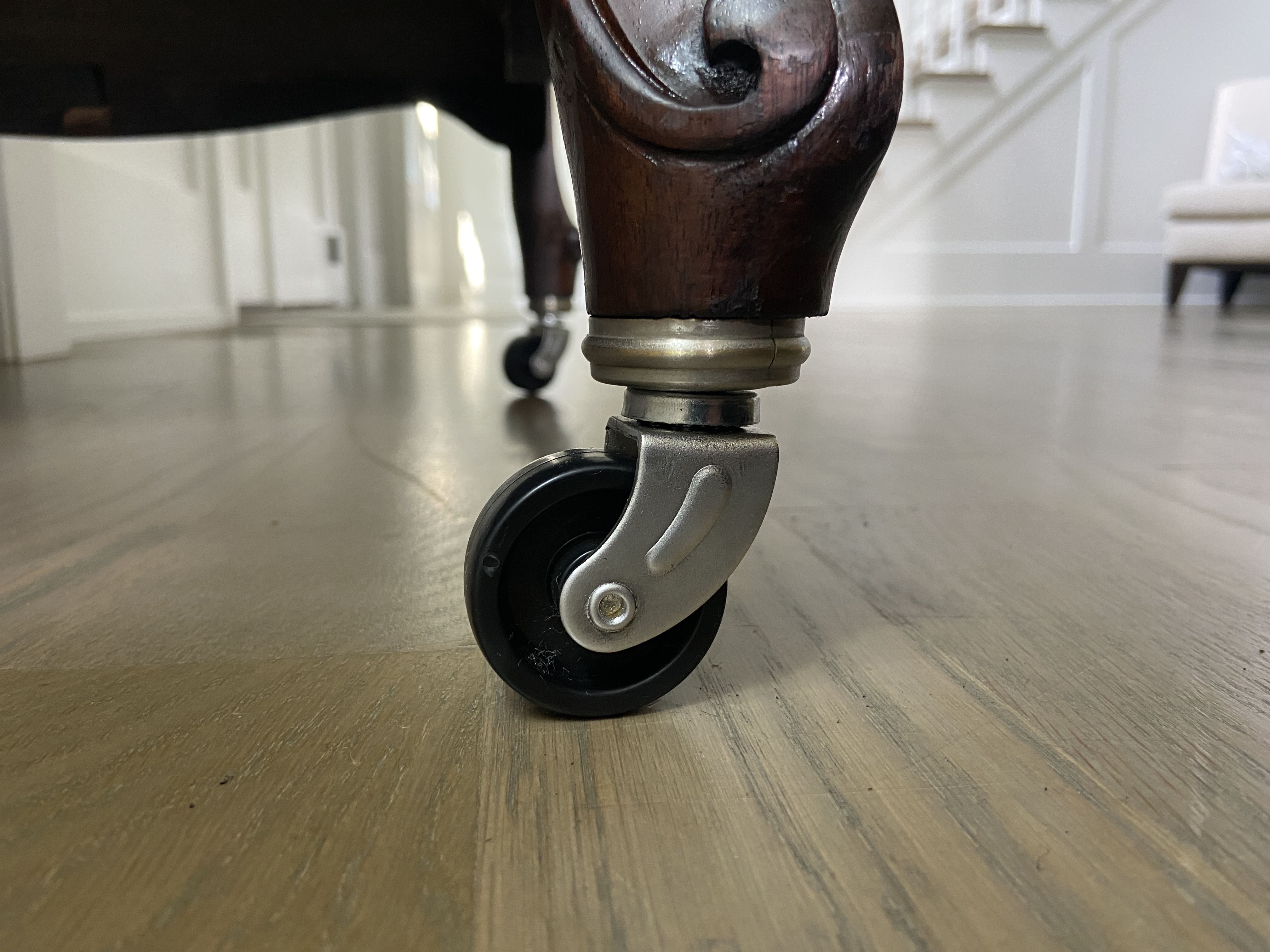 The Victrola the Fourteenth I got as a project was missing a wheel and the caster itself was bent. I found another post about just replacing them with modern versions so I felt better about it (as do my floors).