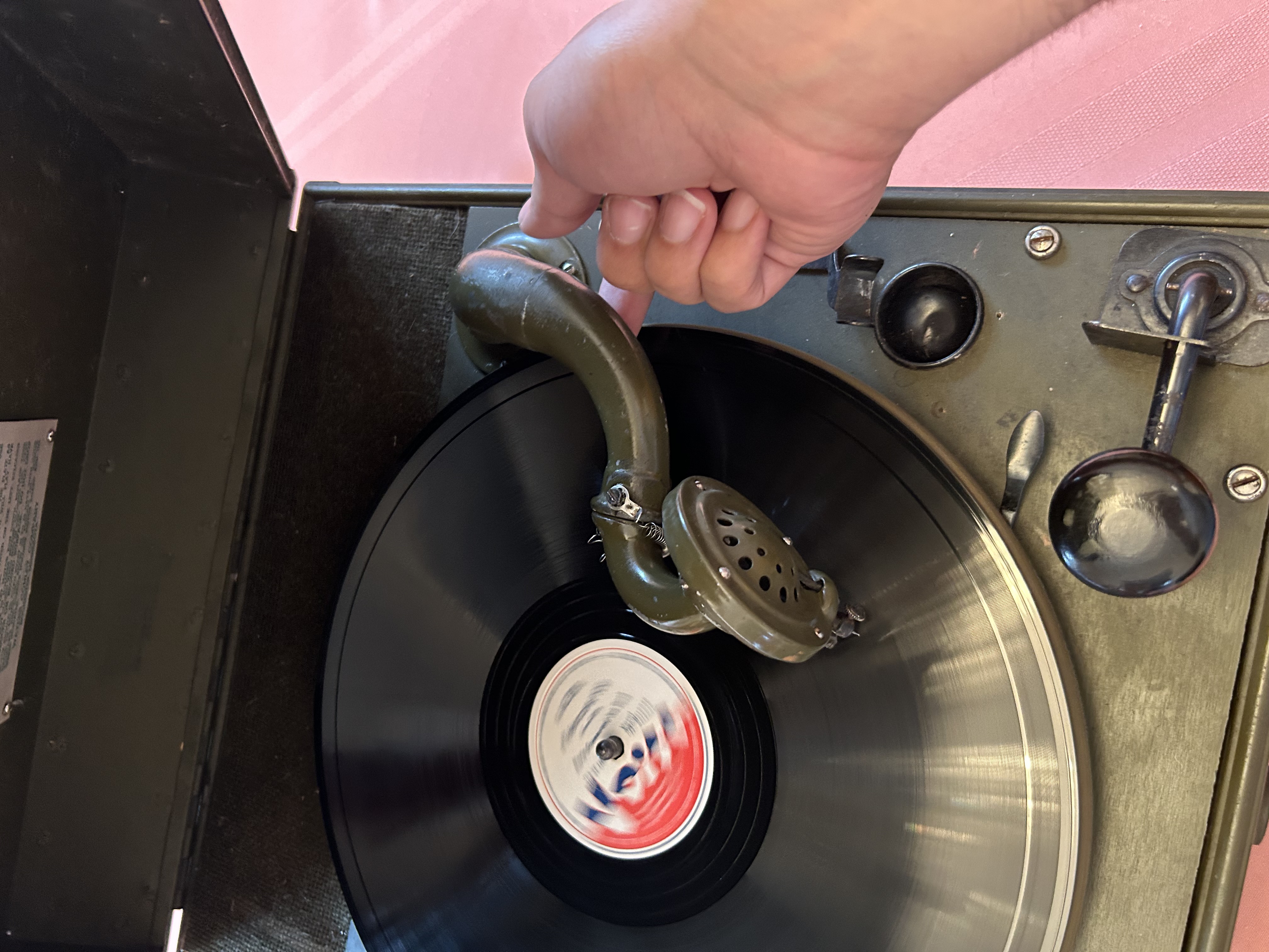 I bought a U.S. army ww2 crank phonograph recently and I’m having issues playing records as the crank spins the music box up and the table spins but as soon as I put a record on and put the reproducer and arm on it… the table slows down and unless I hold the arm up….. it feels like the toner arm is really wobbly…. Any suggestions would be appreciated
