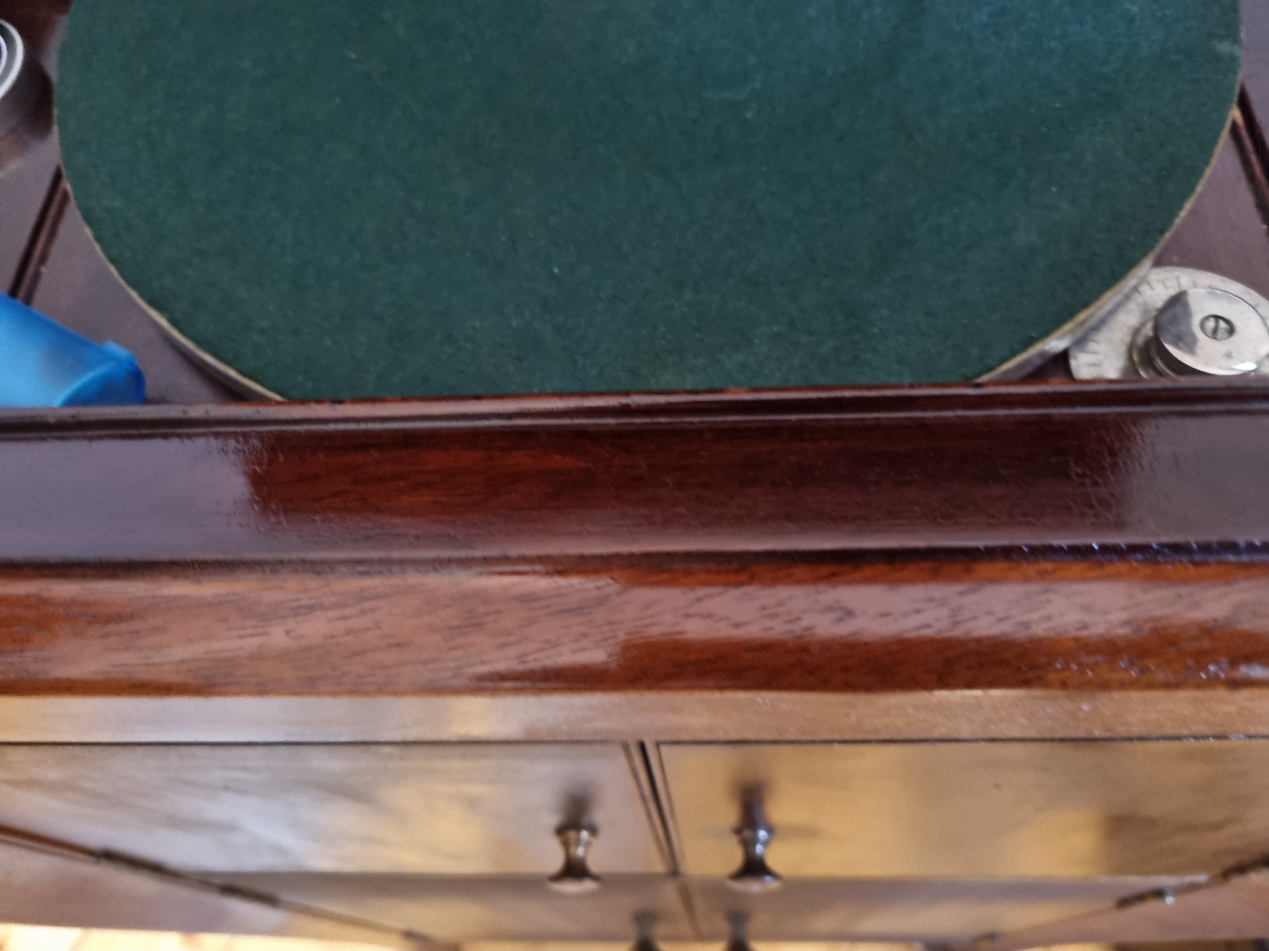 Few years ago I bought HMV cabinet (seller called it HMV Cabinet Grand Model 12, but I couldn't find anything about this model online, I am not even sure if its proper model number). It was serviced, and runs quite well. The only issue is really badly crazed finish, to the point it was almost impossible to tell what color it was supposed to be. Few weeks ago I discovered that the finish was shellac, so I decided to remove old one and put coats of new shellac. I tried to reamalgamate it, but it didn't work. It just become sticky and turned into black goop - so I started removing it.