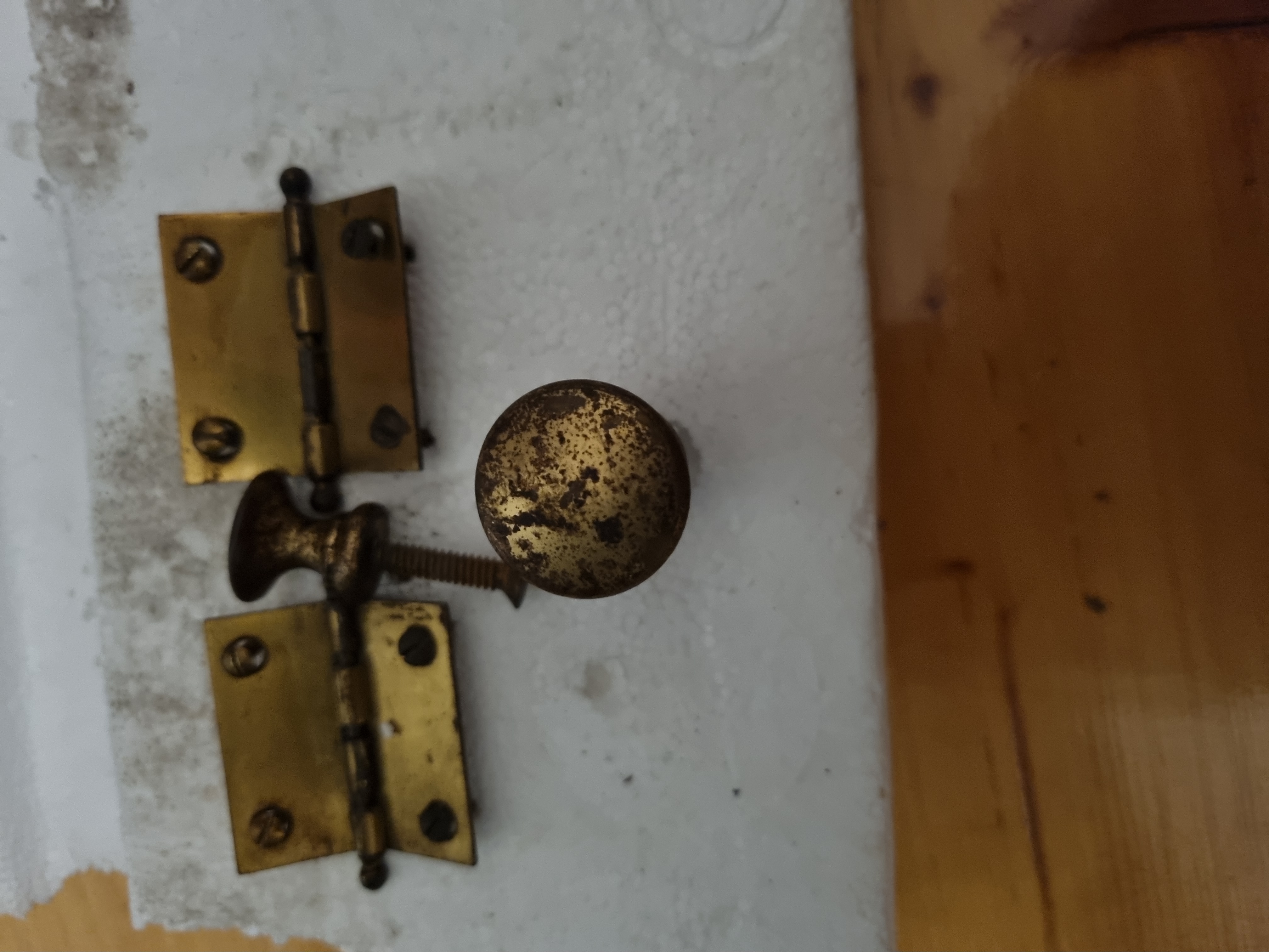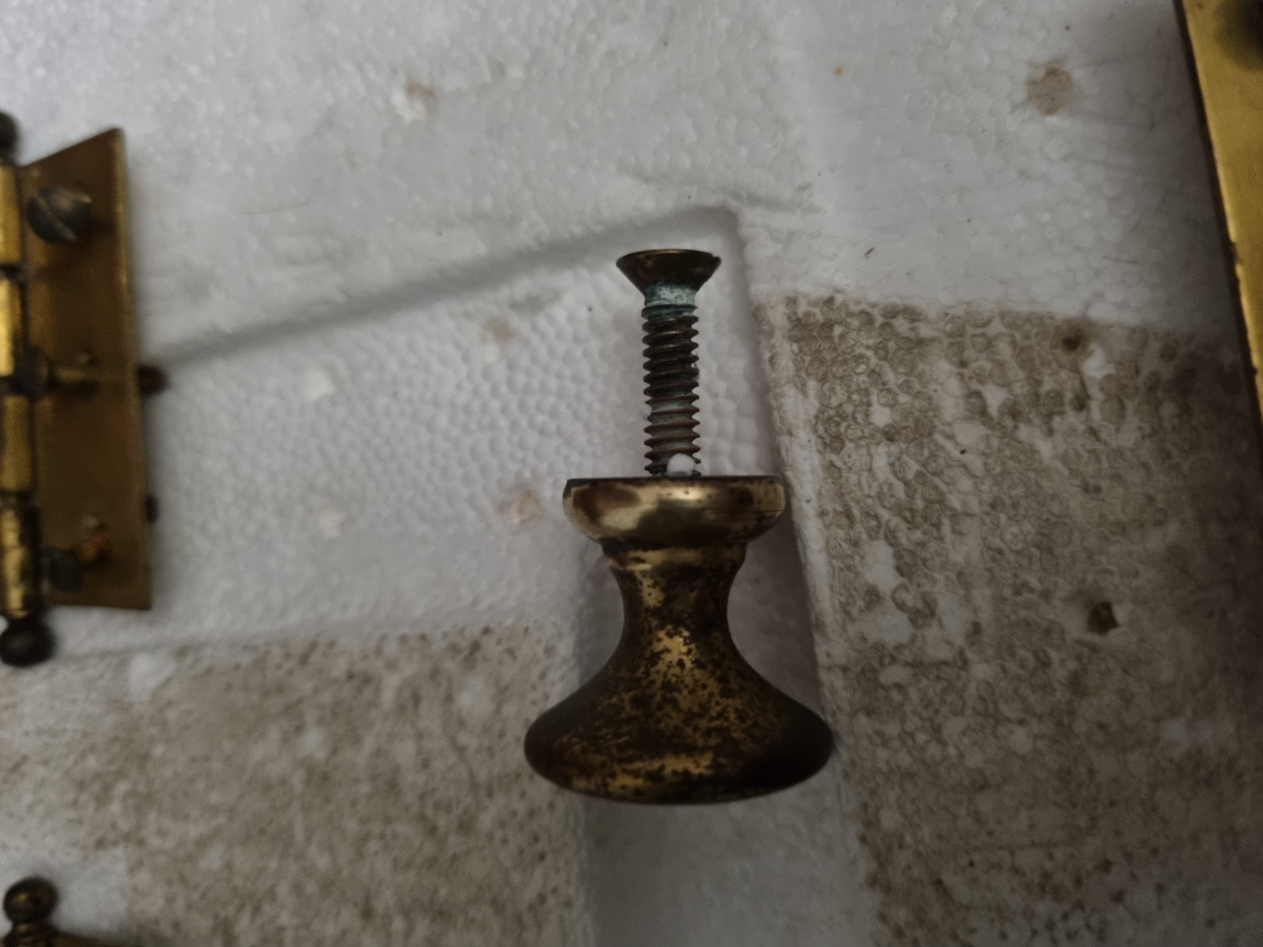 I have 1 more question: Any idea what are the handles made of? At first, I assumed those were made of steel which was electro-plated with brass. I though that, because they look 'rusty'. But then I checked with magnet, and it didn't stick at all. I also tried polishing part of it, at bottom and it seems to be pure brass. But if that's the case, I have no idea what the 'rust' covering it is. I am afraid that if I try to polish them, I will buff through the brass and some other metal will show.