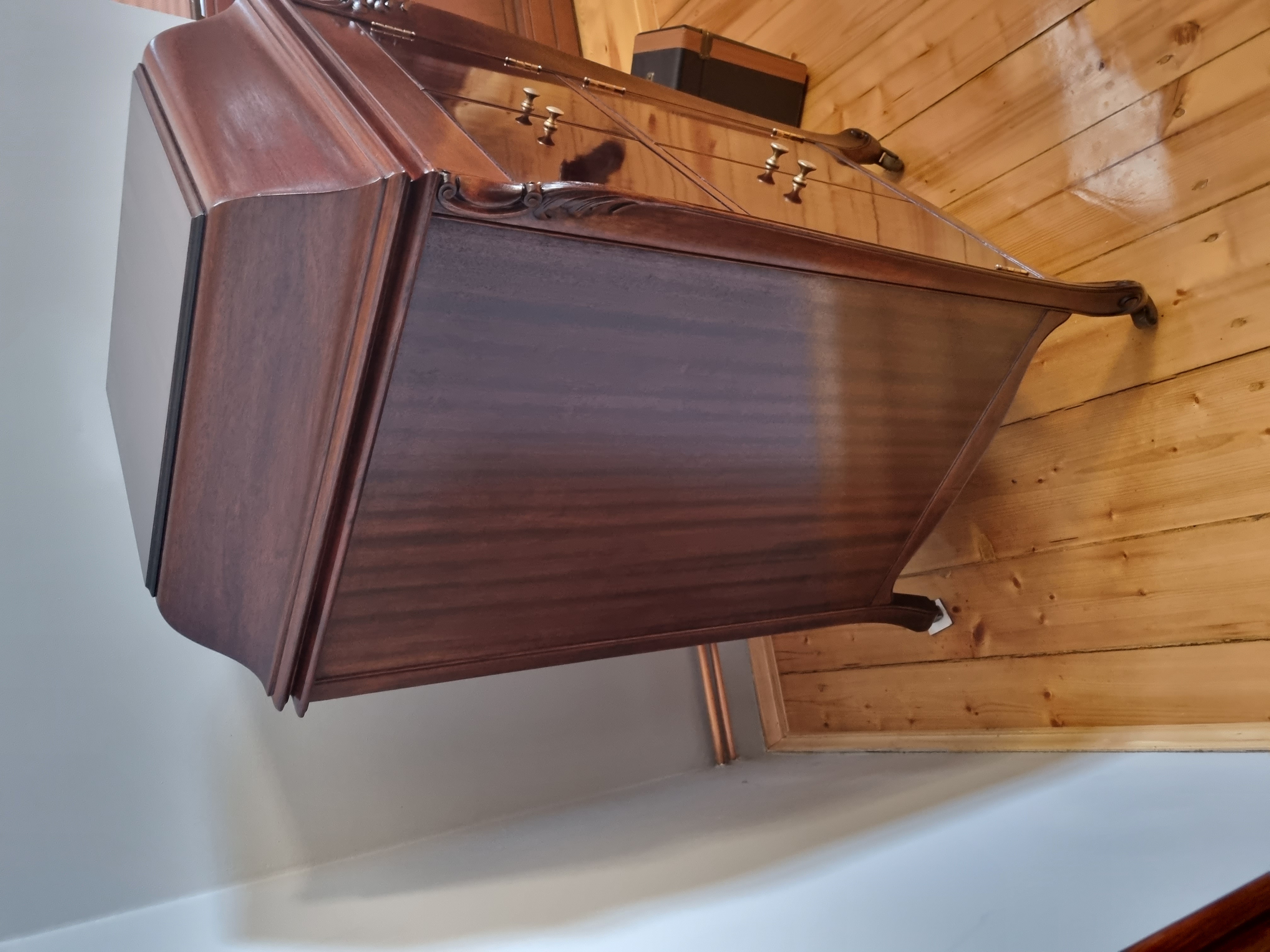 Thanks for tips and help! I am just a bit confused, because you wrote than stain needs to be applied to bare wood. But then you say that you would not sand it to bare wood? I tried to apply Minwax oil mahogany stain on one spot (didn't sand it down to bare wood, just removed shellac with alcohol) . Sadly it seems it doesn't take stain at all, I left it on for about 10min, then wiped it off and I dont see any change in color.JerryVan wrote: Mon Jul 08, 2024 3:19 pmStain needs to be applied to bare wood. I like using dye stains, but they can be tricky, (and toxic). Oil based stains should work fine. Wipe on an even coating, then wipe off the excess with a dry cloth before the stain dries. I would not sand down to bare wood as that will make a light spot. I'd remove any existing shellac with alcohol.Ghaad wrote: Mon Jul 08, 2024 1:43 pmI guess I am bit afraid of staining, because when I attempted it in past on some furniture it ended really blotchy. So far on the parts where I removed shellac, color is quite uniform, but you are right that it's also washed out. Can stain be added on top of existing finish or would I need to sand it down to bare wood? What stain would be best - oil based or water? As for light sanding - you mean something around 320 grit?JerryVan wrote: Mon Jul 08, 2024 11:53 am What's wrong with re-staining? Many times, cases are refinished without #1, a light sanding, and #2, re-staining. The result is usually a blotchy, off-color, washed out looking result. The stripping process, no matter how it's done, usually removes some degree of original coloration, and often not in a uniform manner.