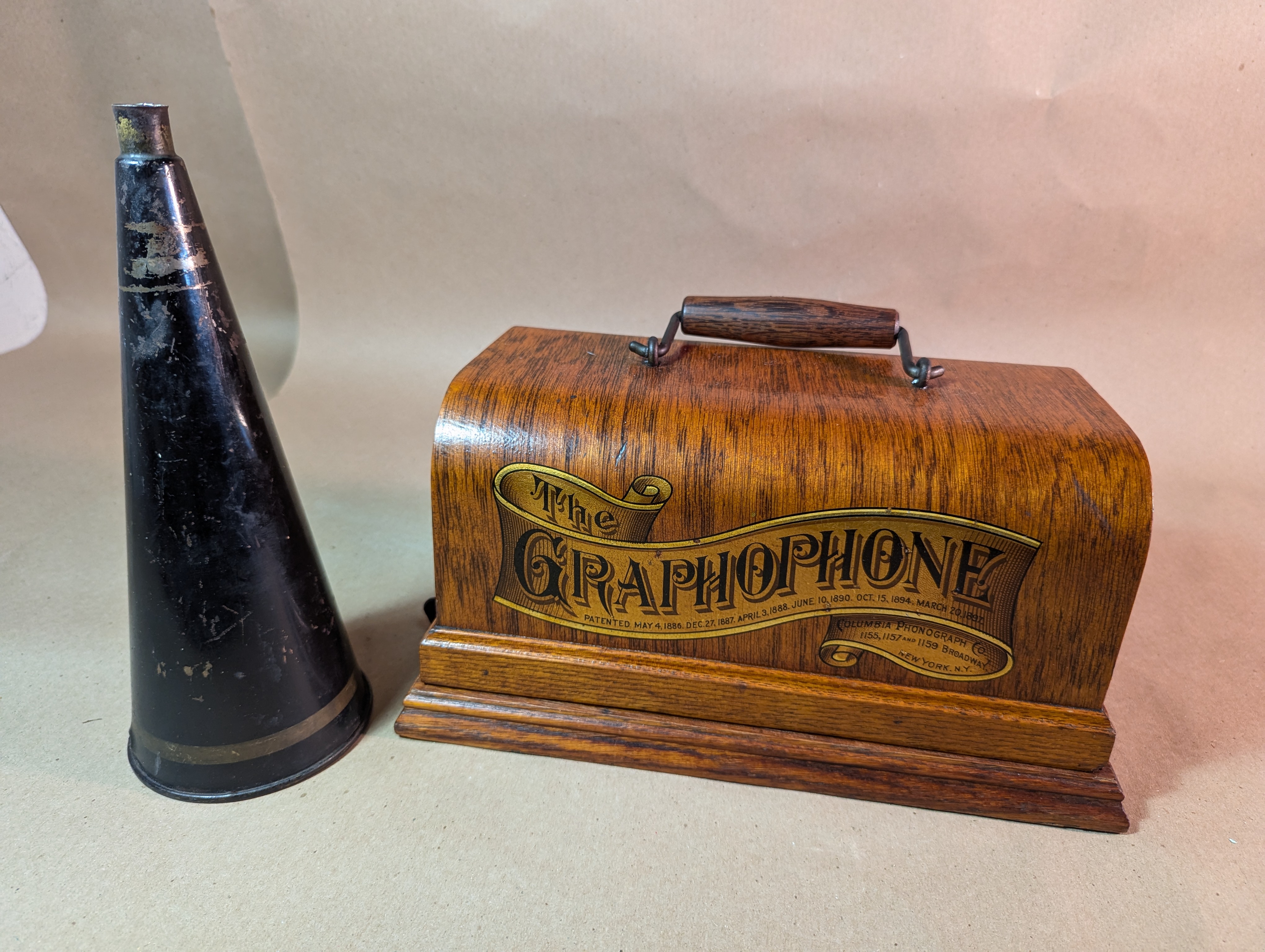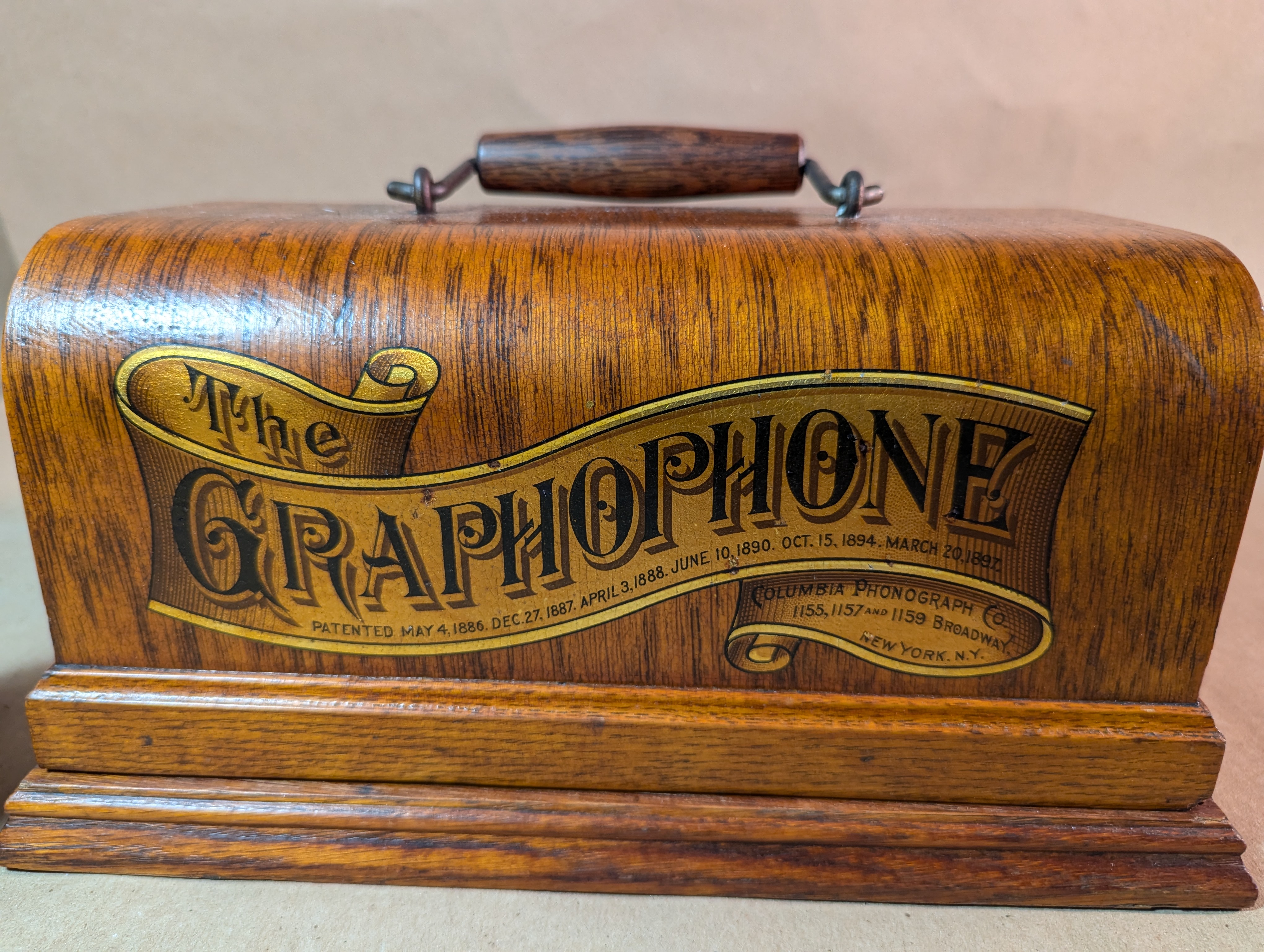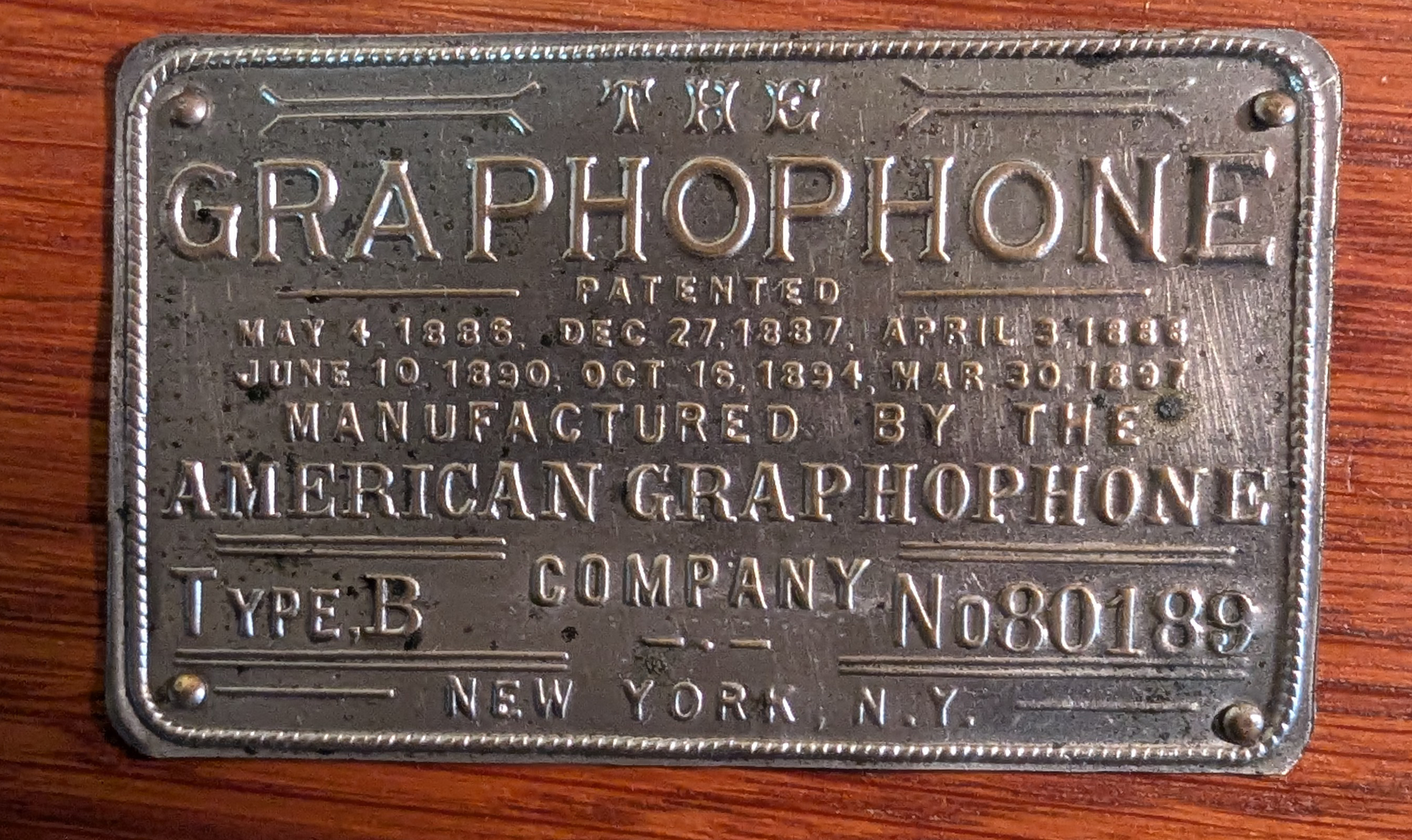 I am offering this Columbia Model B Eagle. It has serial Number 80189 (189th made) which according to our resident expert on these, George, it is the 7th Earliest Serial Number Known. It is an outstanding all original machine with great nickel plating, and original decal. It has been completely cleaned and runs great. The reproducer has been re-built. The original 10 inch cone horn has some paint loss and does have a small hole in it. Take a look at the pictures and let me know if you have any questions. Shipping at actual cost. Free delivery to Stanton’s August auction available. Asking $1100.00.