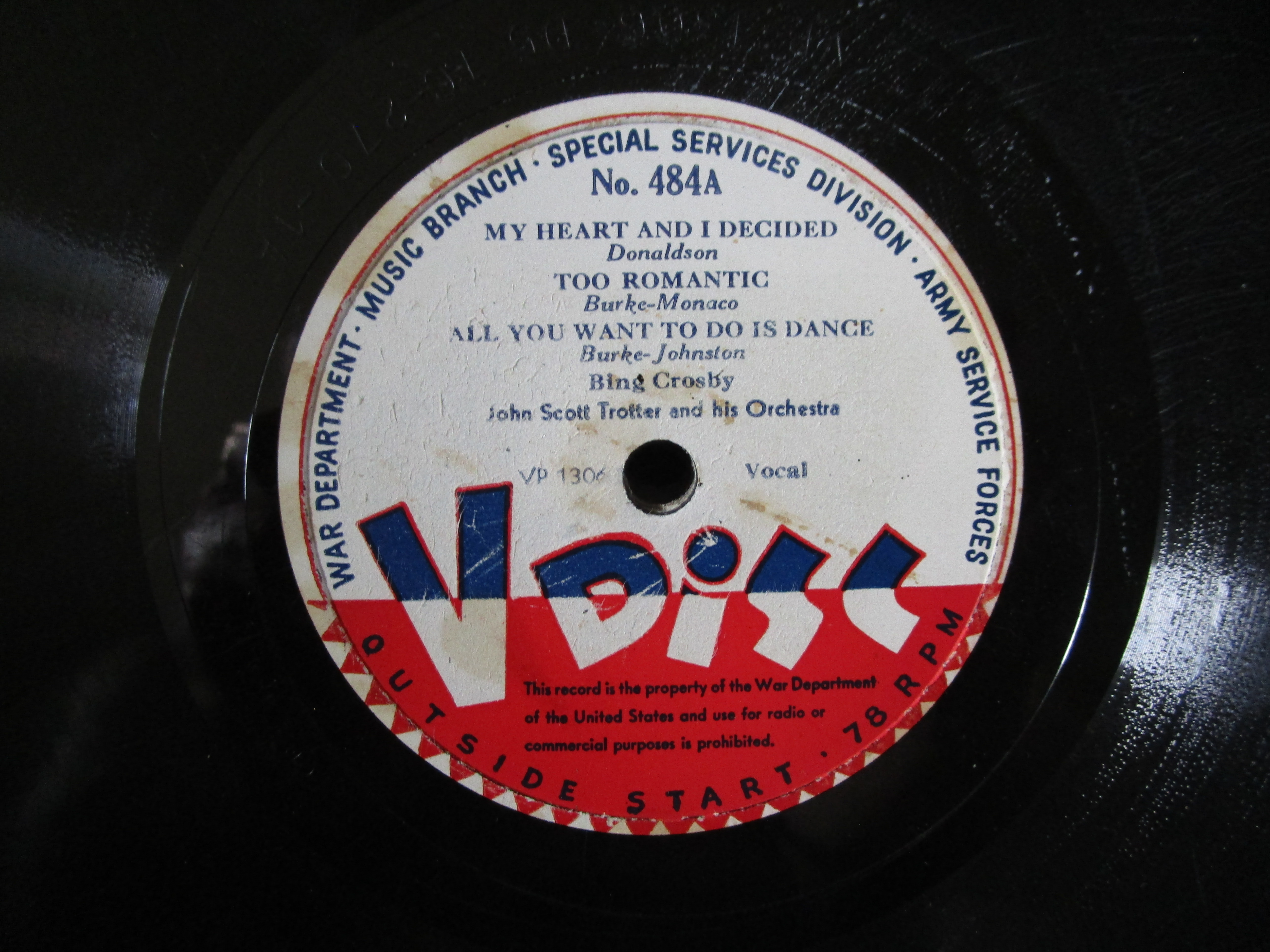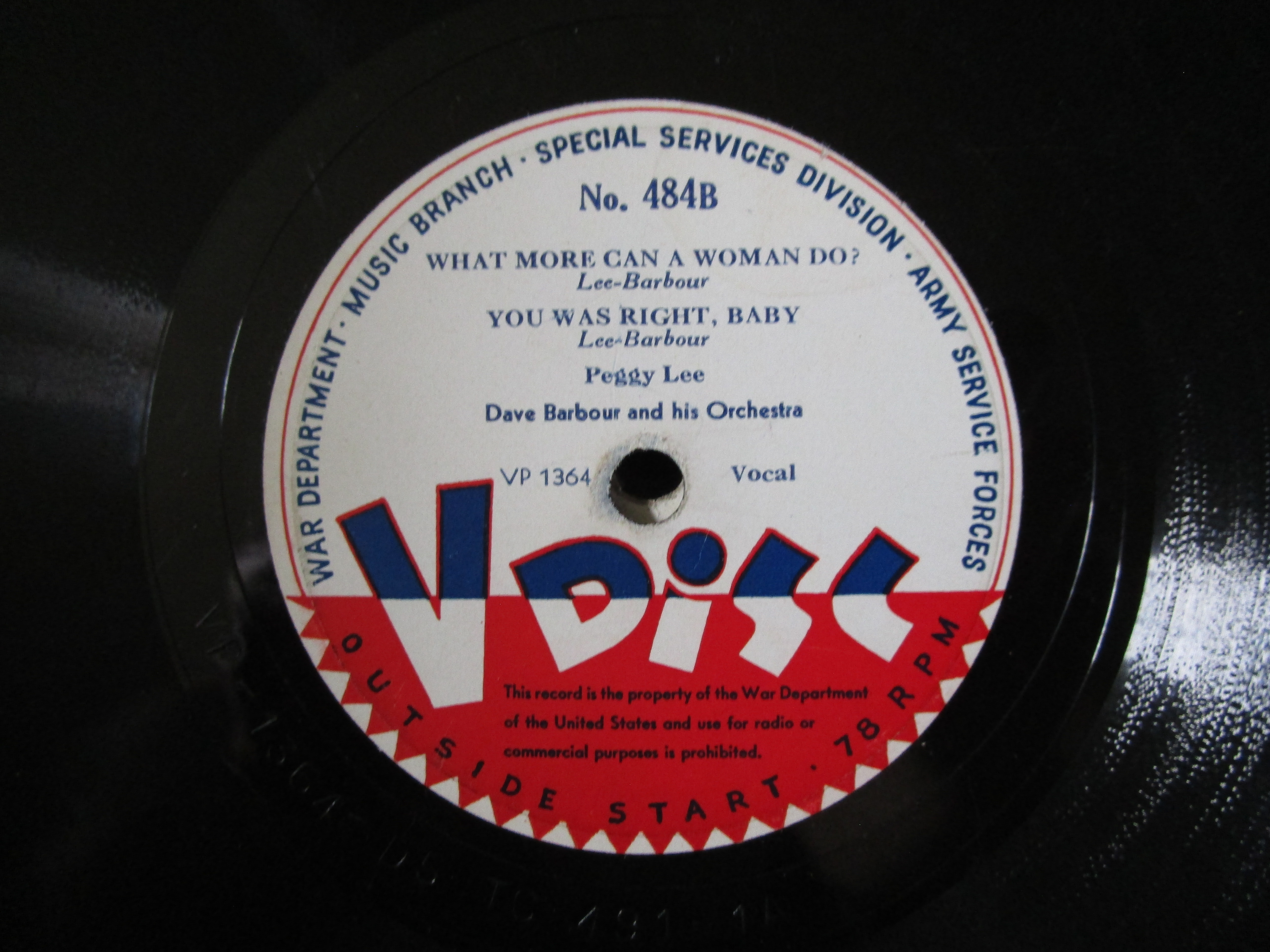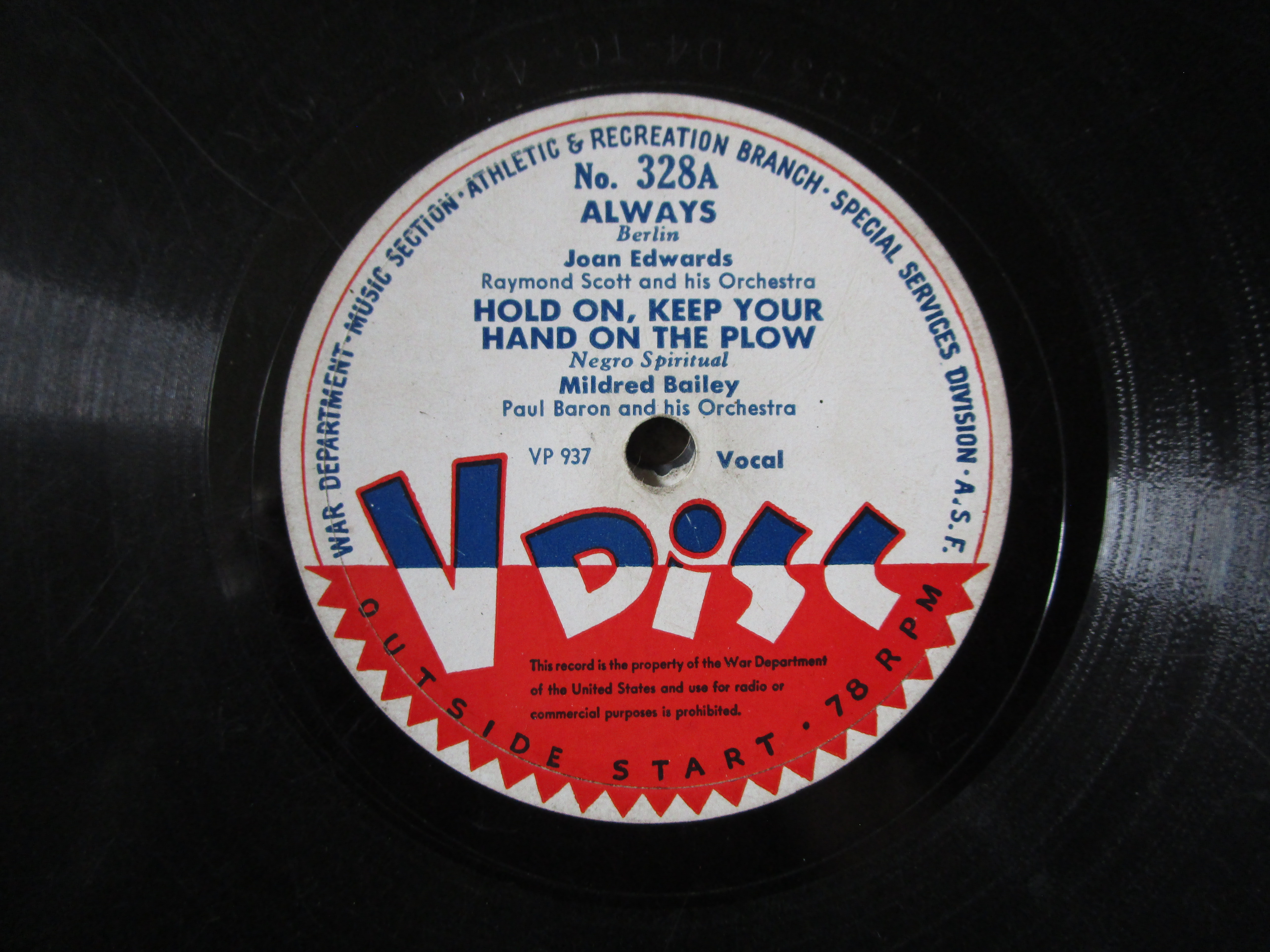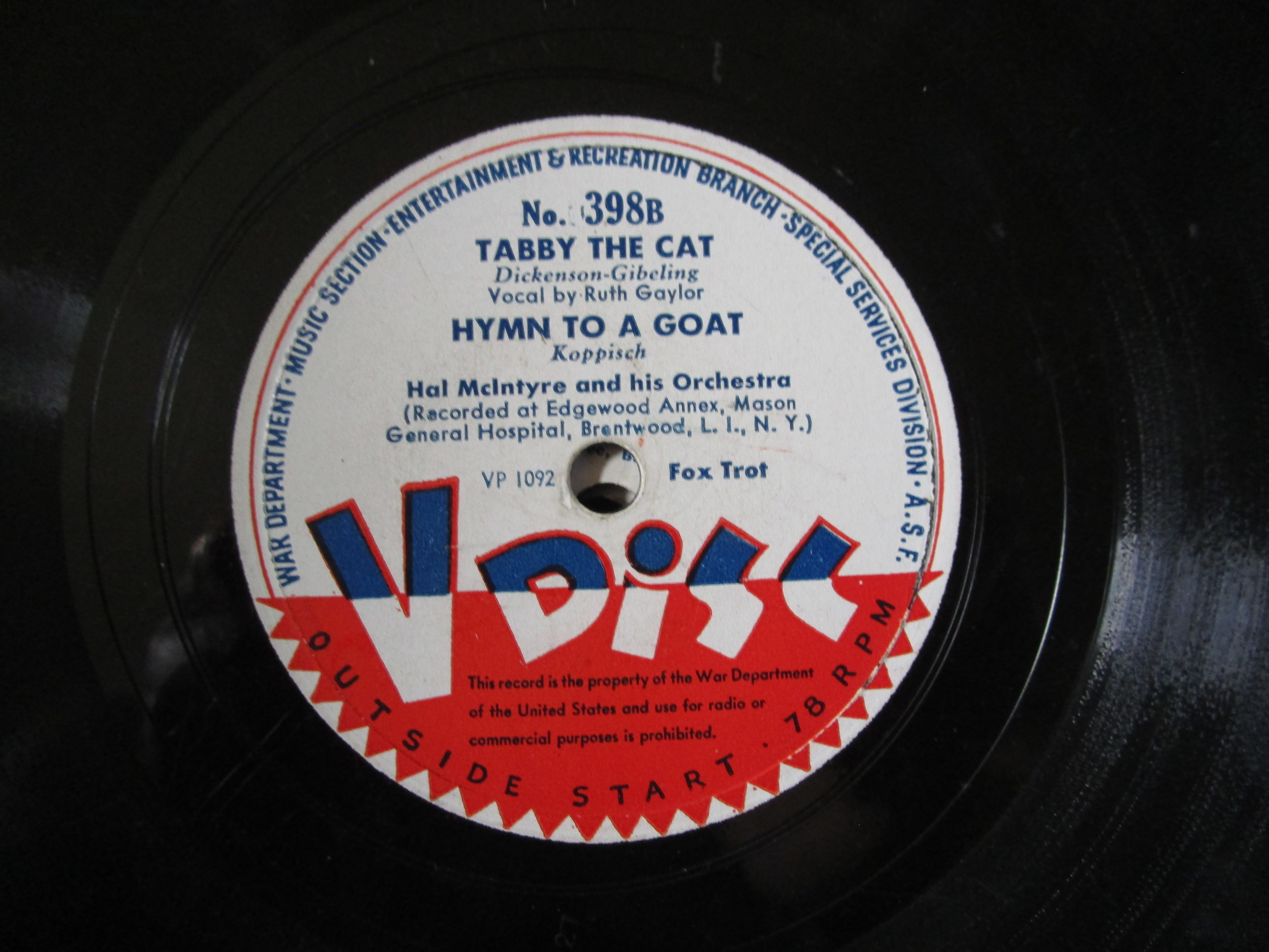 - Personal Text: Always looking for V-Discs!