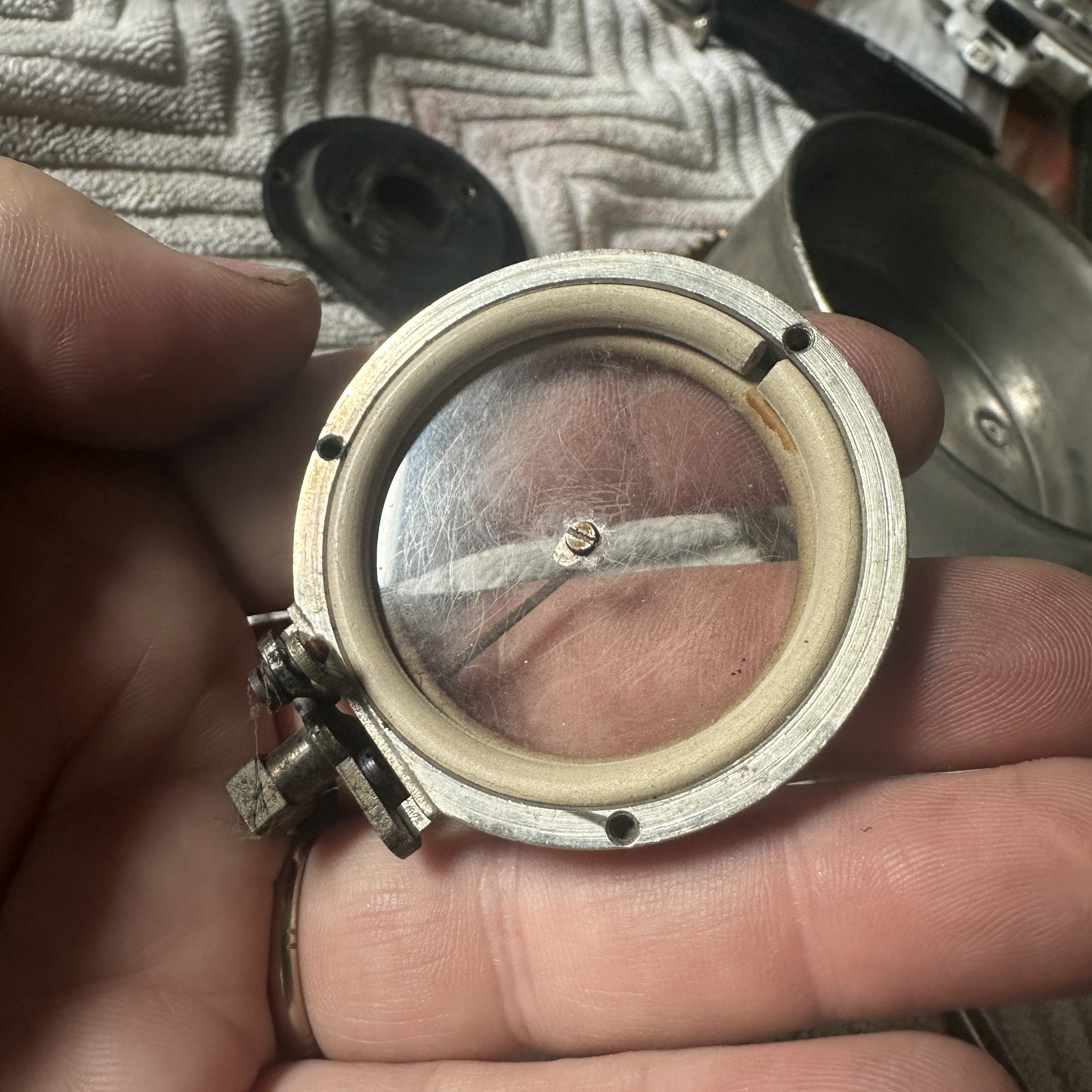 I don't know if this has been a topic before but it seems as though my whole week has been FULL of dealing with repairs enacted by the ghosts of Christmas past and it hasn't been pretty. Aside from the Vic III "repairs" that I've been dealing with, I picked up a VV-X that had a cabinet thoroughly chewed by a dog. I knew I was picking it up for parts (mainly the reproducer) and when I tore it apart, this is what I found: huge gap in the gasket and no beeswax on the needle arm screw. What sorts of "repairs" have you found?