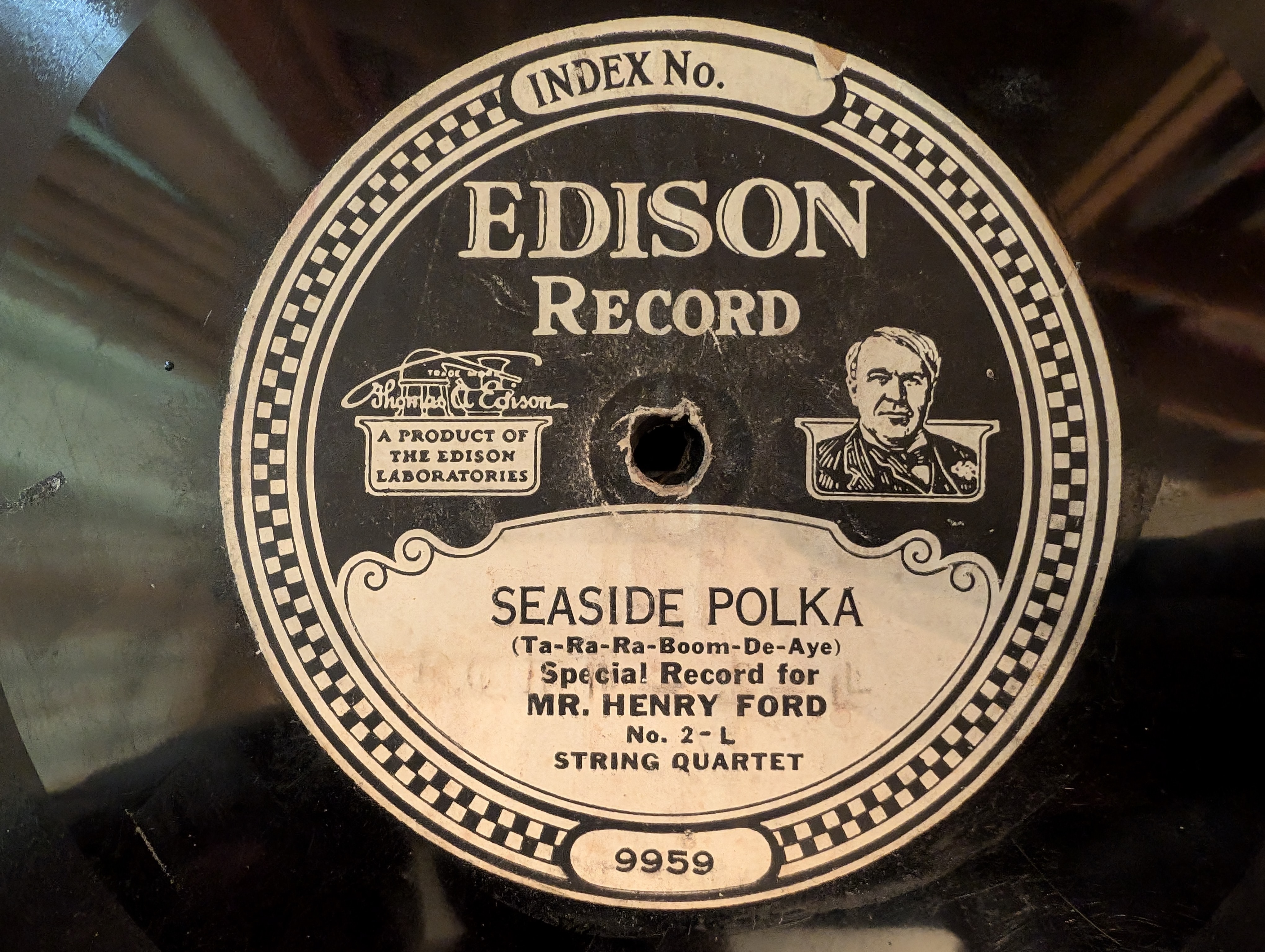 Hello, everyone. I was sorting through a box of Edison Diamond Discs I've had for a while, and came upon this one. I don't recall ever seeing it before, and it's a mystery to me. I understand Edison and Ford were friends (or at least portrayed themselves as such to the press), but I didn't know Edison made special discs for Ford, nor that Ford (apparently) had a fondness for Polkas. Can anyone tell me more about this record? Was it a one-off, or did Edison press a series of sides for Ford? Were they recorded just for him? Were they sold to the general public, or just distributed to a select few somehow? Any idea when they were recorded?
