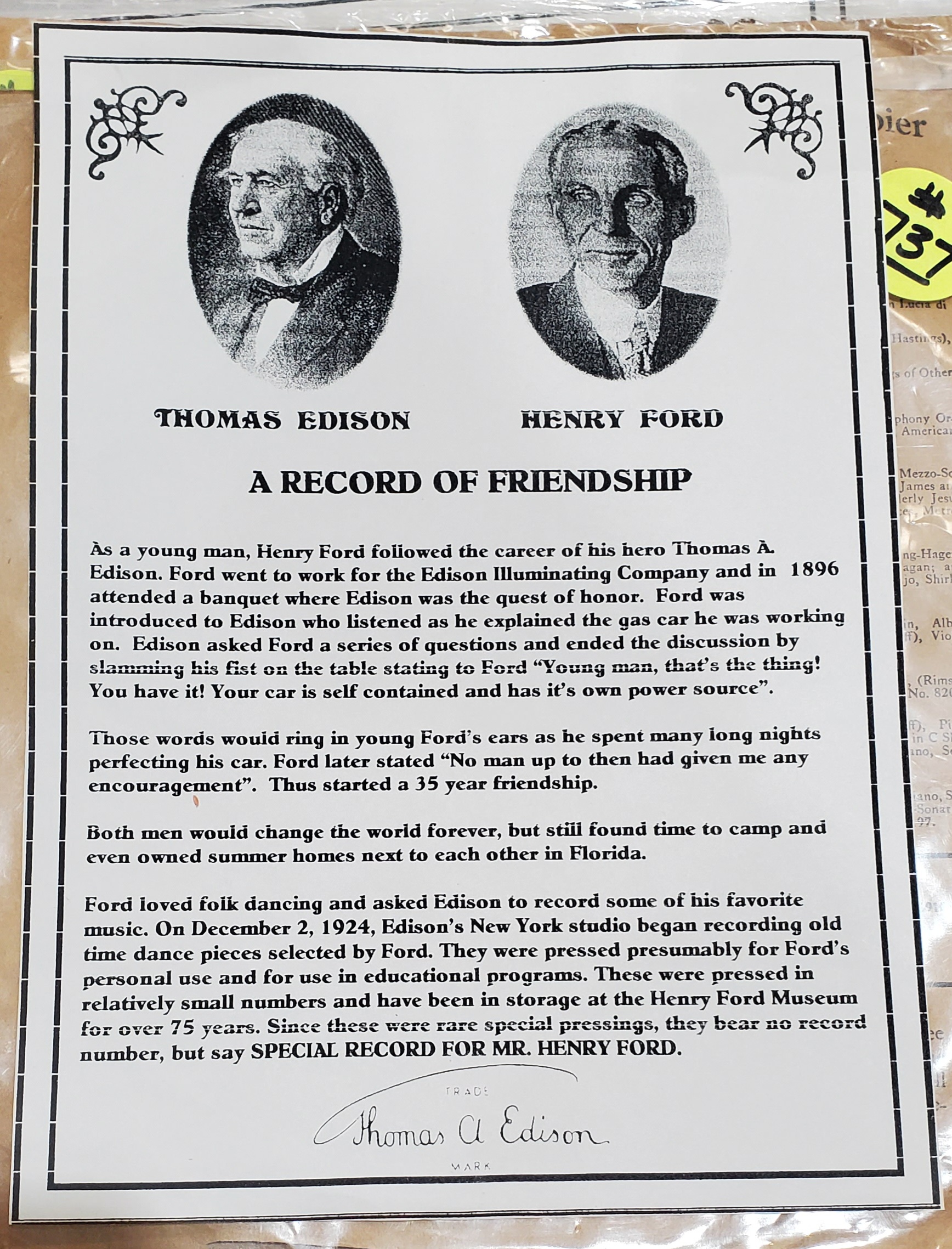 Edison "Special Record for Mr. Henry Ford"?