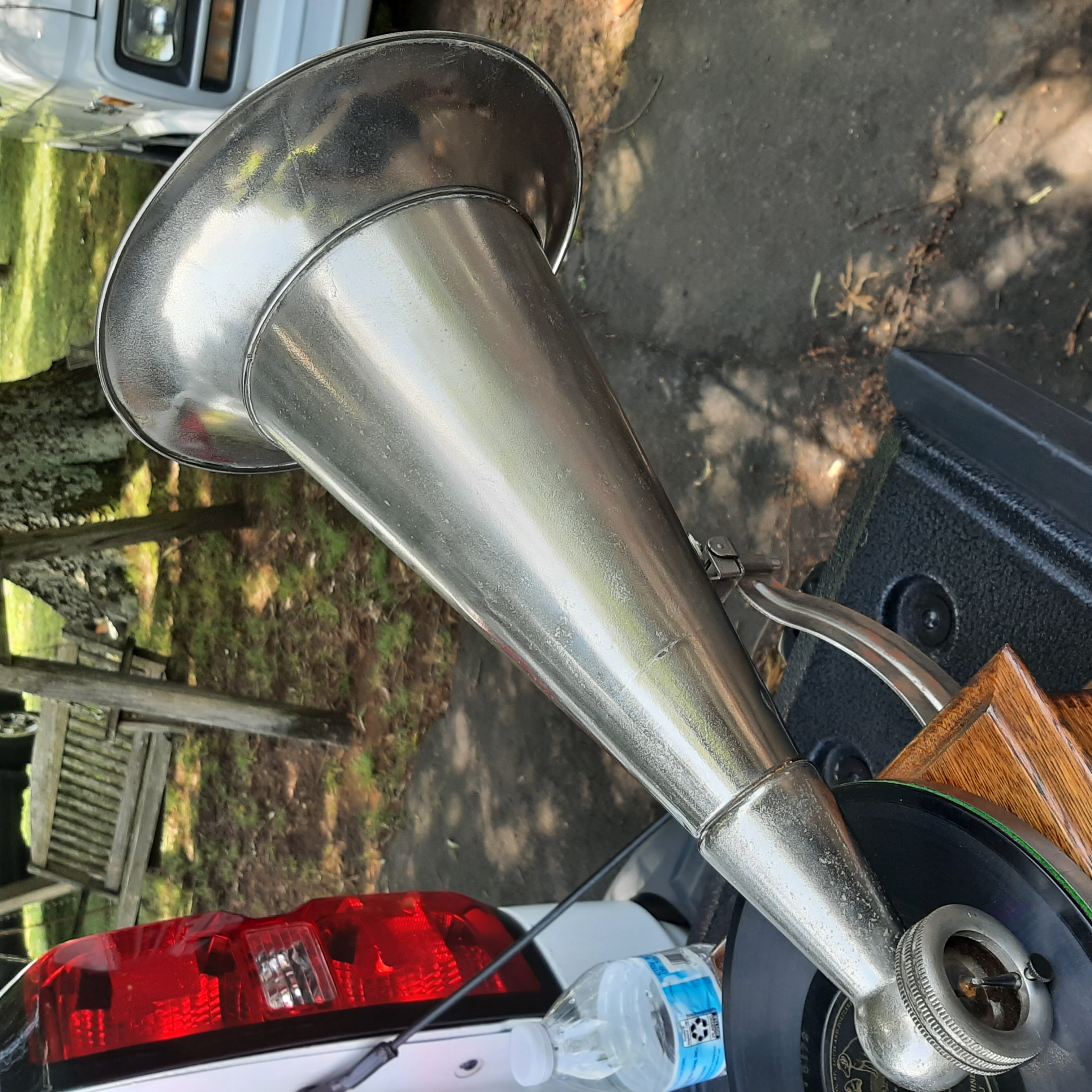 My buddy just bought a Vic jr that appears to be be all original including the reproducer. At first glance I thought someone had painted the horn silver but after closer inspection I noticed that it's actually nickle plated. And it's not new...in fact it does have some pitting in places.