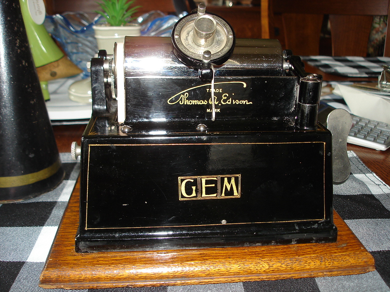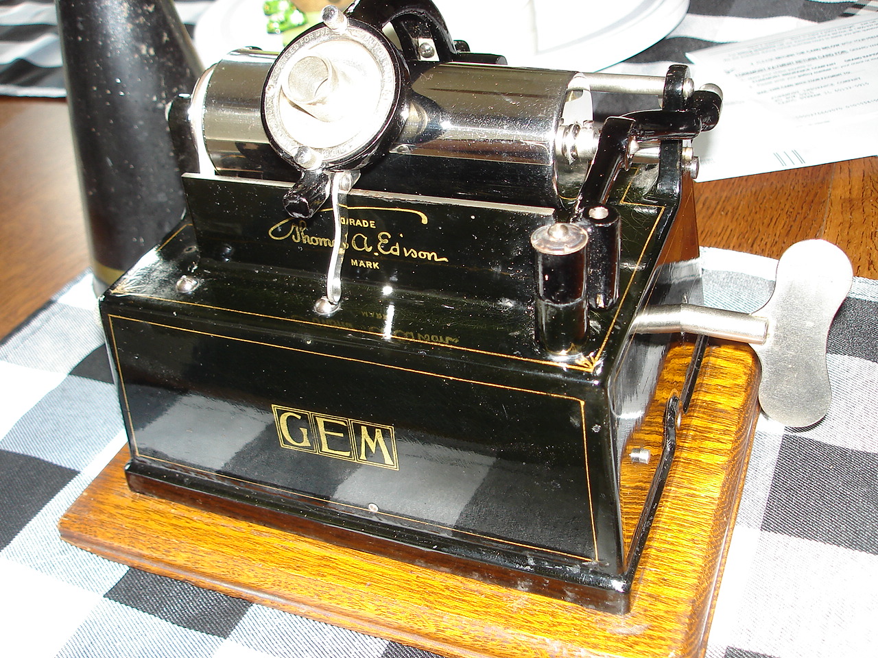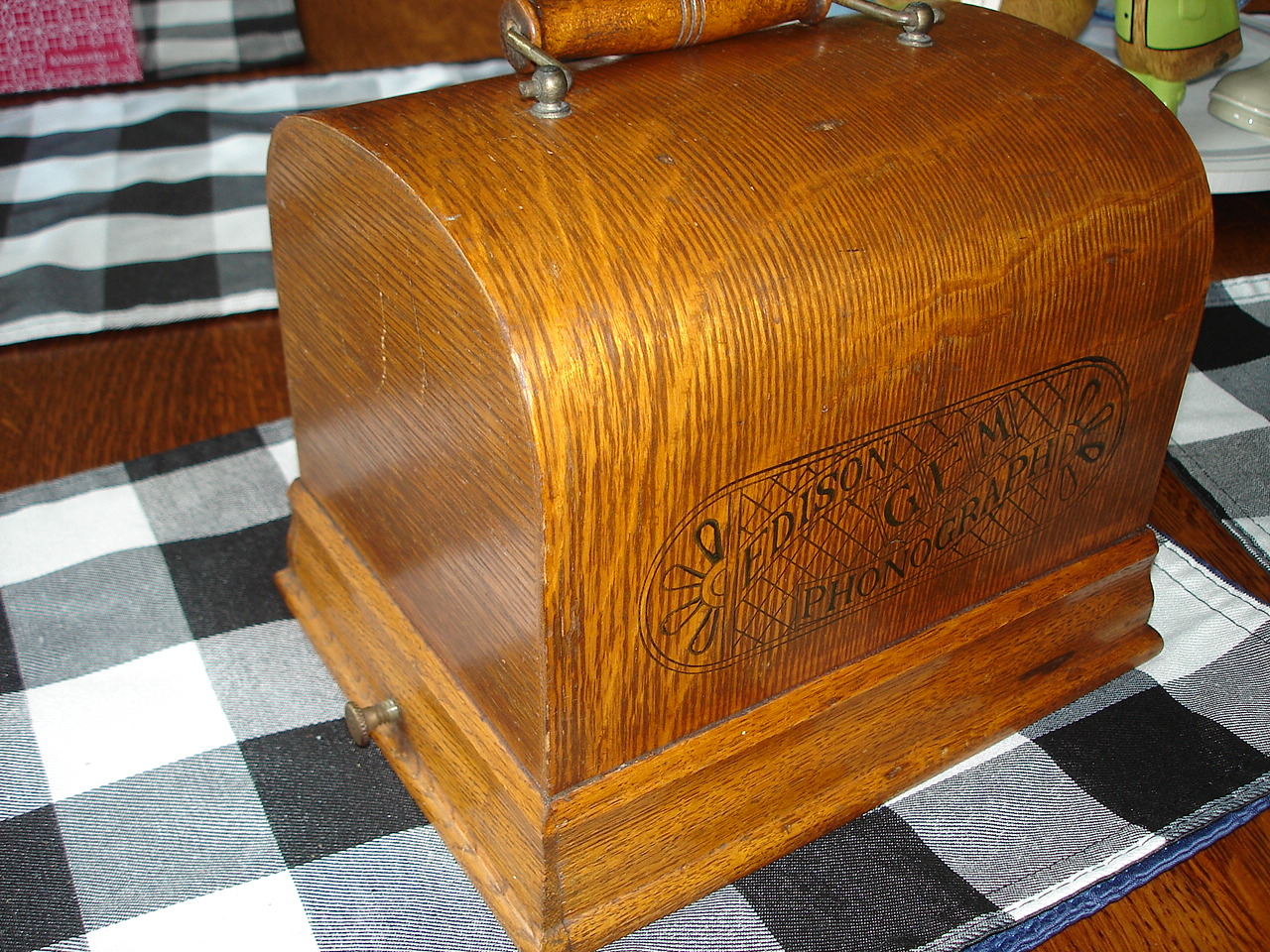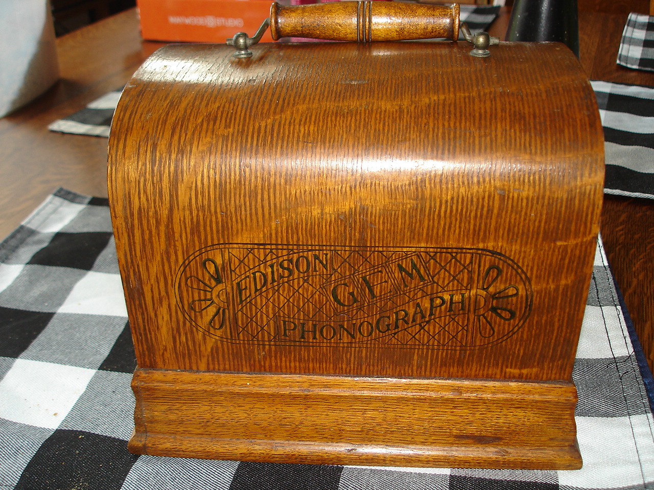 Some months back, a friend of mine in the Model T Ford hobby gave me a call about an Edison phonograph his neighbor found at an estate sale. He was looking for a "needle" to make it play. Upon receiving a picture, I was surprised to see a very nice looking Gem Model A, but with its unique reproducer completely missing. I told him it could be a fairly valuable machine, but that the reproducer would not be cheap, and asked if he would like me to place a wanted ad for him on TMF. He said he'd hold off on that. He bought it not because of what it was exactly. He's a photographer and wanted only to use as a prop in his photos. Well, okay... I mentioned if he ever wanted to sell it, I'd make him an honest offer. Fast forward six months or so and my friend says his neighbor is ready to sell. I was still ready to buy, so here we are, completed with a reproducer sold to me by a great TMF member within hours of my wanted ad posting. It's about the cleanest example I've ever seen!
