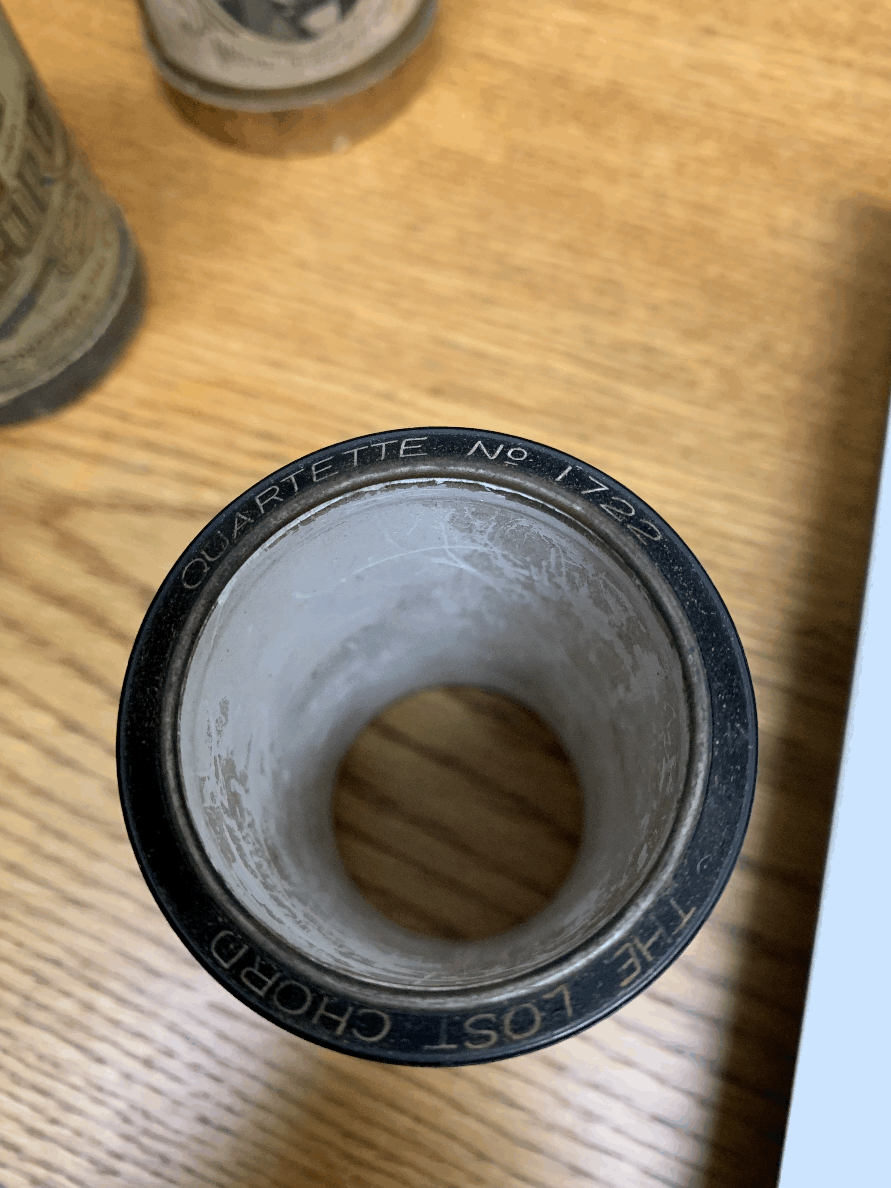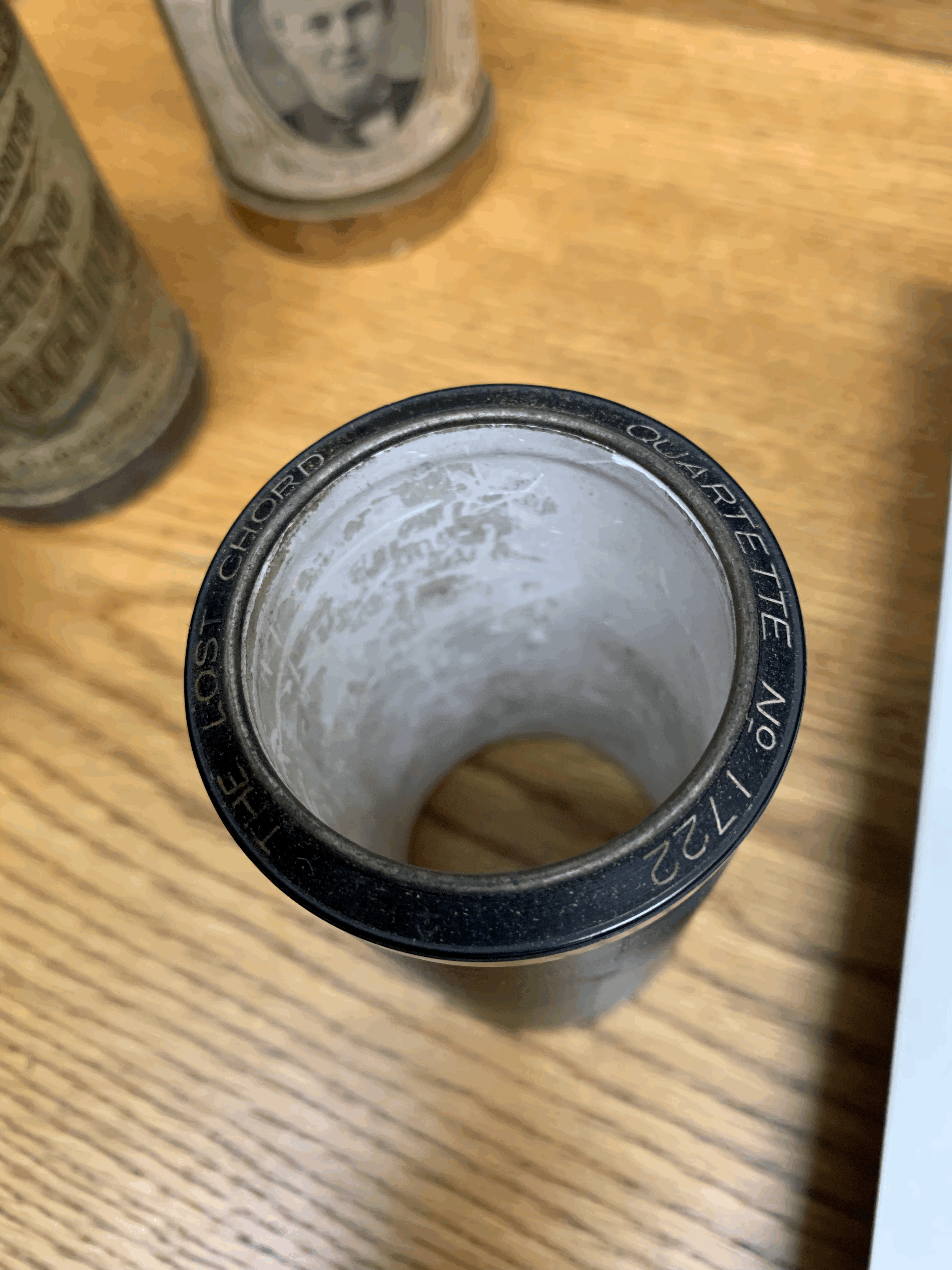 I don't have an example although I do have several of the records, the tubes for these I have seen are unusual as they have a pressed tin plated steel base (embossed with a company name I think) in the card tube.