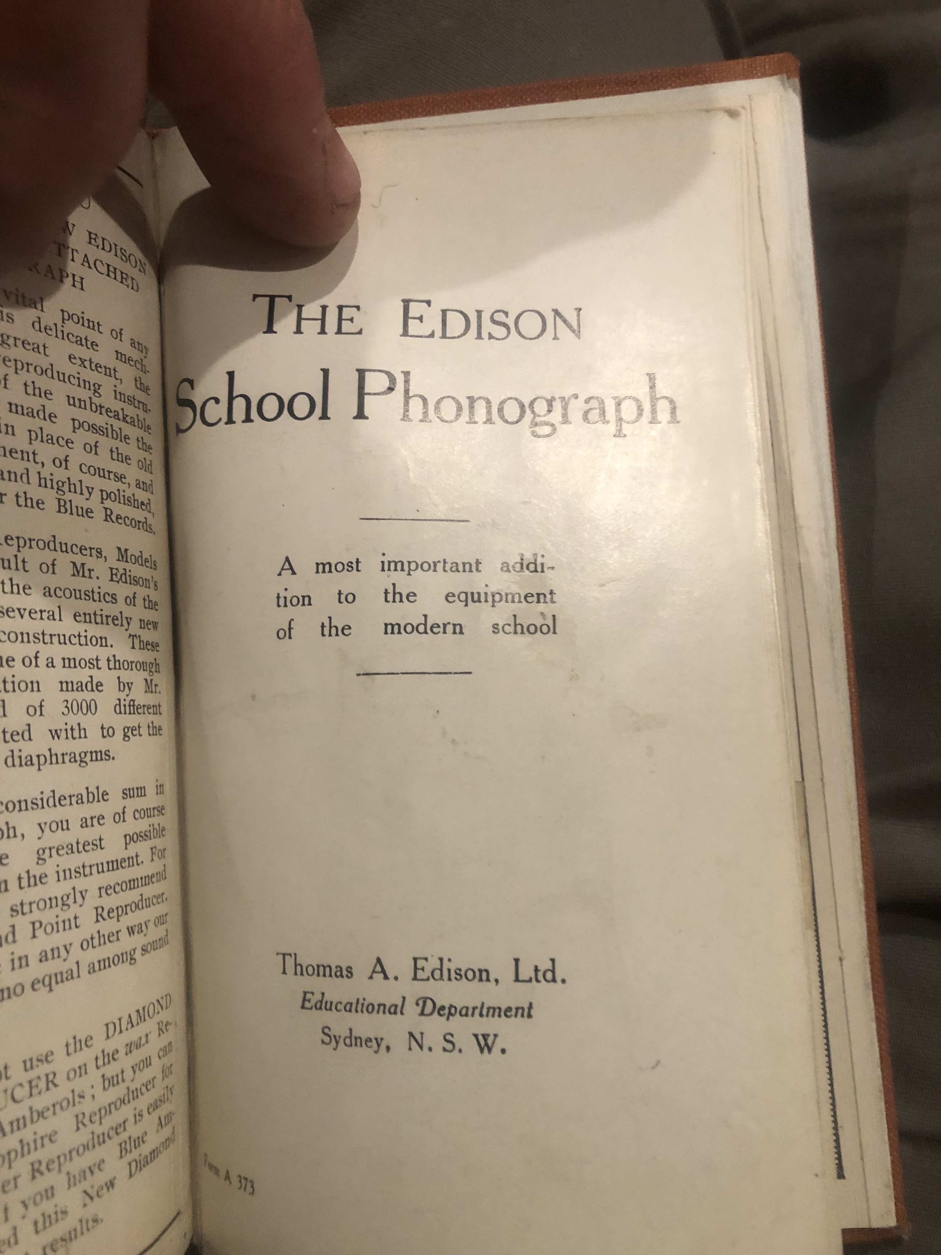 I have an original flyer / brochure for the school opera. This brochure and other original Edison catalogues were bound into a small book in the late 80,s. A later catalogue makes reference to the colour horns that were available here in Australia at that time. I bought my school off a collector a number of years back. I first saw it a long time ago. Asked if you ever want to sell it to please keep me in mind. A gentle reminder every now and then. About 14 years later my time had arrived. Shows collecting is also a game of patience.