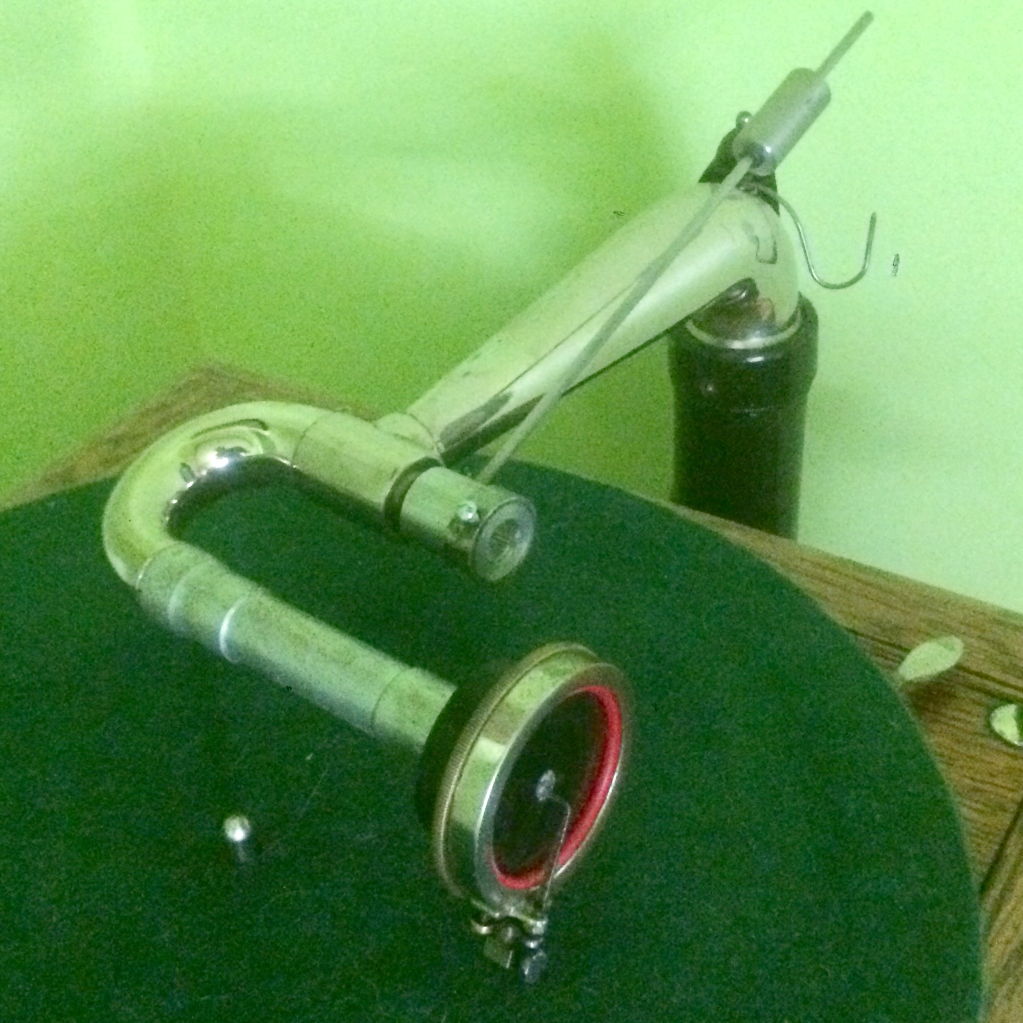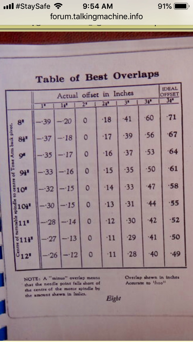 Did you have to cut out the tonearm base tab that prevents it to go further to the left than the spindle? I've encountered this problem when adding pipe length to improve tracking. That's why I use a shorter pipe, but with an added angle. Will add photos later. My tonearm cannot pass the spindle to the left. Mine is the French HMV equivalent to the VV-VI.