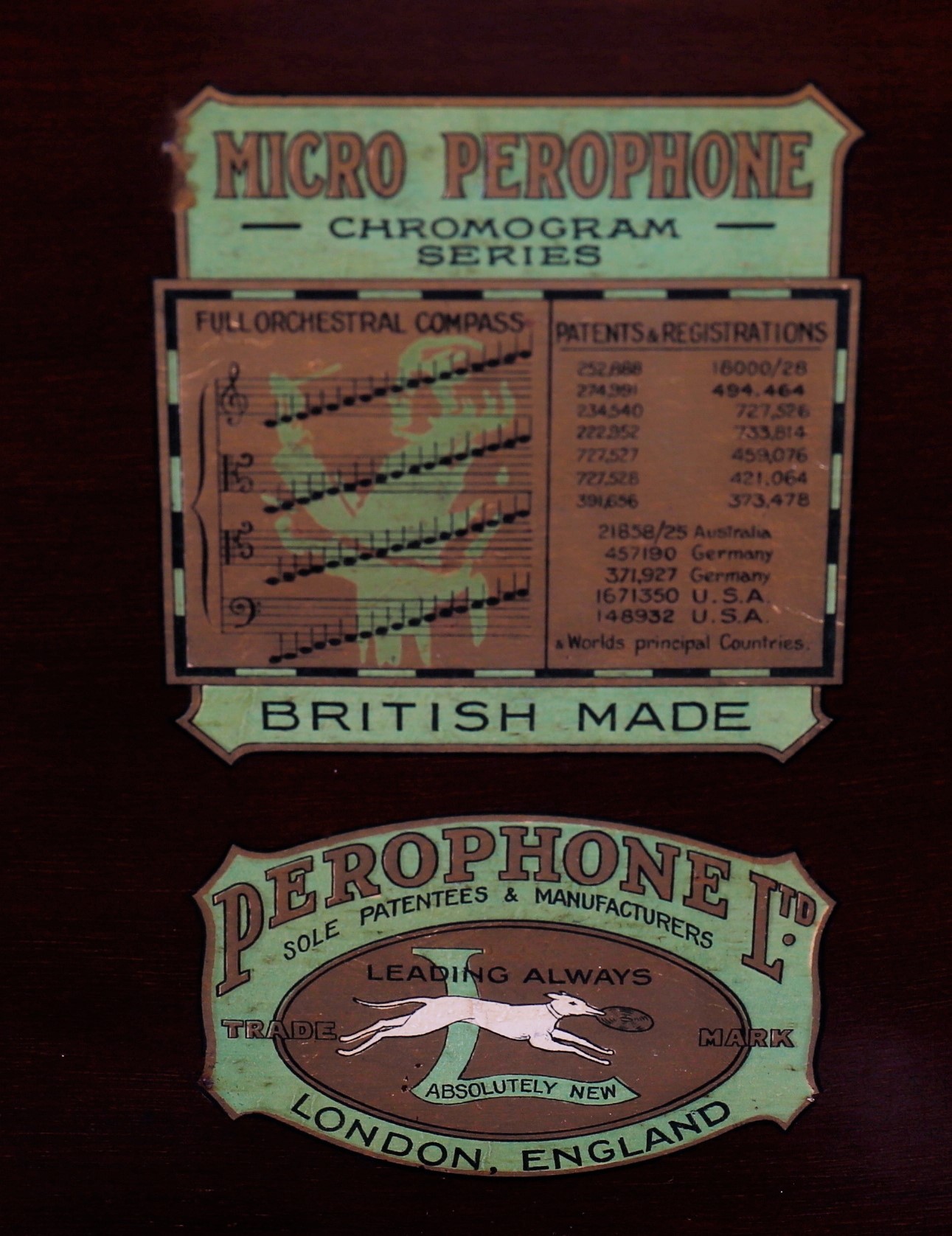 This simple counterweight was a standard fitment on most Micro-Perophone Chromogram models.