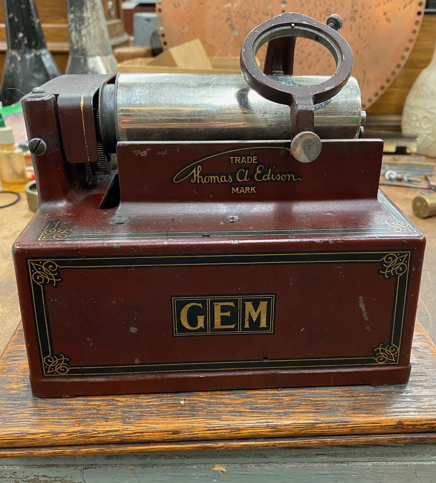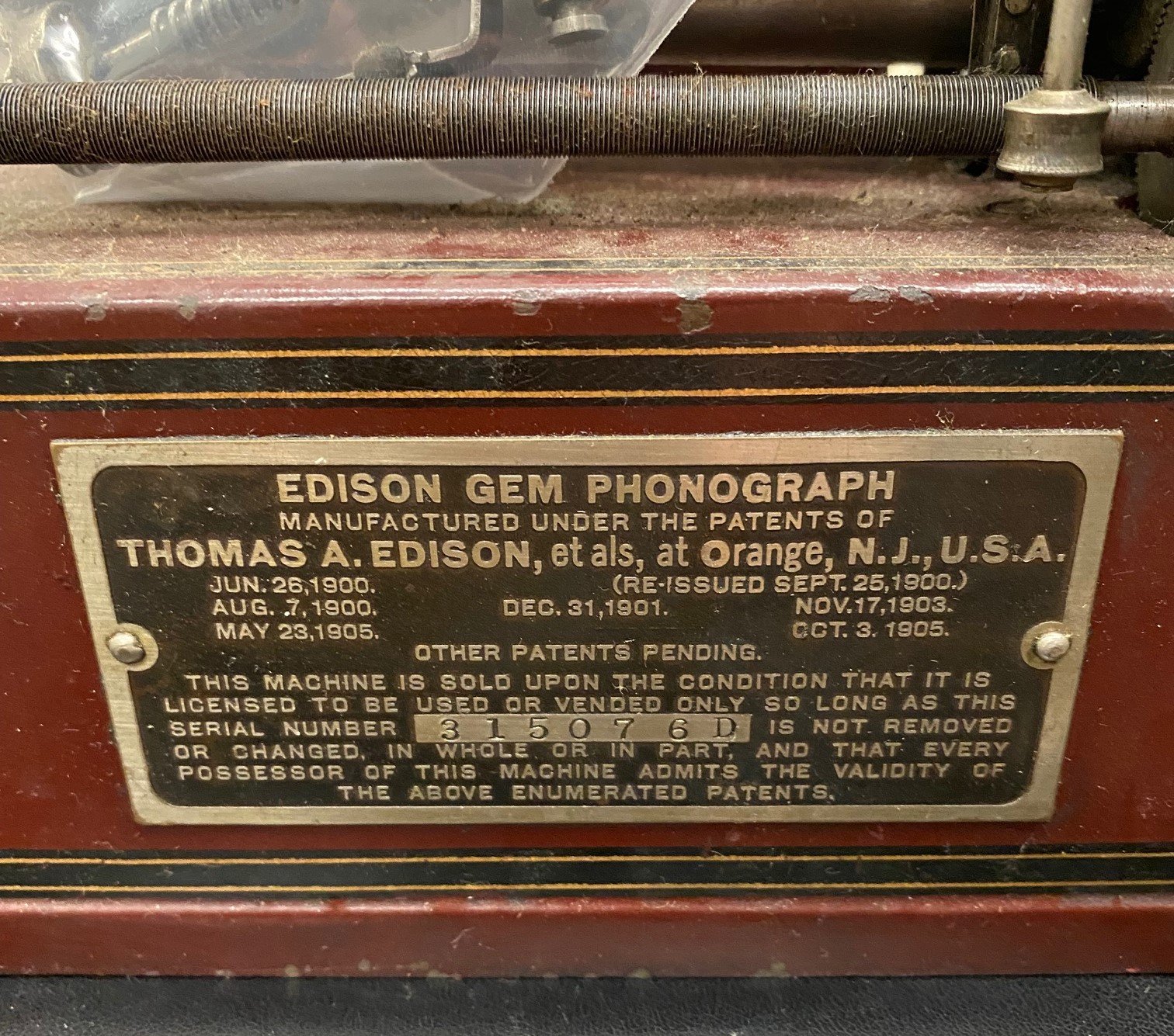 It almost looks like Edison took a black Gem C casting, masked off areas and painted them the maroon gem color. Note that there is black between and around all the stenciling, GEM and the Edison Signature.
