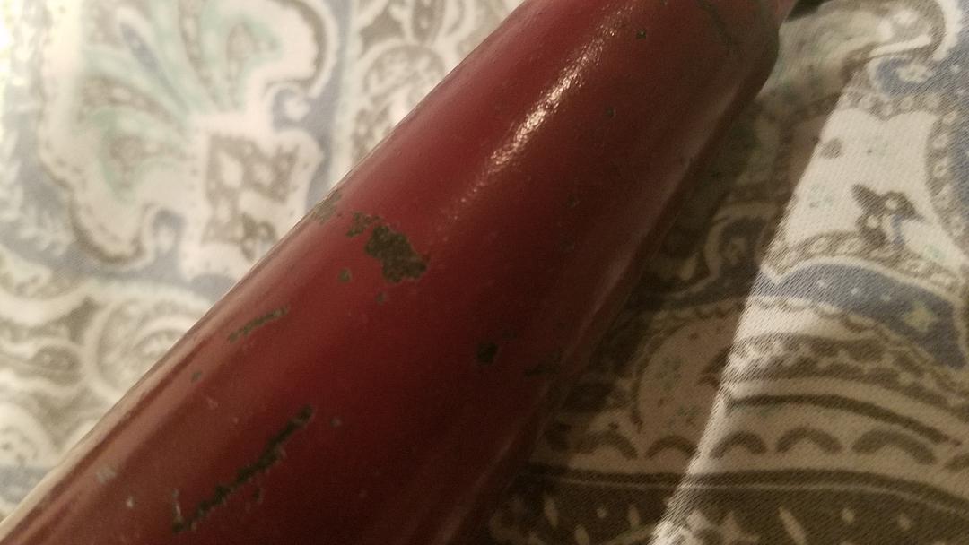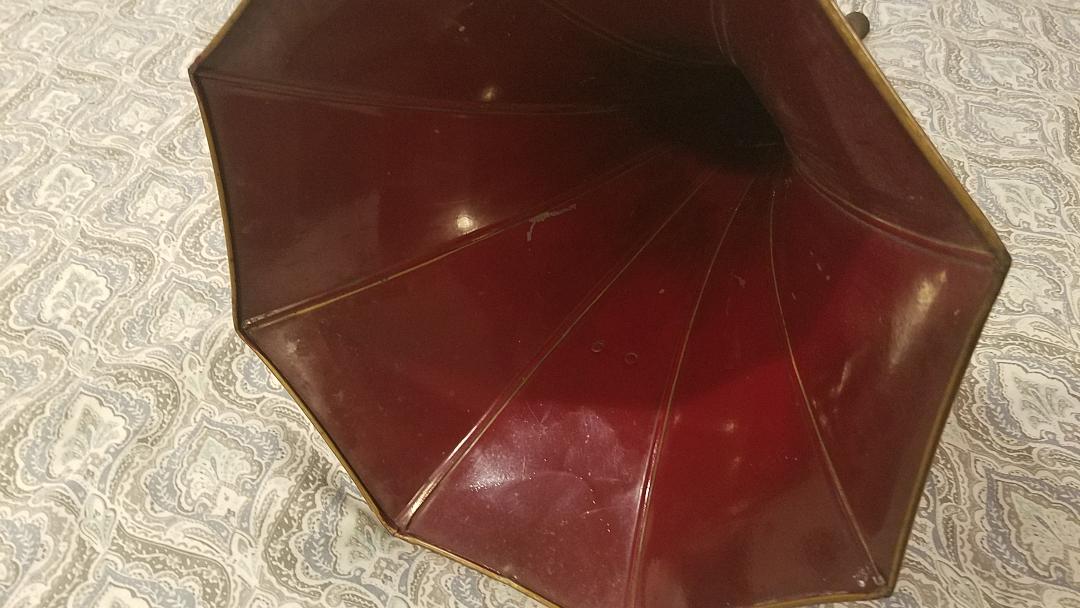 Below are pictures of my one-piece red Fireside horn-- As I understand it, these were black horns that were repainted at the factory. Mine is in super nice condition-- but there are two small scratches on the cone that show black underneath. Apparently the black paint provided a better base for the application of the red paint, than just a polished metal as used on the later two-piece horns. As a result, the few (very few) one piece horns I've seen all seem to have above average red paint remaining. This is the 2nd one I've had. My first also had excellent paint.