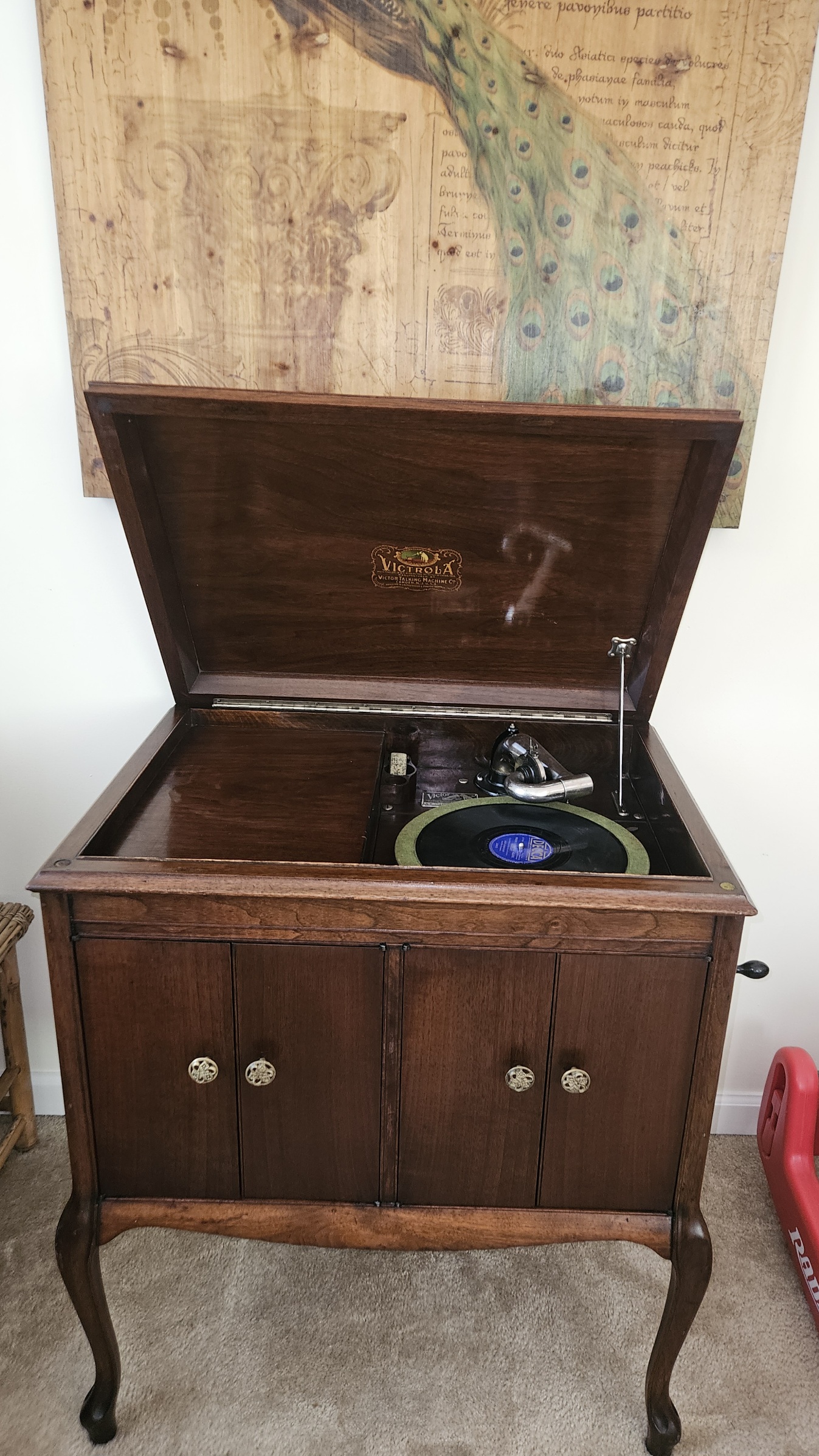 I recently acquired a 1913 Victrola vv-210 from our neighbor. It was her grandmothers and she was afraid no one in her family would appreciate it and take care of it. After doing a lot of reading here and watching Dyslexic Genius and other videos, we are now very happy with our new to us record player. Only things I have done to it is a deep cleaning on the cabinet, cleaned, oiled and greased the mechanism and had to replace one of the governor spring. We only have three records that came with it, so now we're on the lookout for more