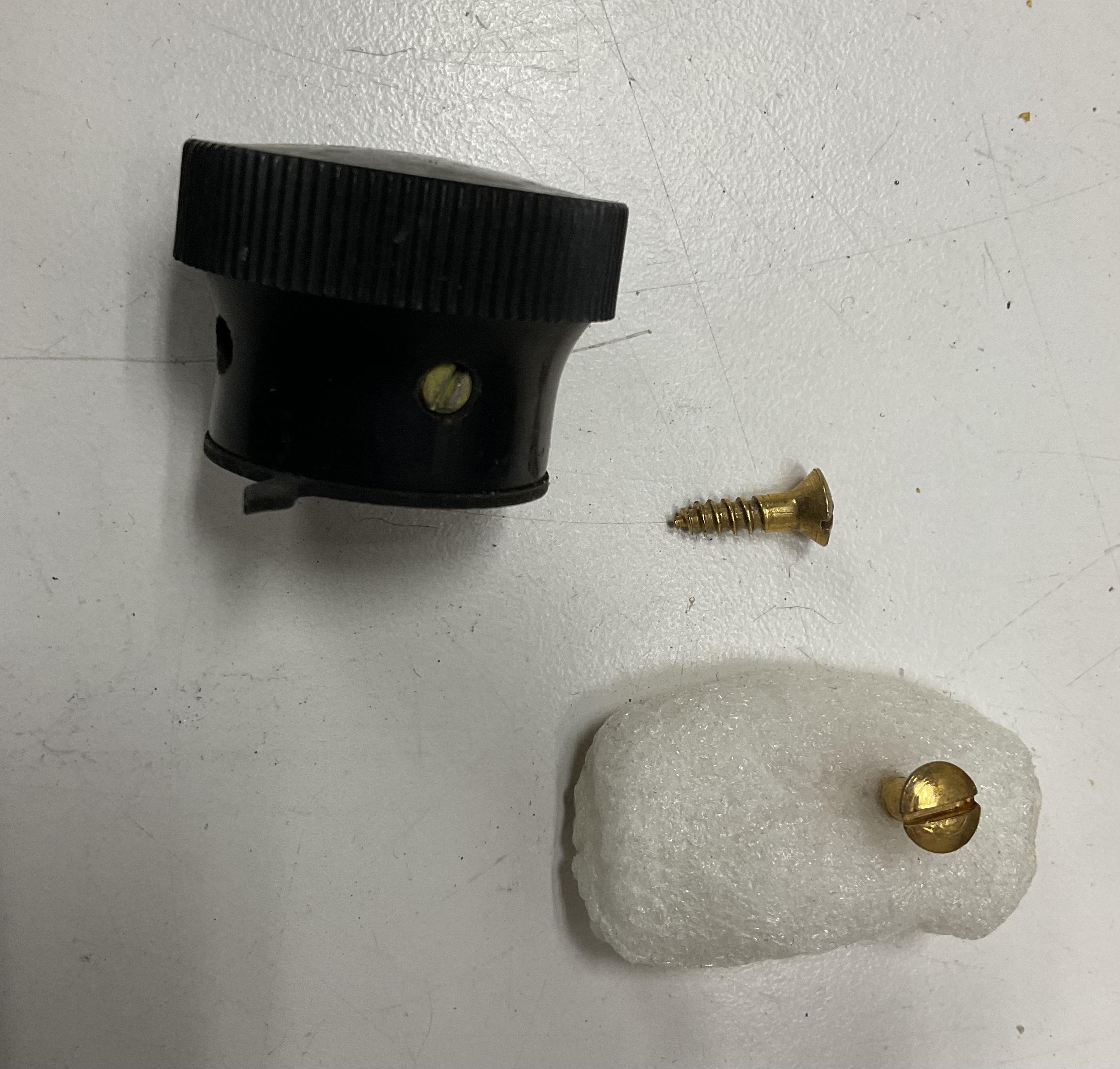 I also need a pair of the gold wood screws that attach the escutcheon to the front of the radio panel.