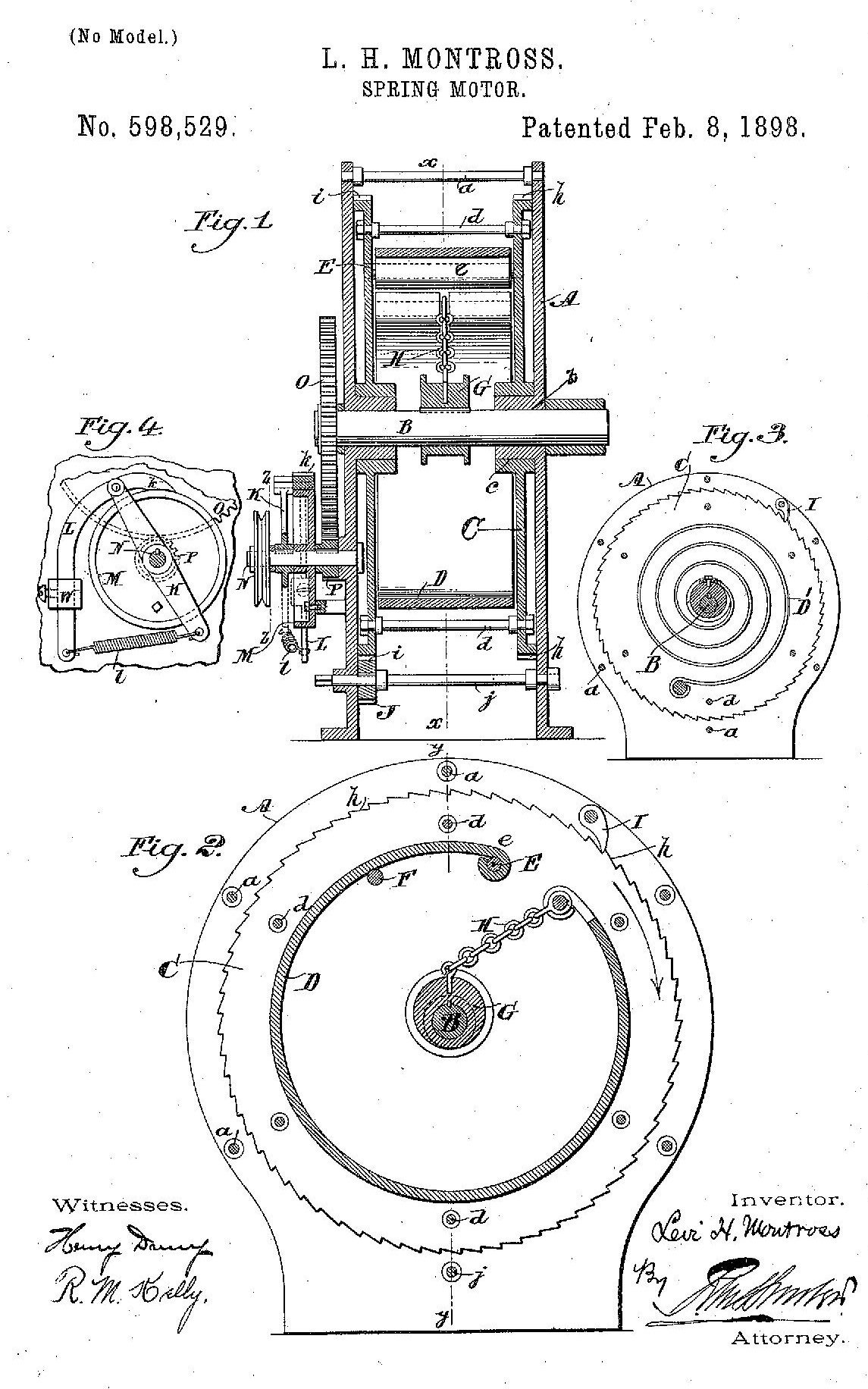 October 8, 1896: Levi Montross filed for a U.S. patent for a “Spring Motor.” This device would become the first spring motor to power the Berliner Gramophone. These lever-wound machines were available from December 1896 until August 1897.