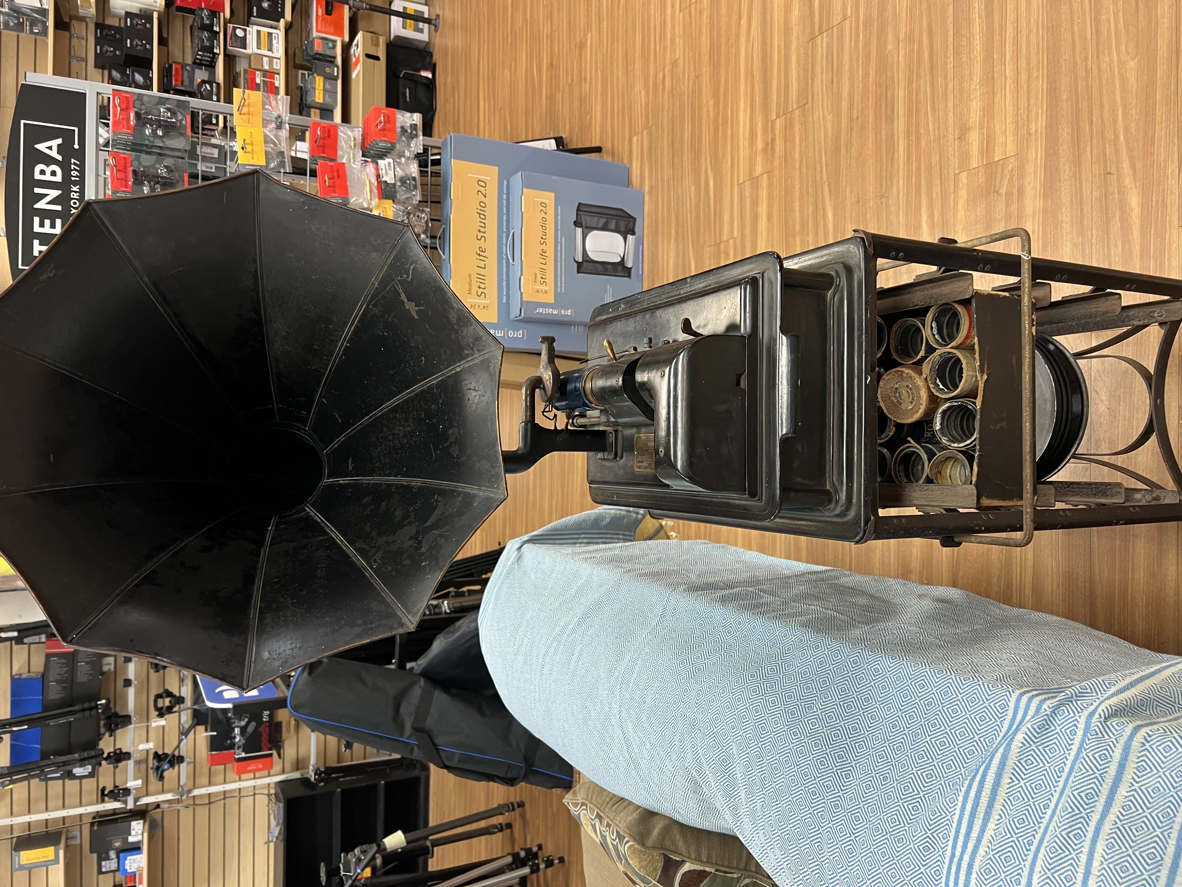 It is in a camera store because I mainly deal in vintage cameras. Got this in an estate that had some cool cameras as well. As far as the price goes, I am taking offers. This isnt my wheel house. I dont expect top dollar but I am looking for a fair price. Will talk on the phone: store number is 850-476-2697. I am Rob.